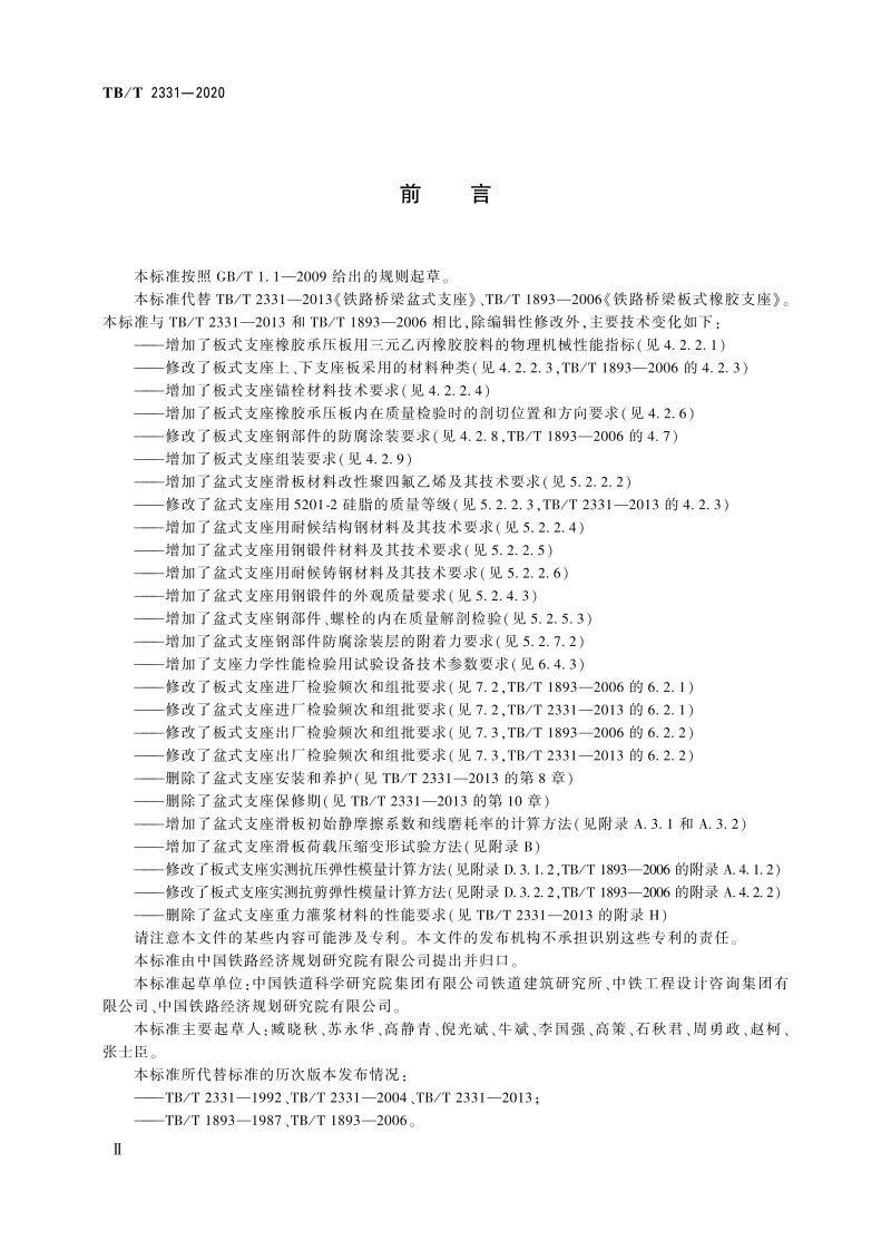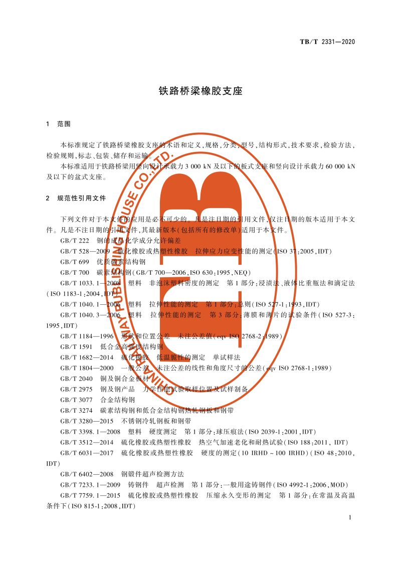 15113.6148铁路桥梁橡胶支座 TB/T 2331—2020