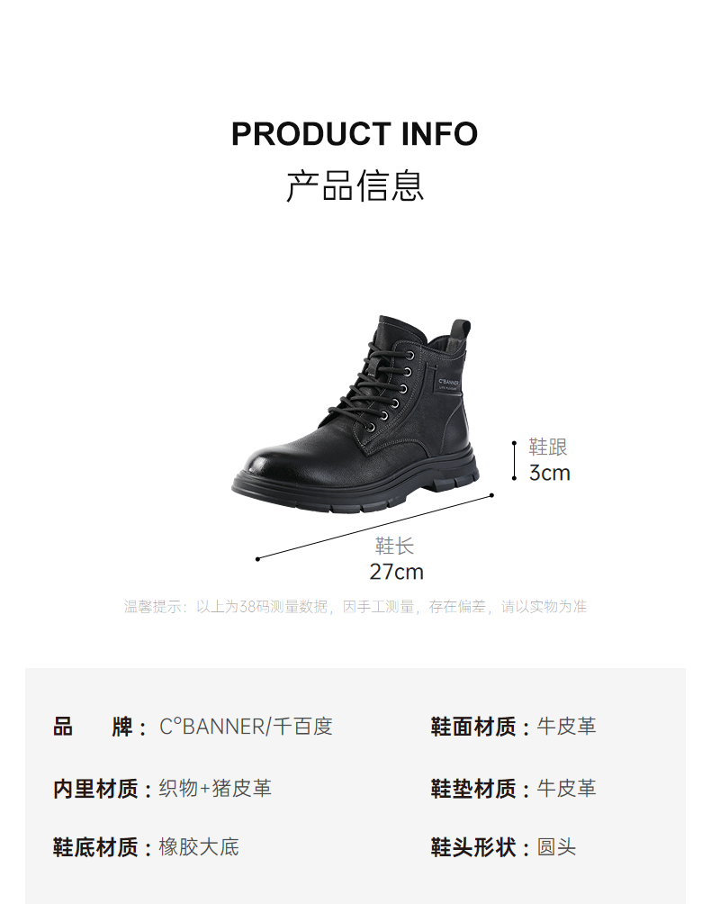 千百度复古新中式厚底乐福鞋女款秋季深口黑色小皮鞋增高A24453906