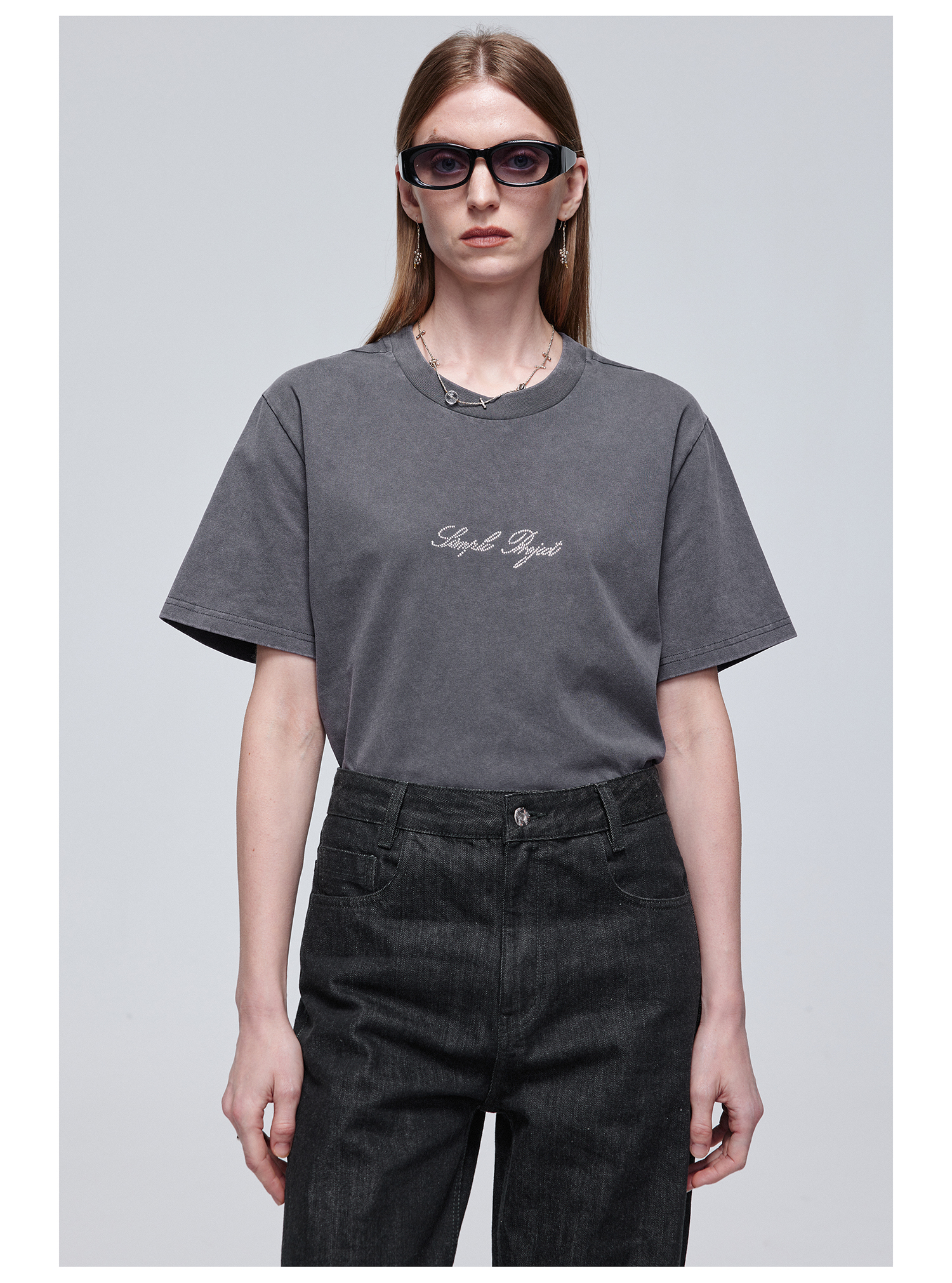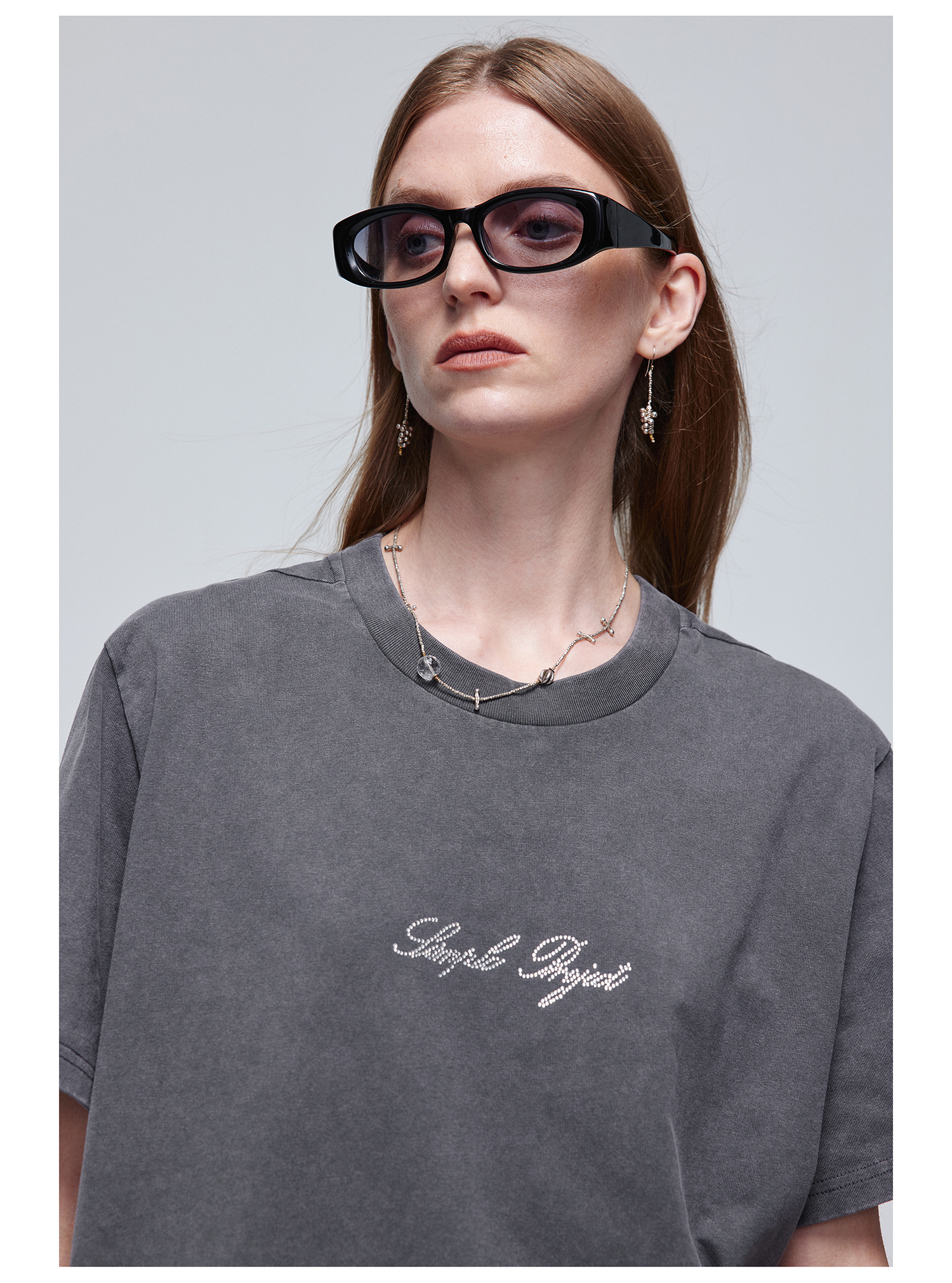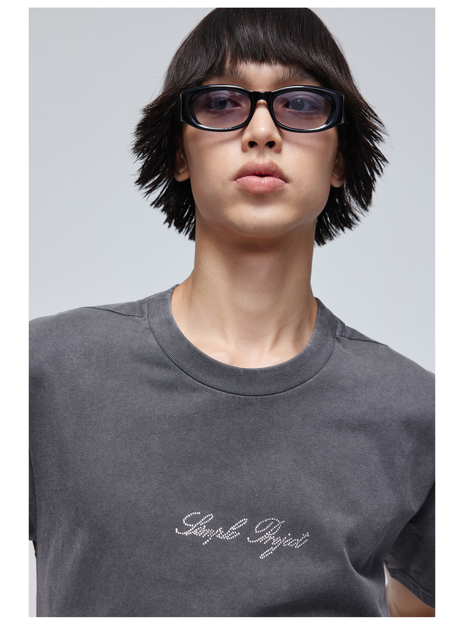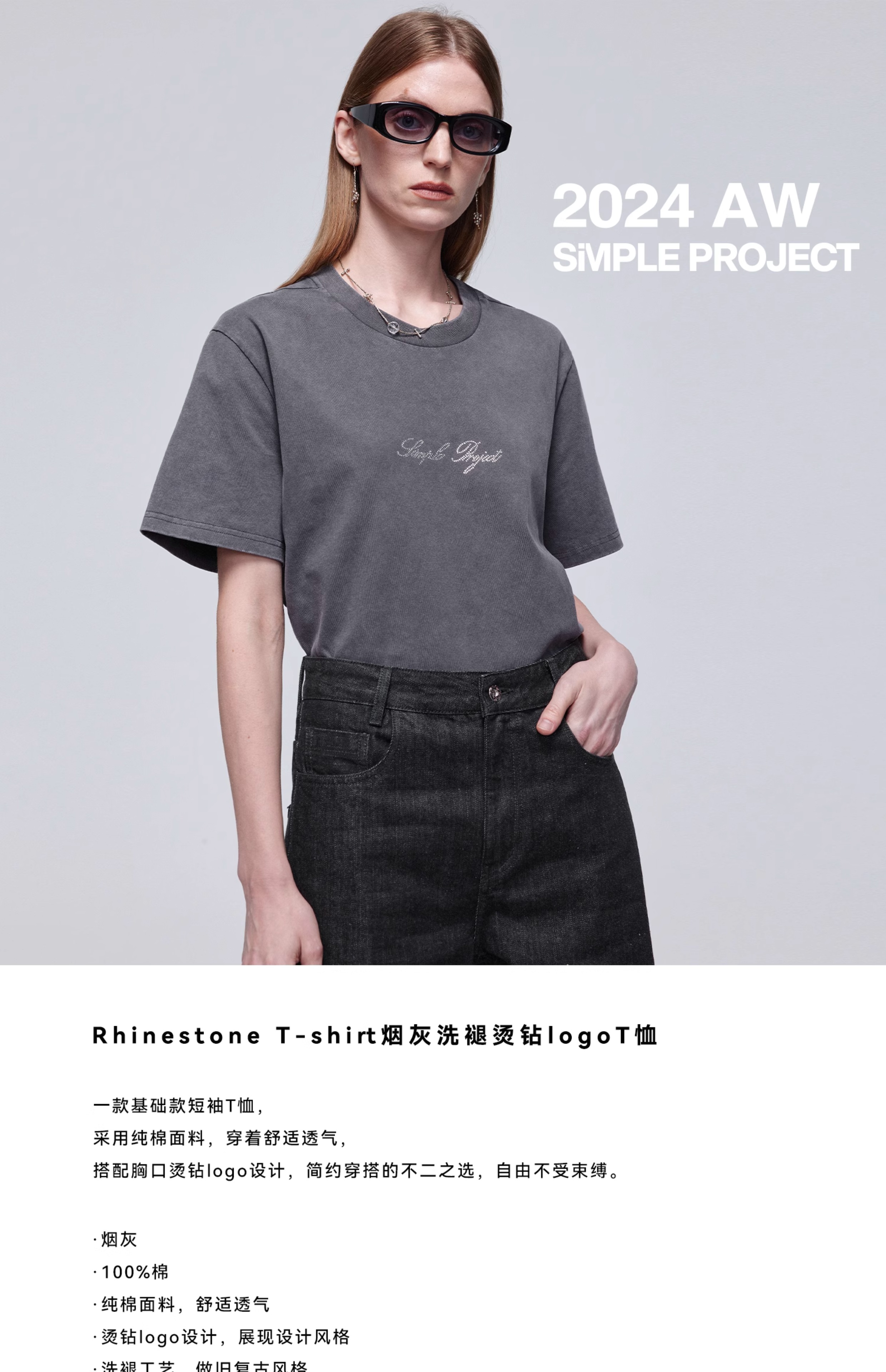 Simple Project/Y24112/Rhinestone T-shirt烟灰洗褪烫钻logoT恤