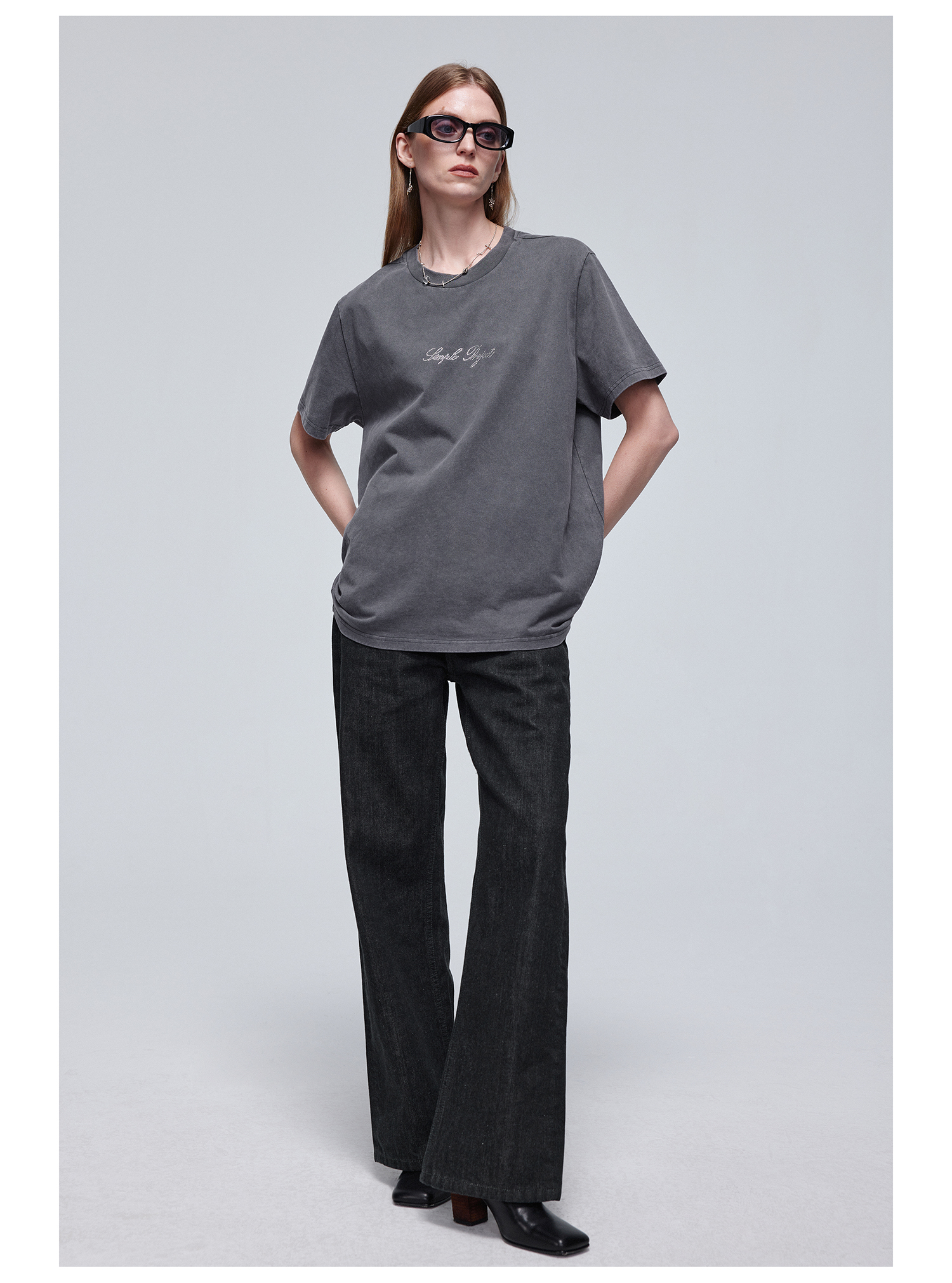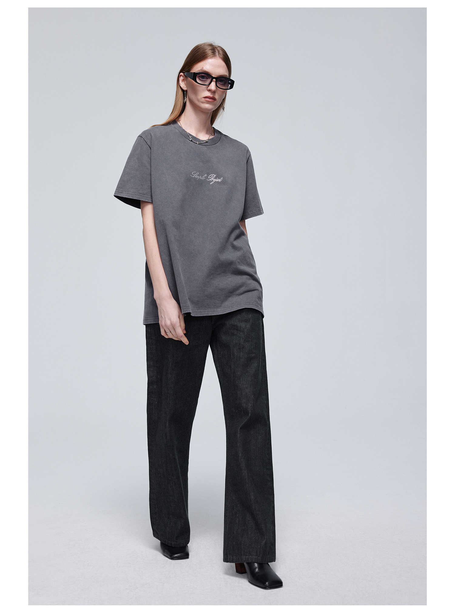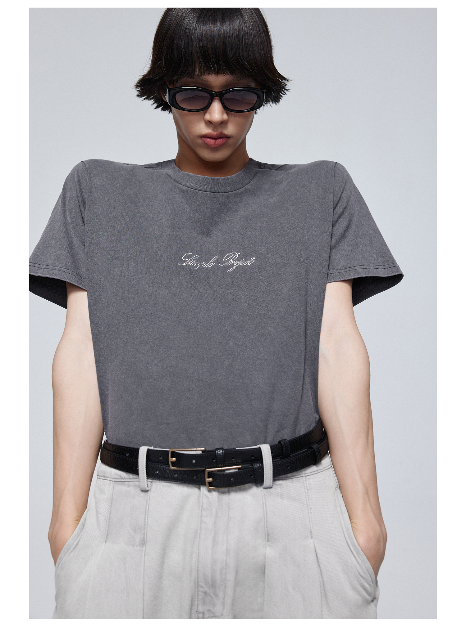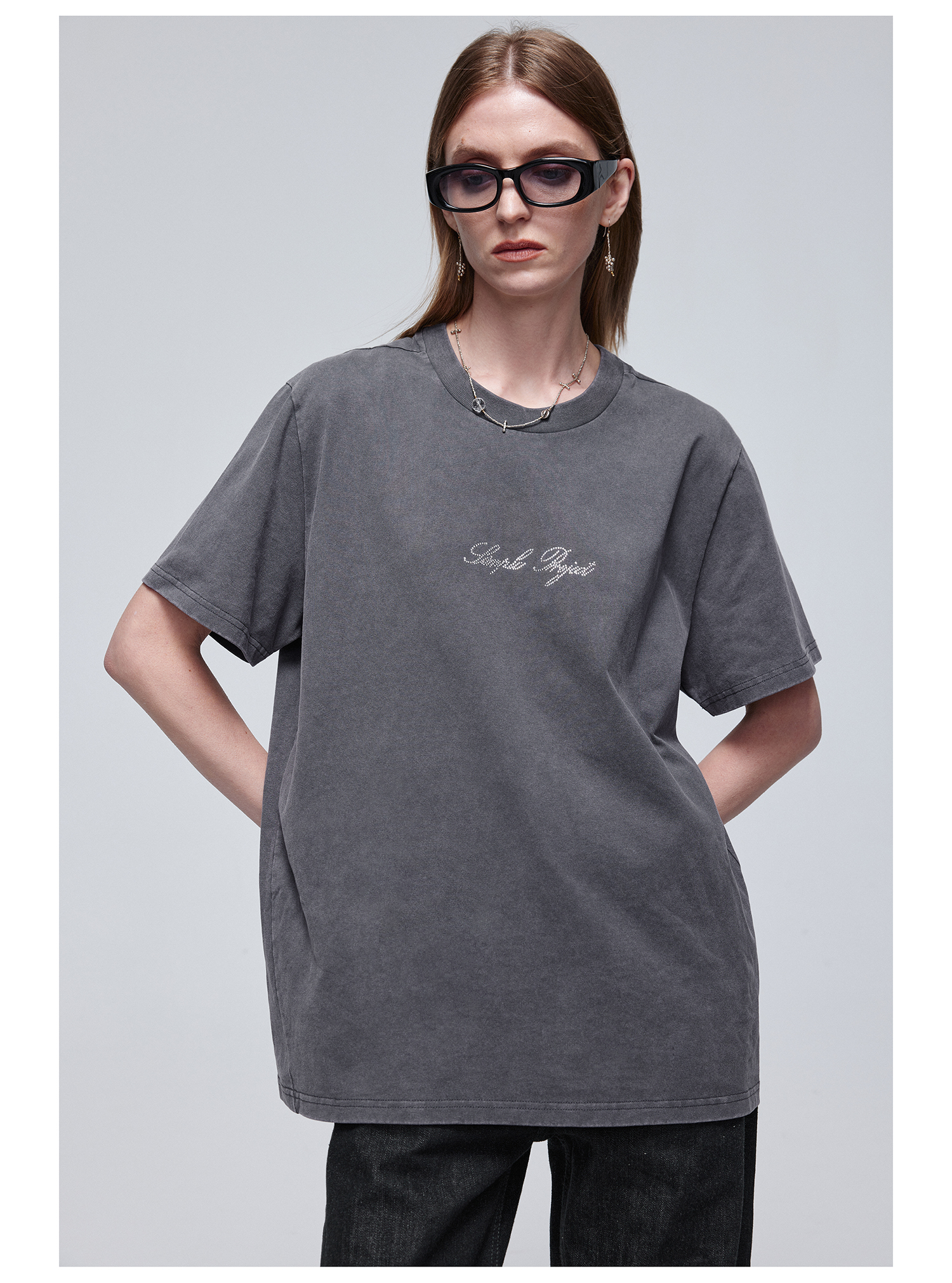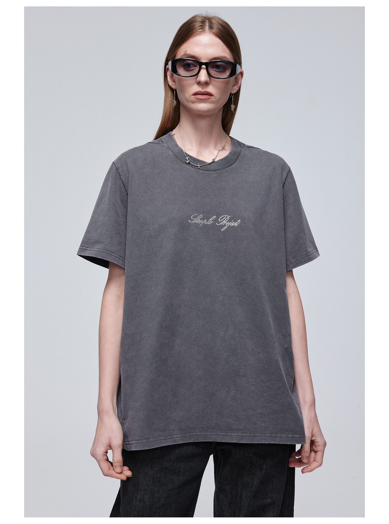 Simple Project/Y24112/Rhinestone T-shirt烟灰洗褪烫钻logoT恤