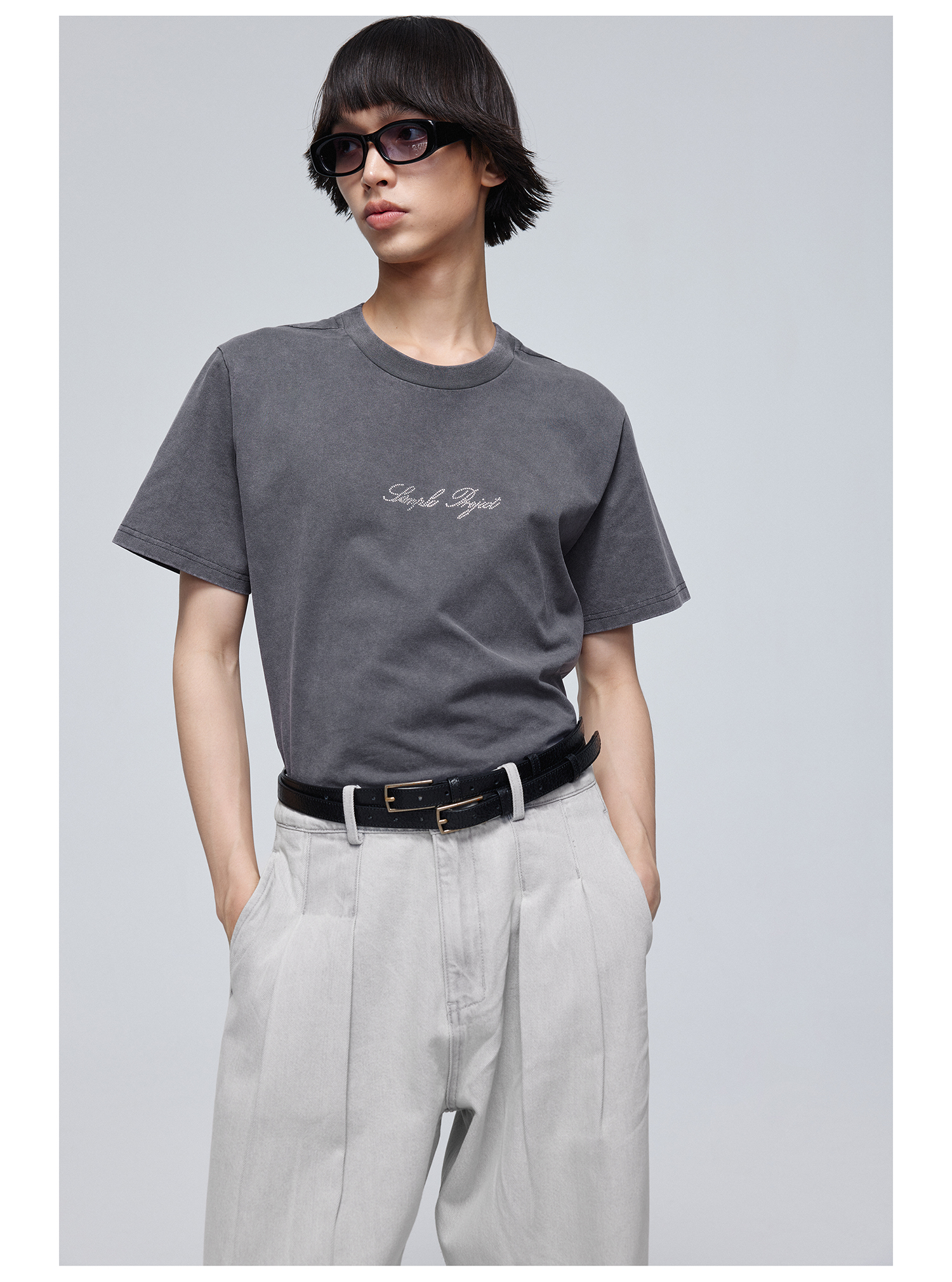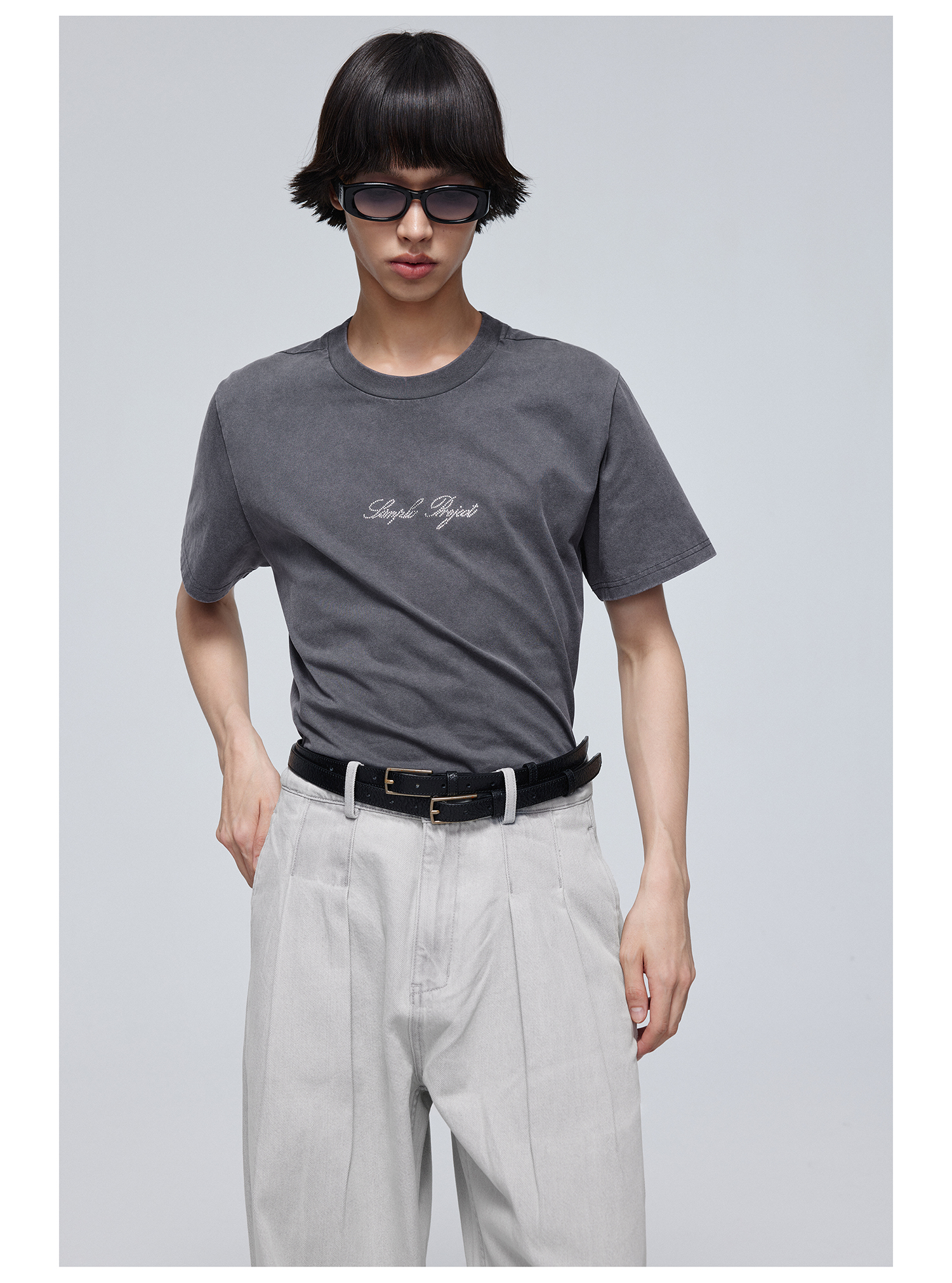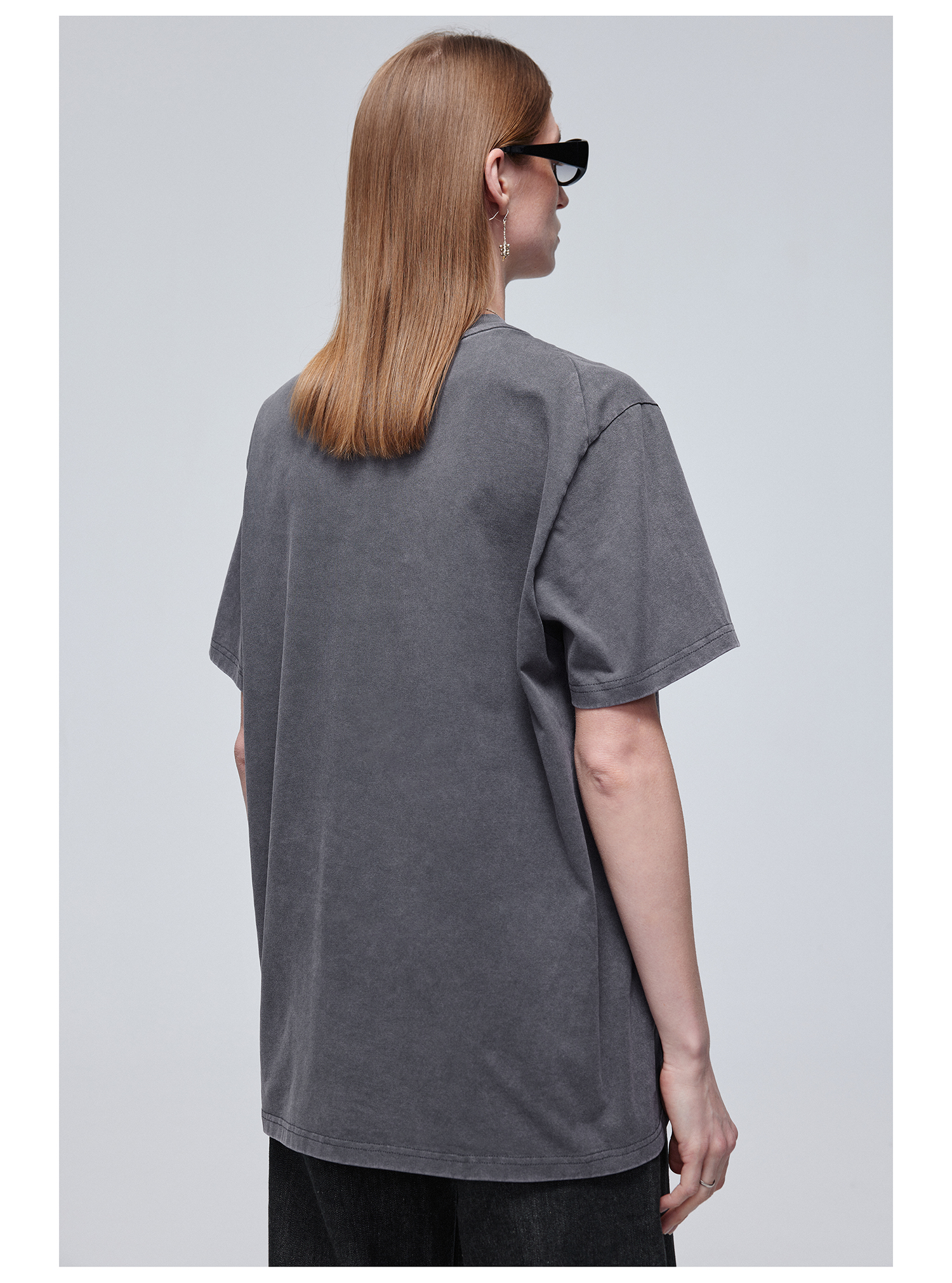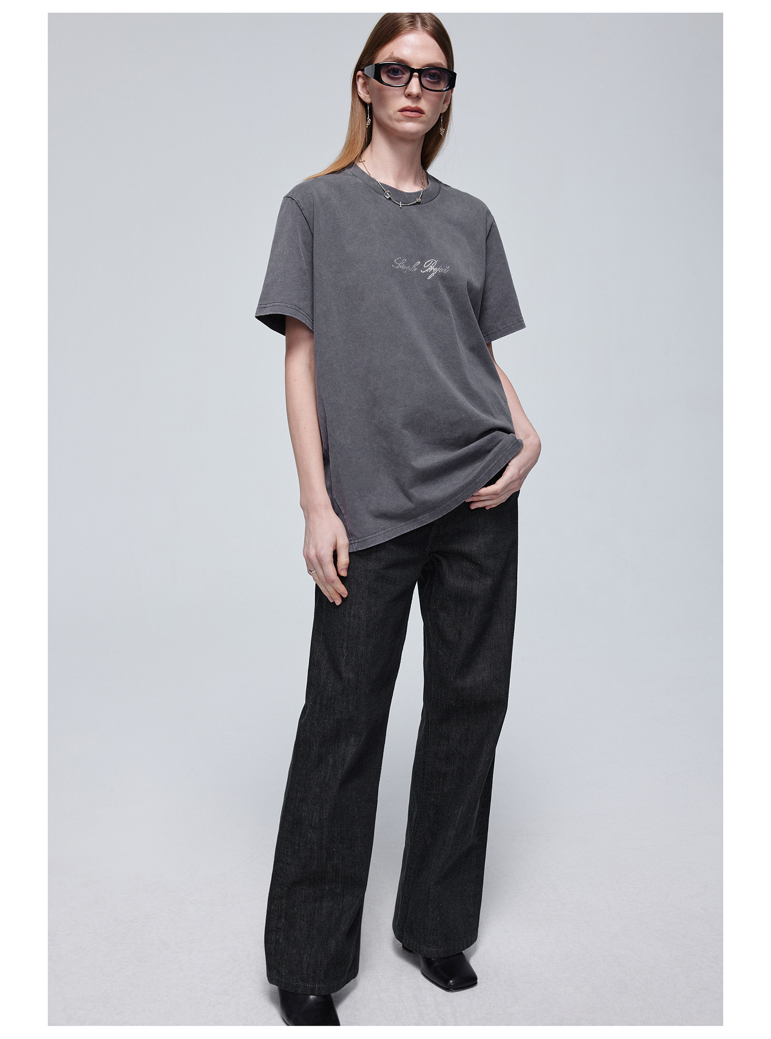 Simple Project/Y24112/Rhinestone T-shirt烟灰洗褪烫钻logoT恤
