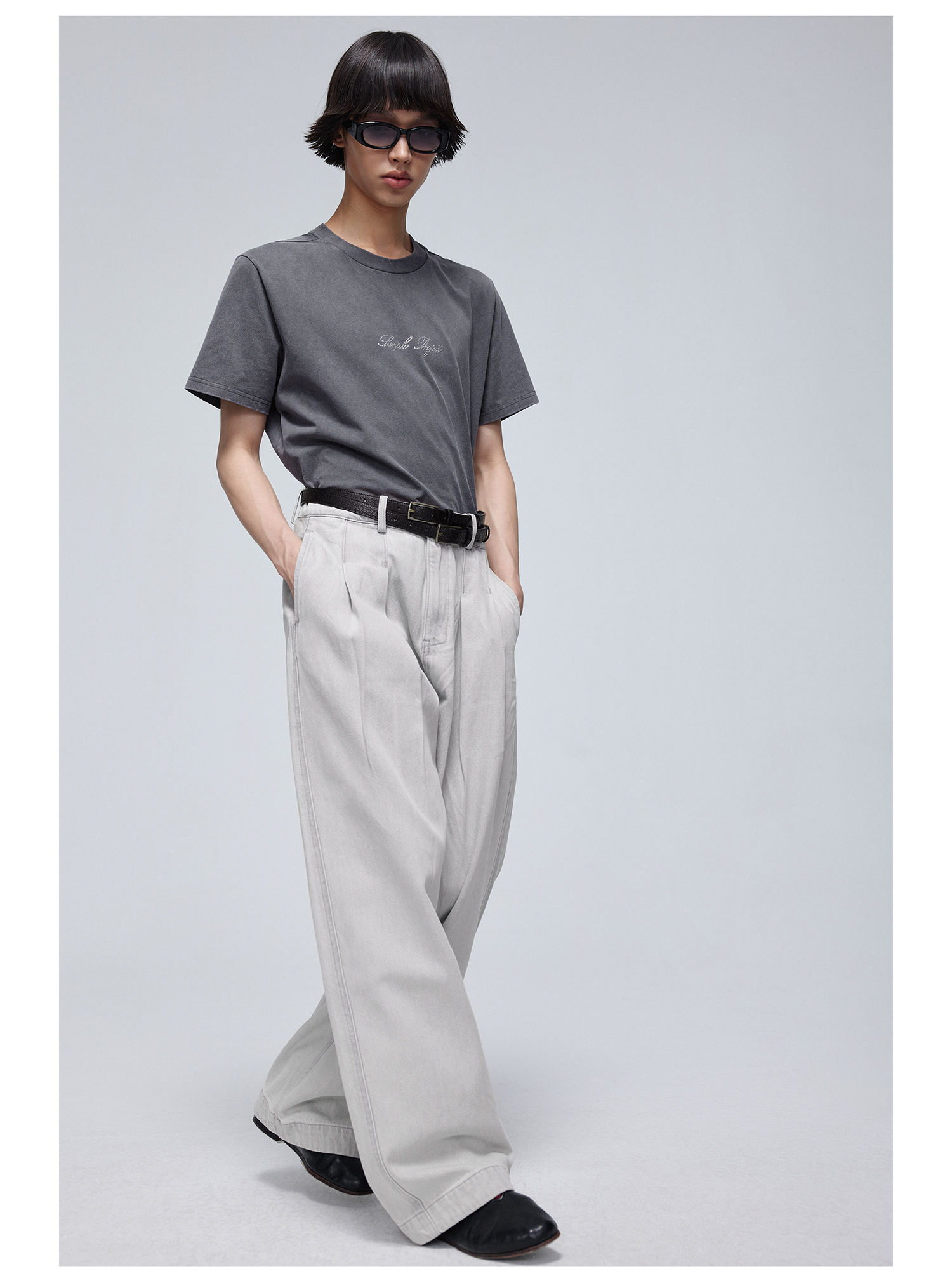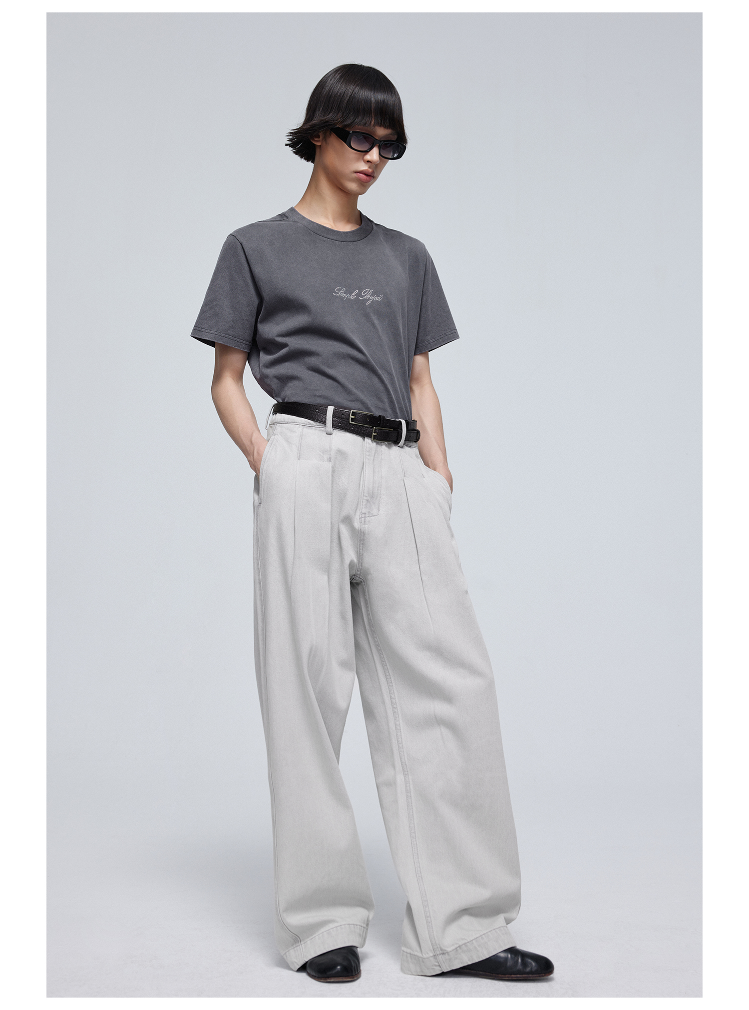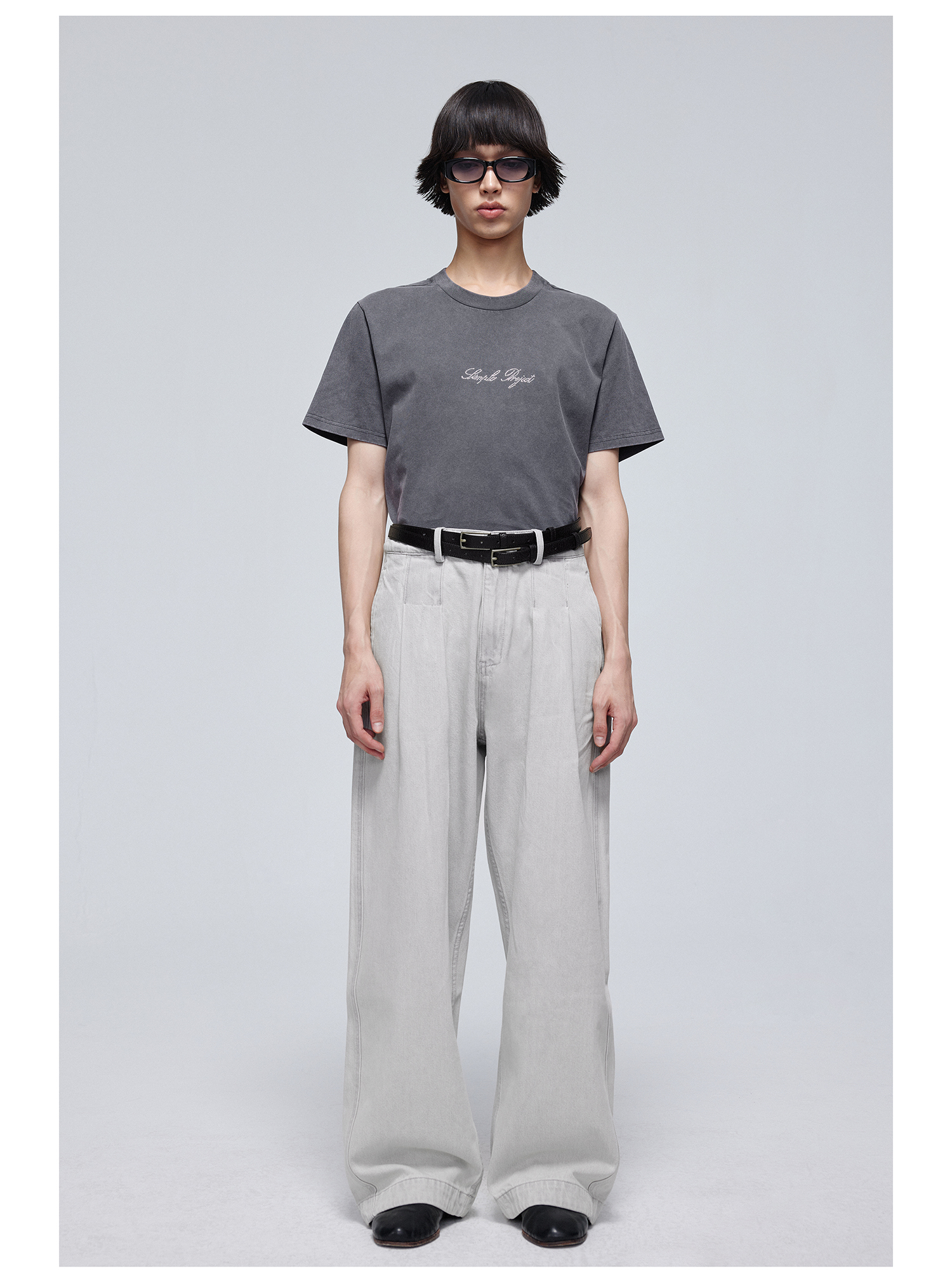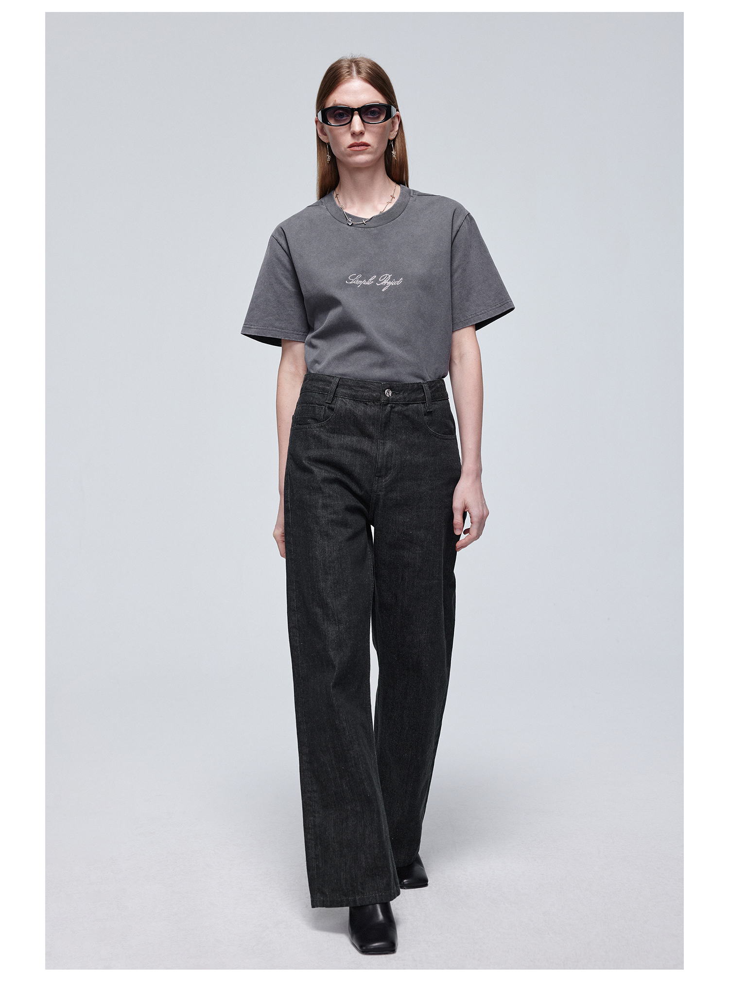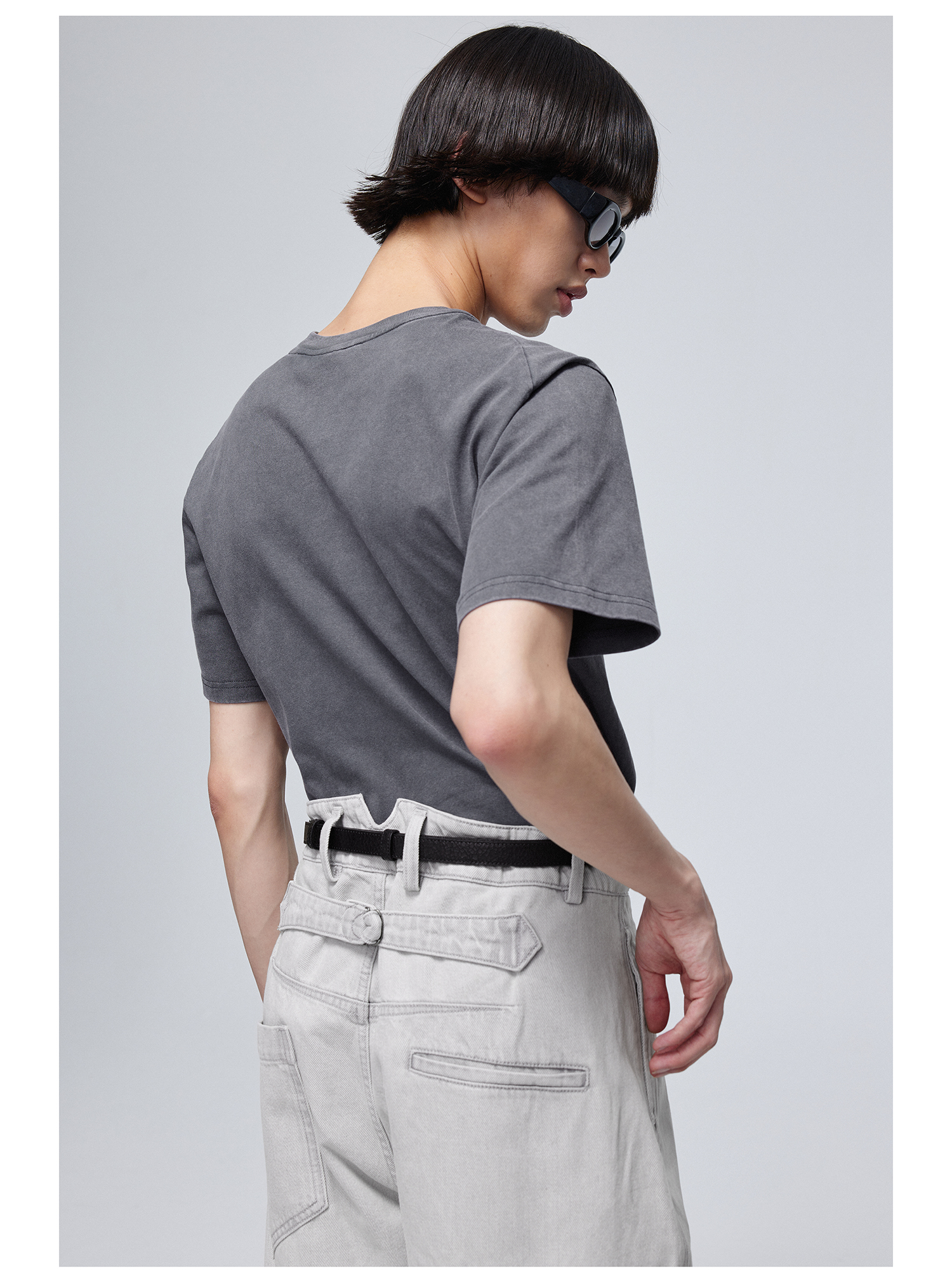 Simple Project/Y24112/Rhinestone T-shirt烟灰洗褪烫钻logoT恤
