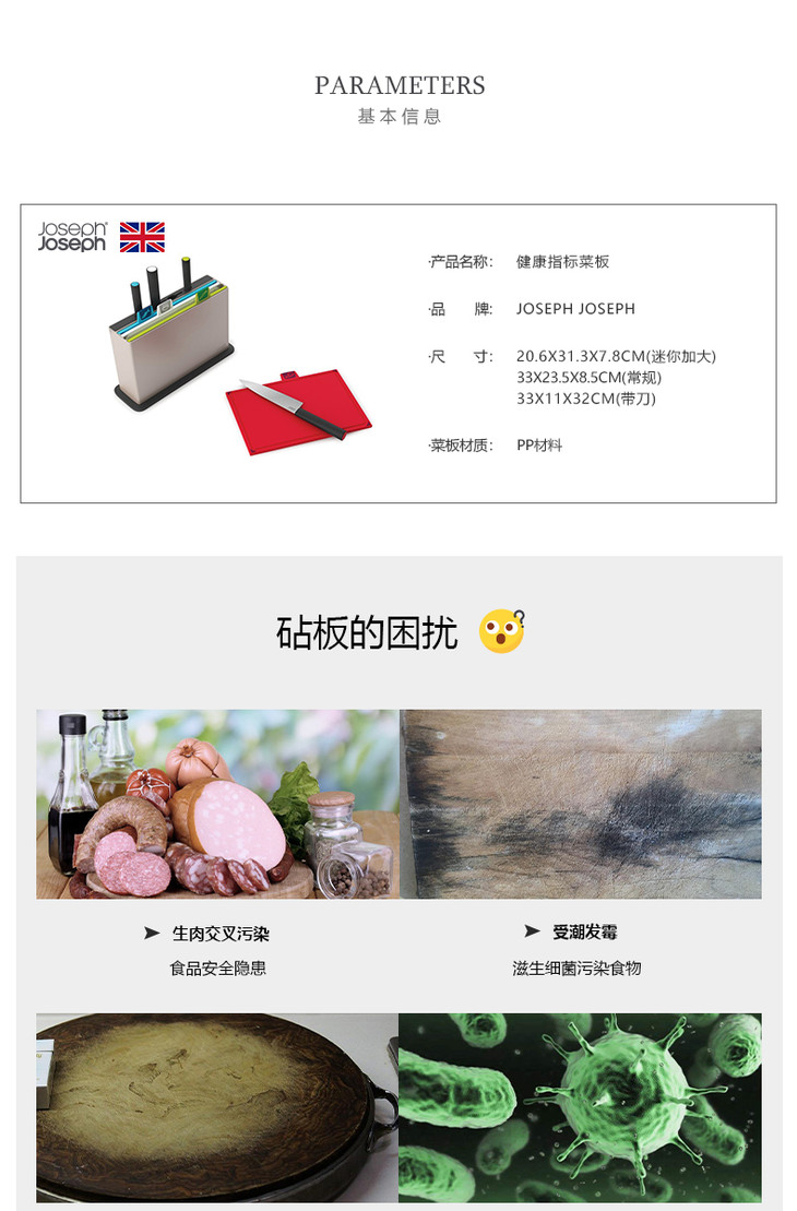 JosephJoseph健康分类菜板套装婴儿辅食砧板进口带刀砧板案板合理收纳环保耐腐蚀持久耐用【JosephJoseph】