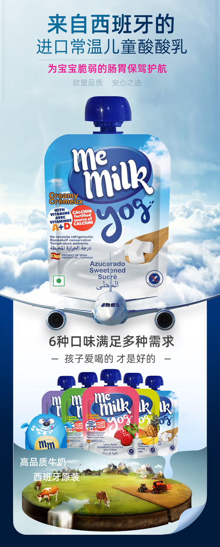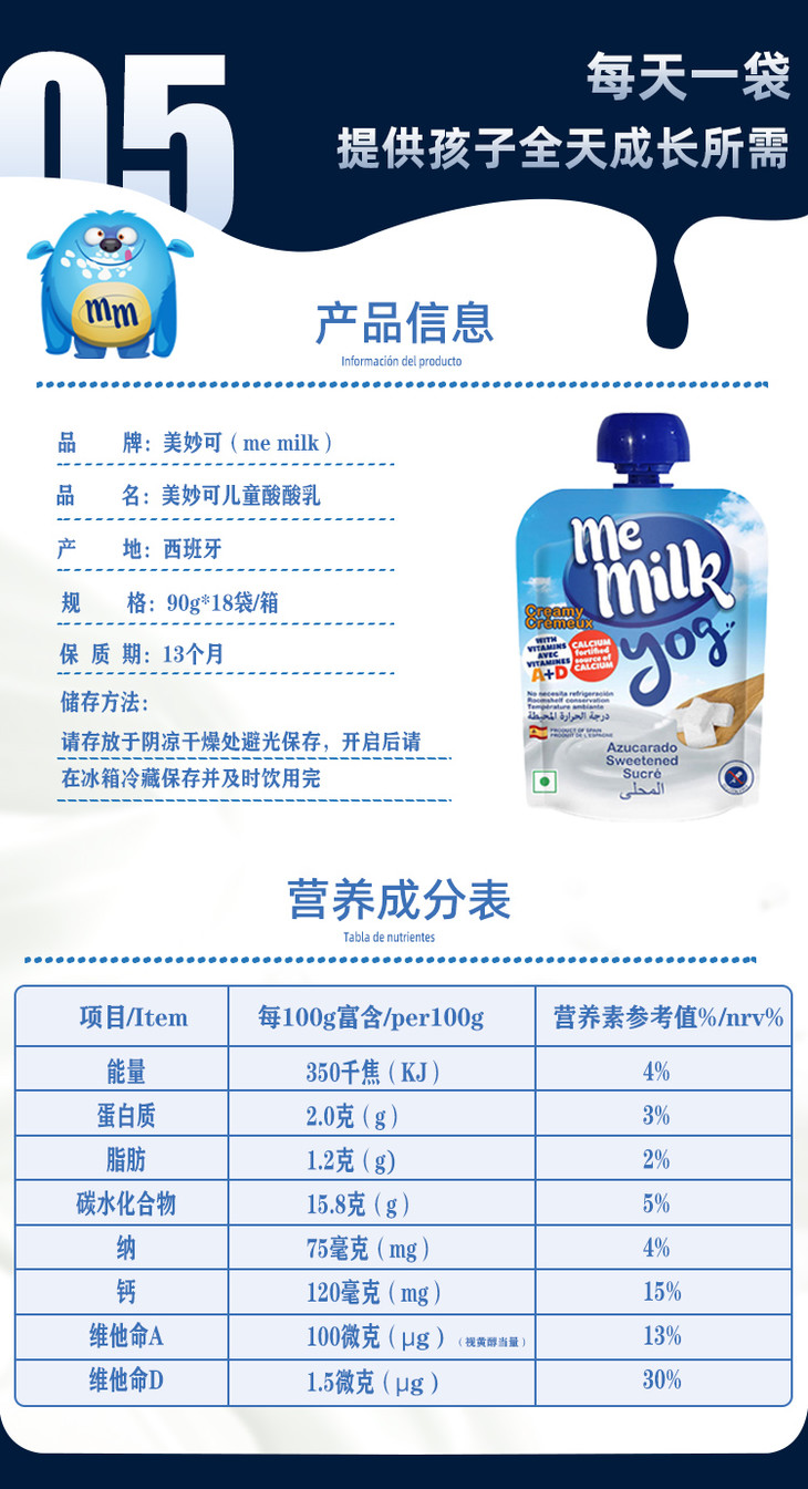MeMilk美妙可西班牙原装进口儿童酸奶辅食混合味酸酸乳90g【果汁乳品】