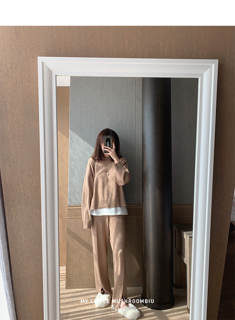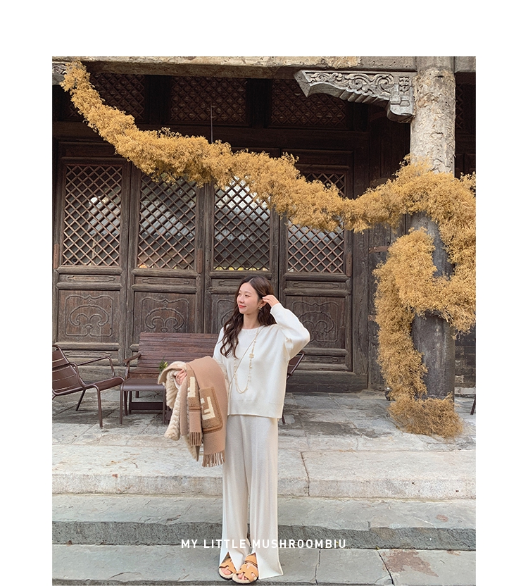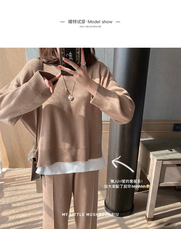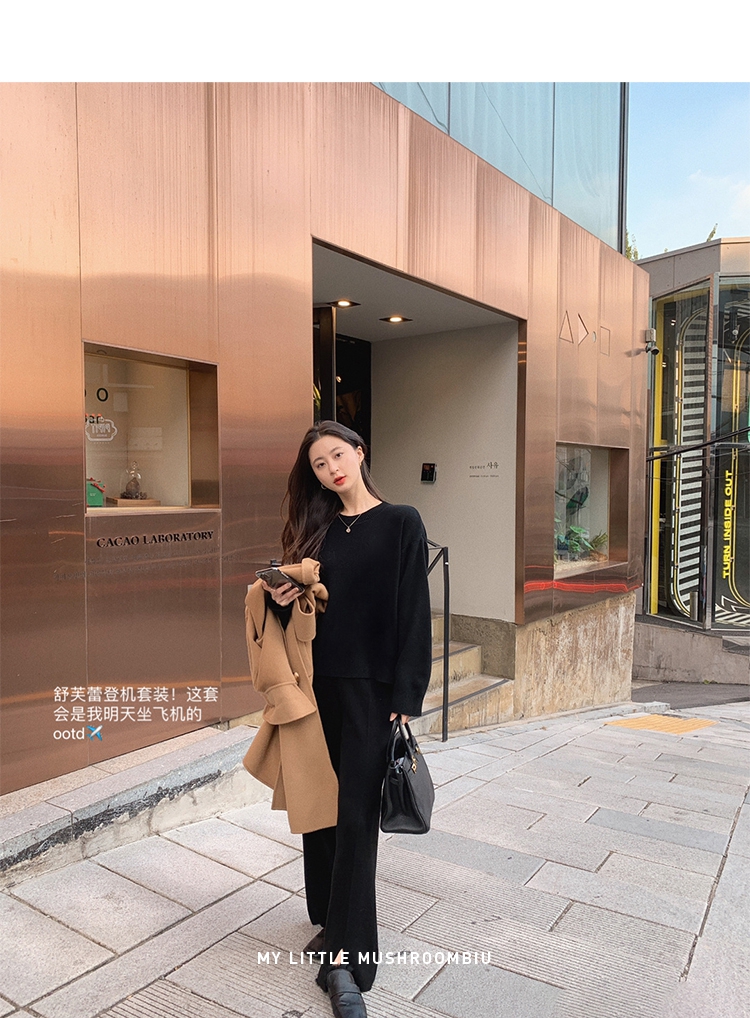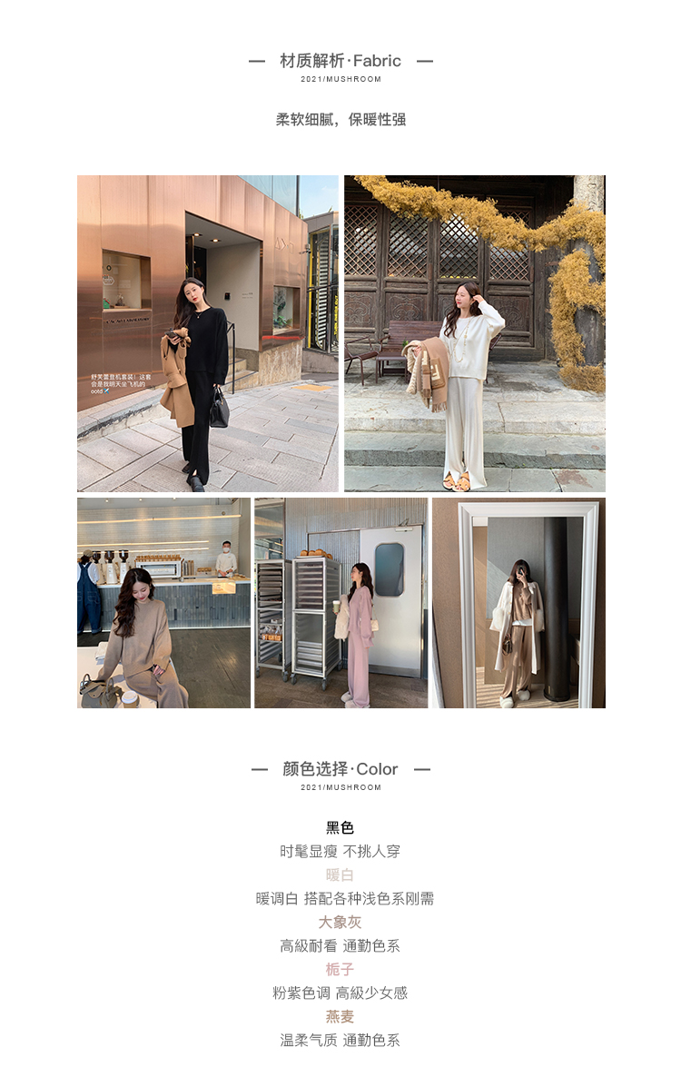 金蘑菇菇【舒芙蕾登机套装】好打理的羊毛~披个外套出门针织套装