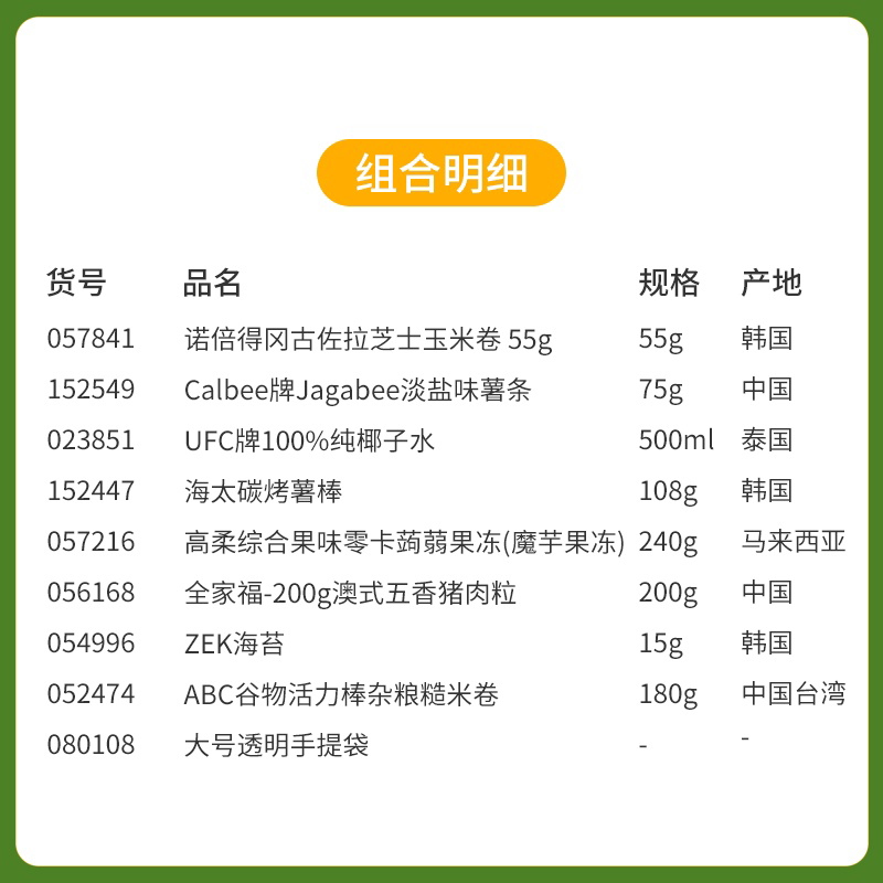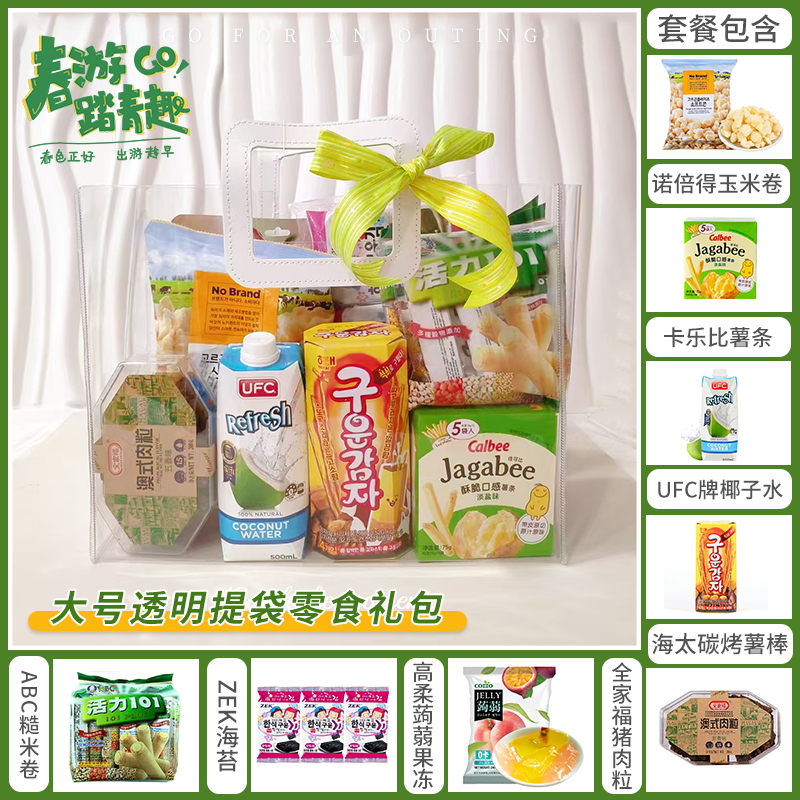 【慢生活踏青游】春暖花开踏青出游露营-大号透明手提袋零食组合A/057841*152549*023851*152447*057216*056168*054996*052474*080108