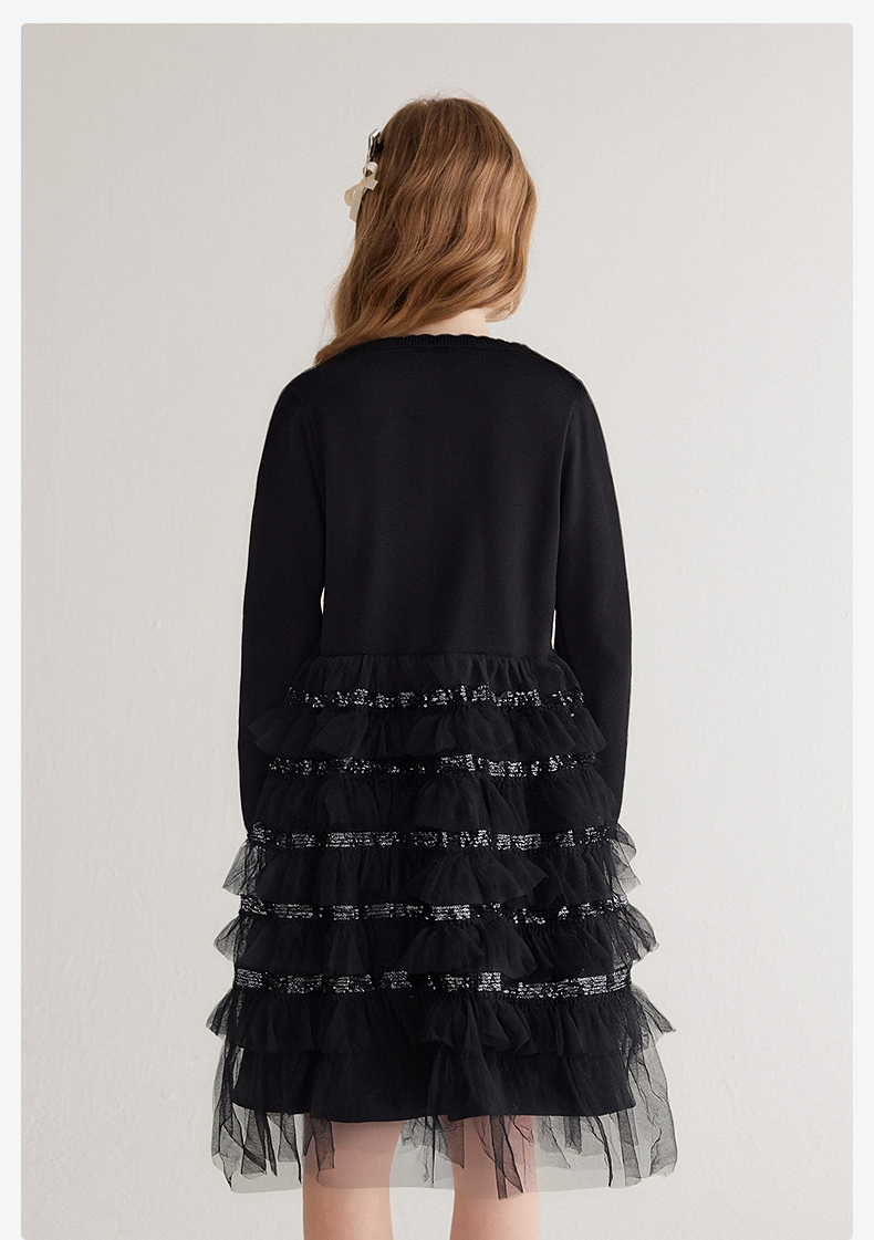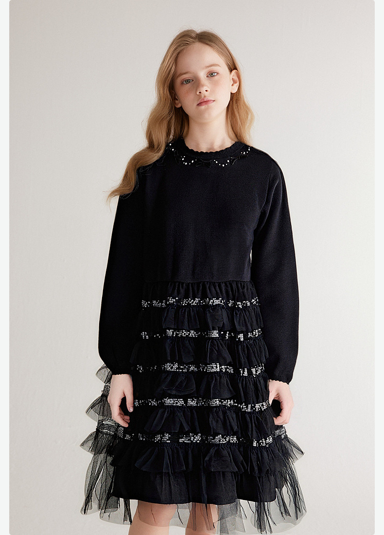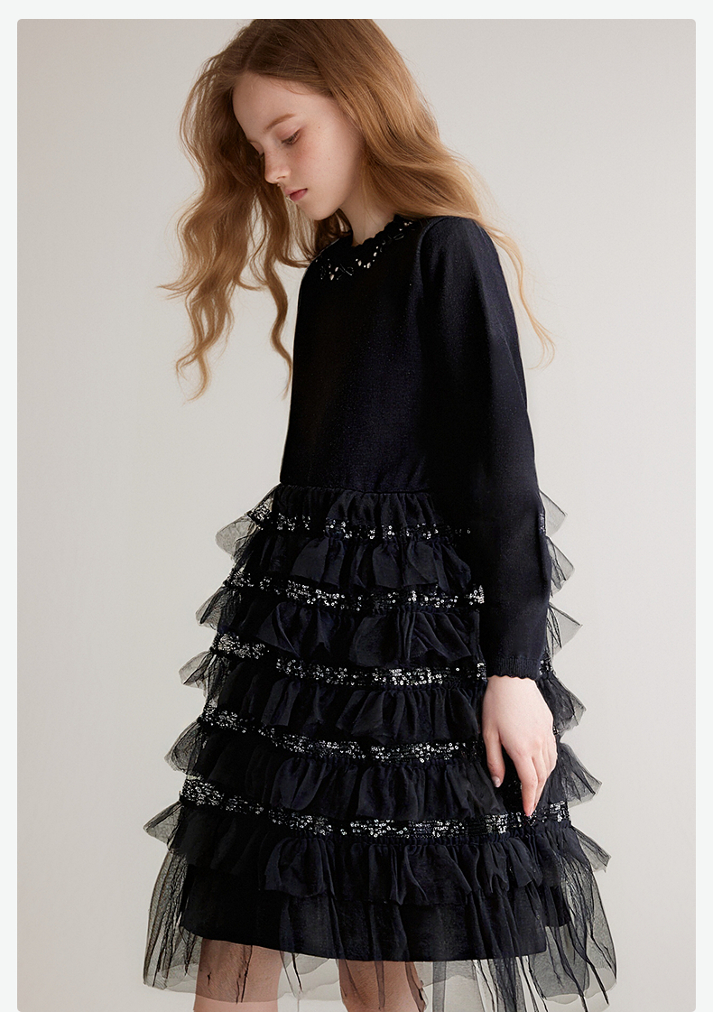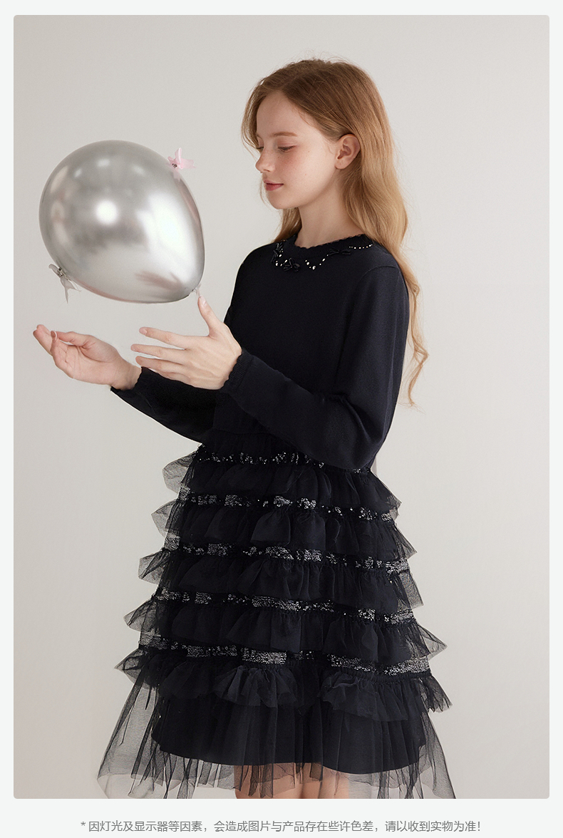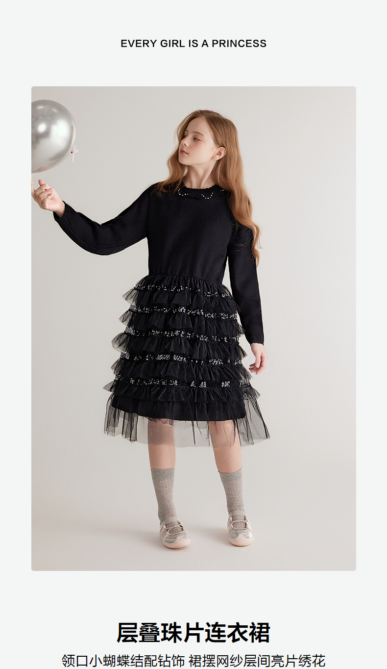 笛莎Deesha 童装女童连衣裙2025冬新款女童层叠珠片连衣裙