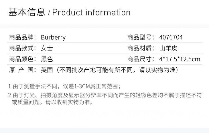 [香港直邮】Burberry 巴宝莉 女士黑色山羊皮迷你D环形包 4076704