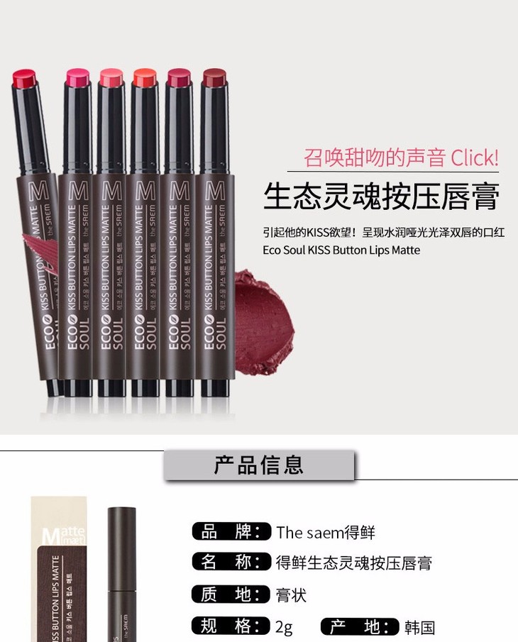 【保税仓】THE SAEM_得鲜 按压口红 M05 哑光复古红 2G