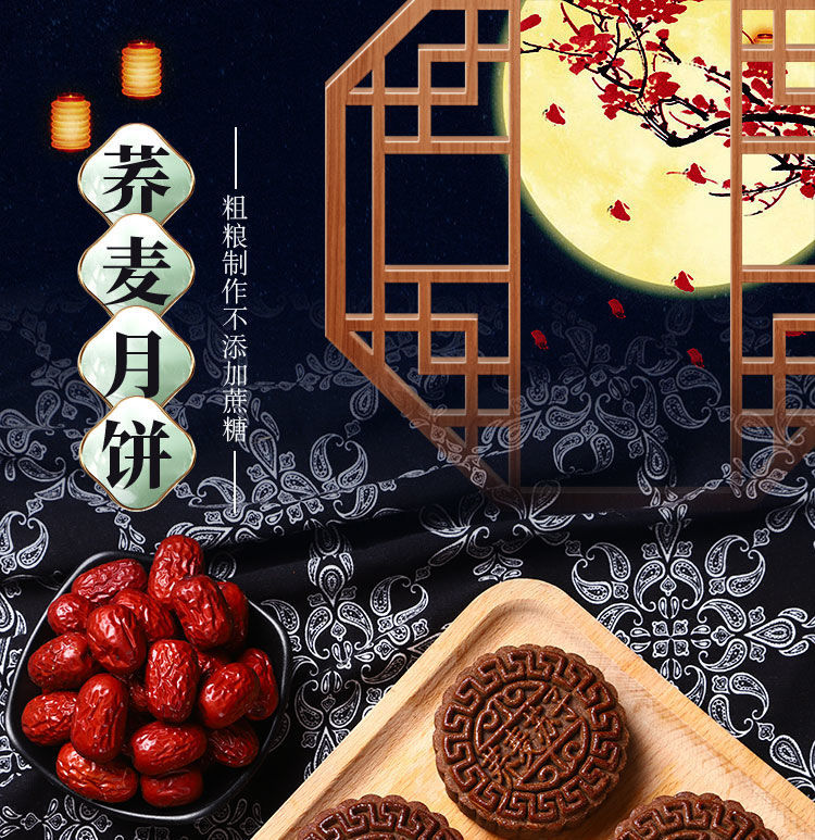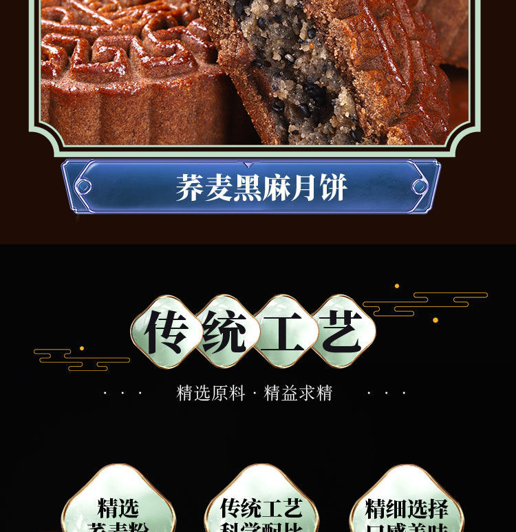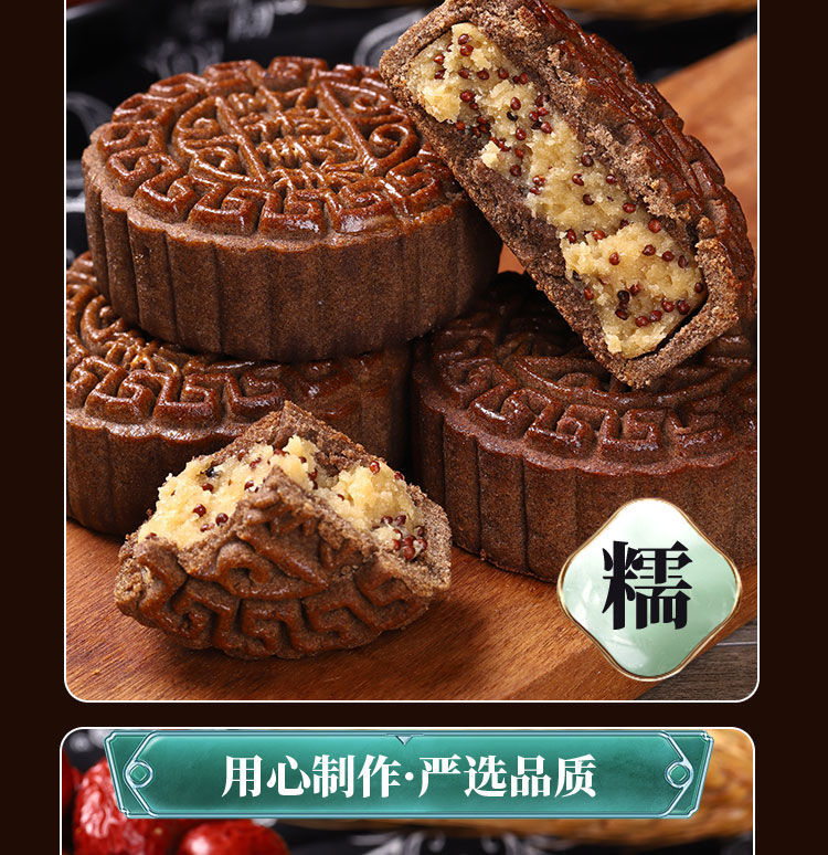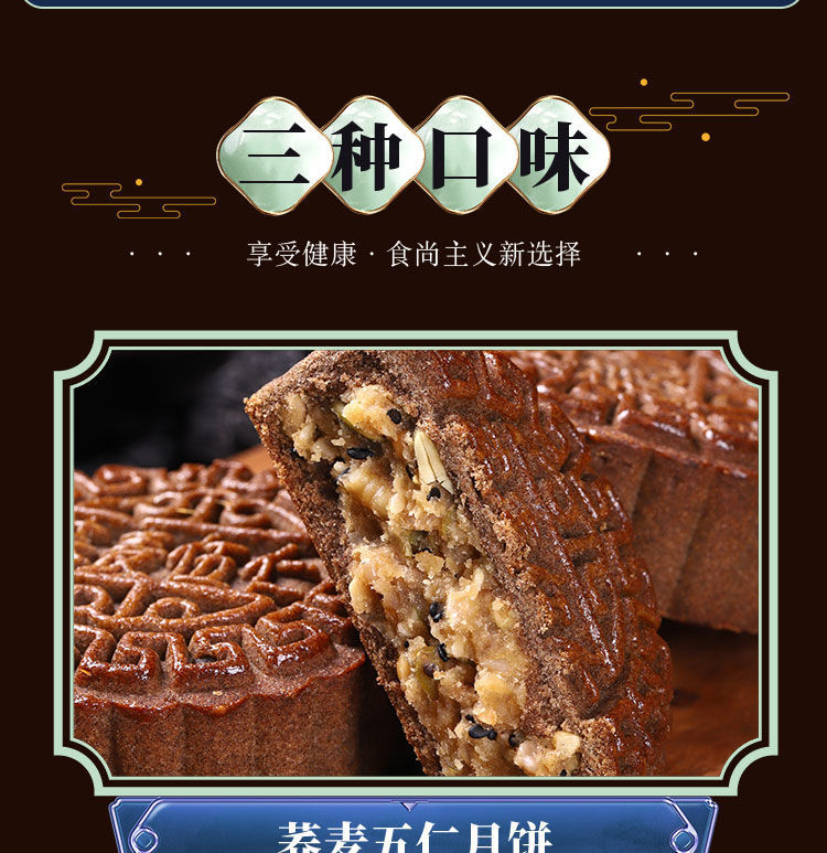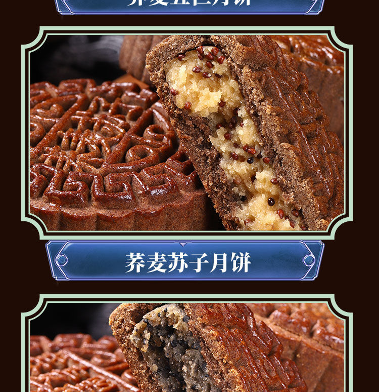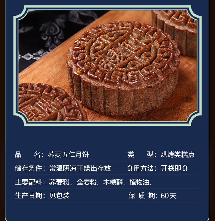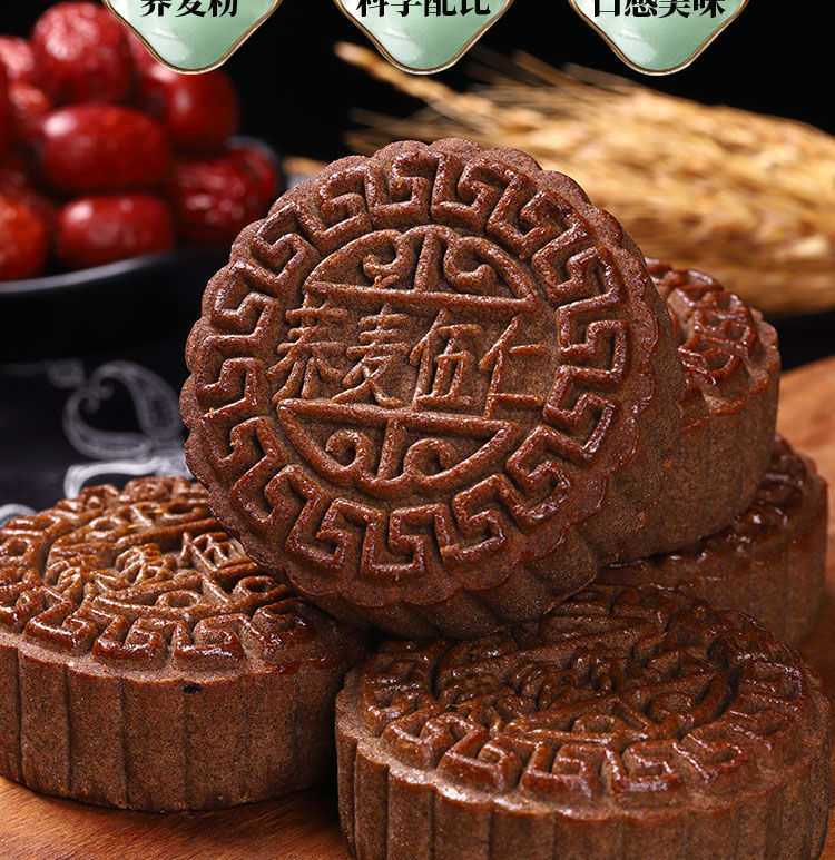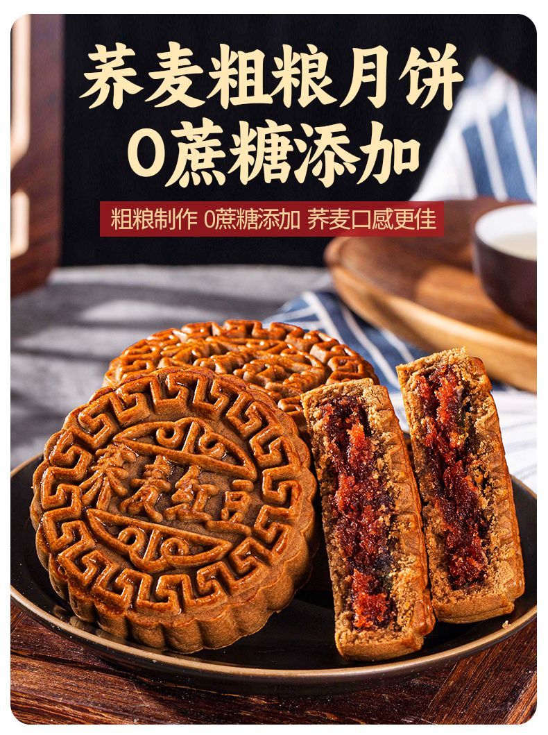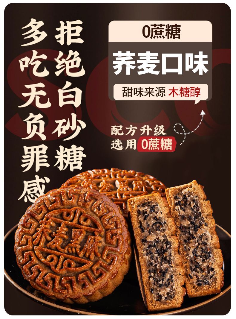 全麦荞麦月饼老式五仁月饼苏子黑麻低无蔗糖精脂卡粗粮减木糖醇杂粮