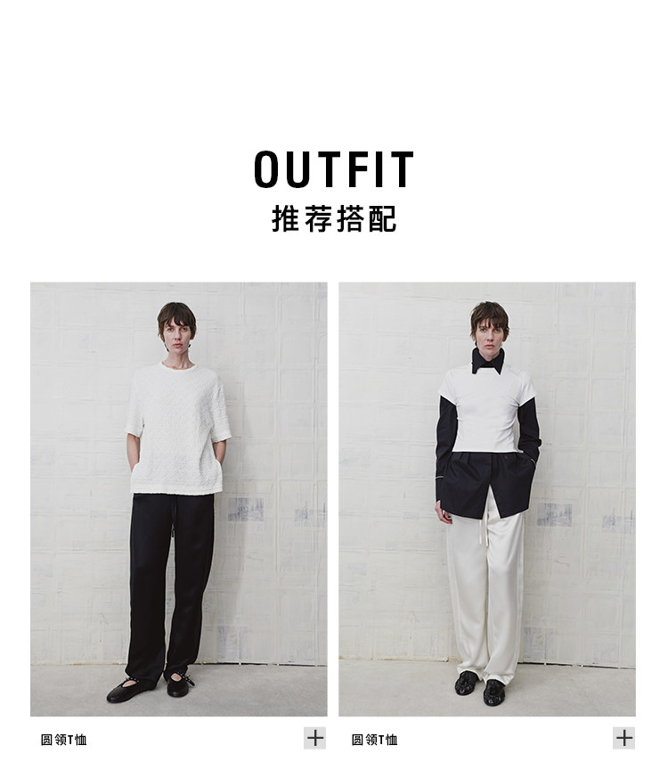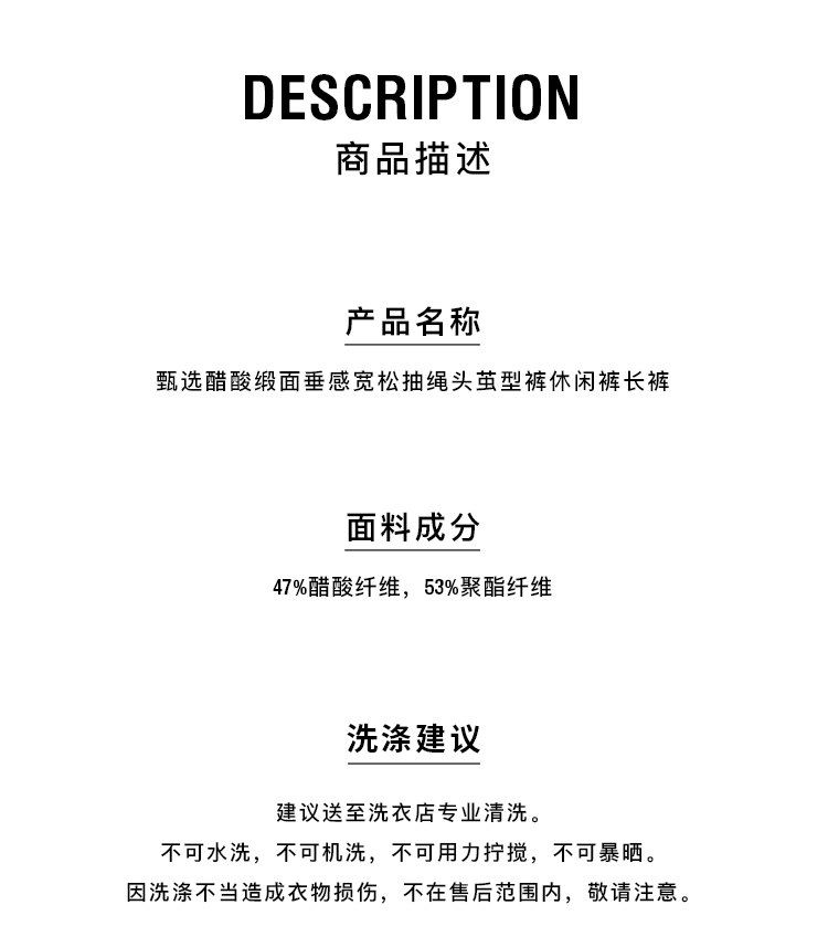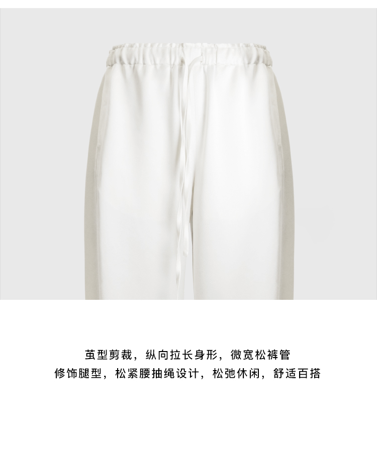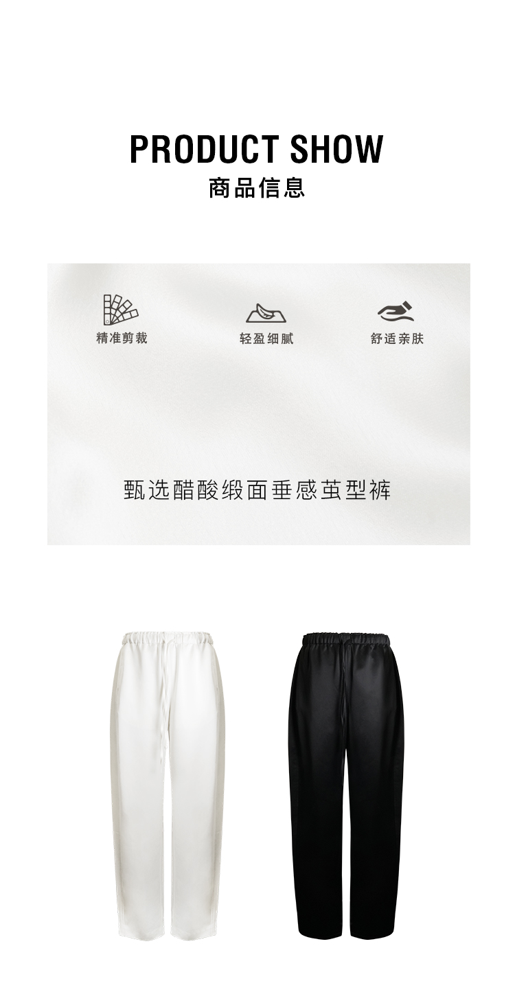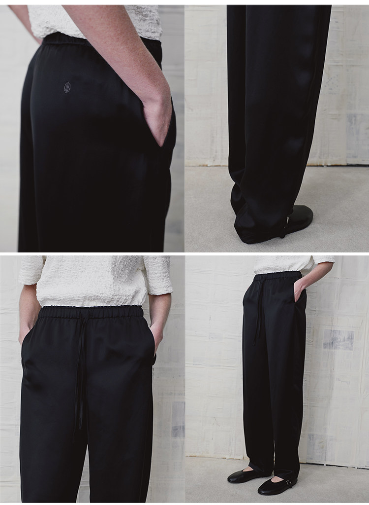 HIDEMI 缎面垂感宽松抽绳头直筒裤休闲裤长裤