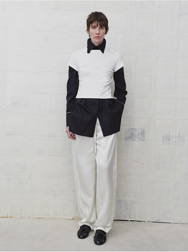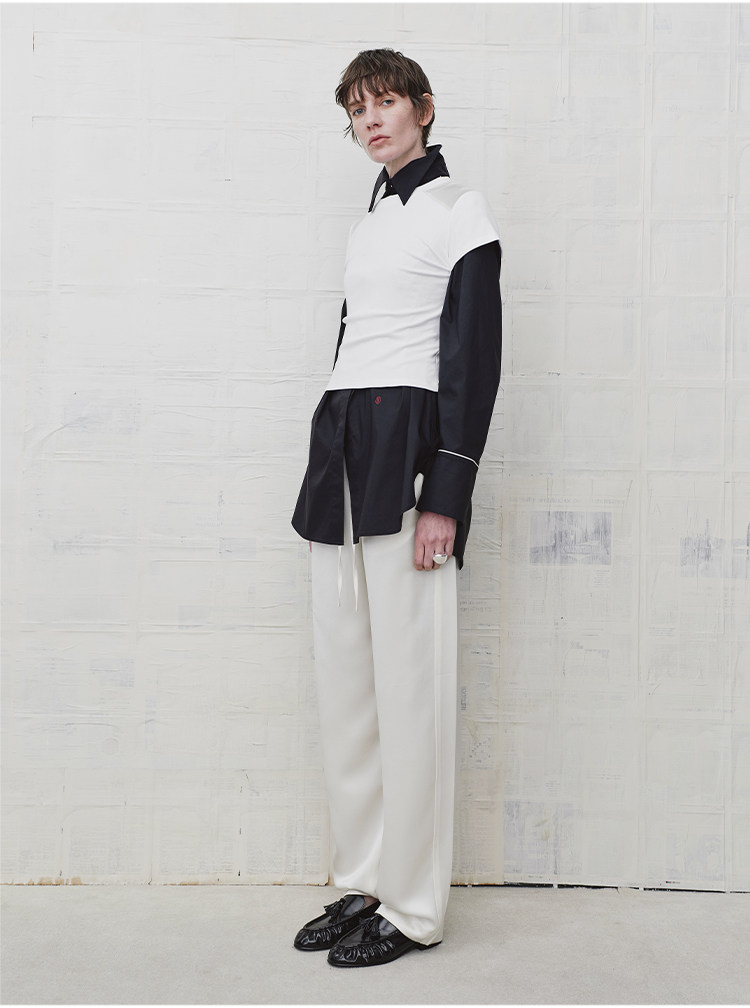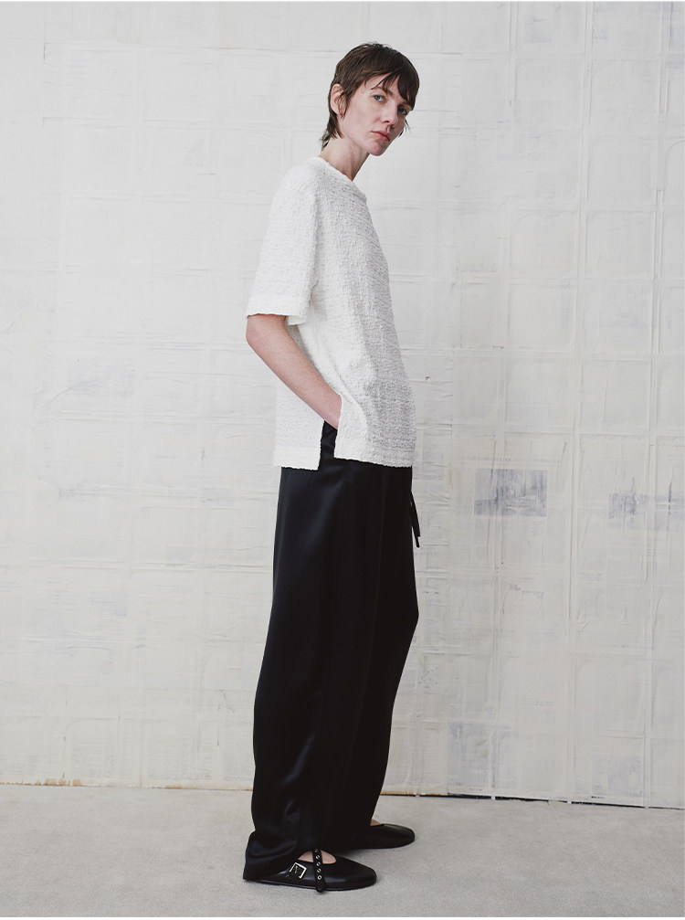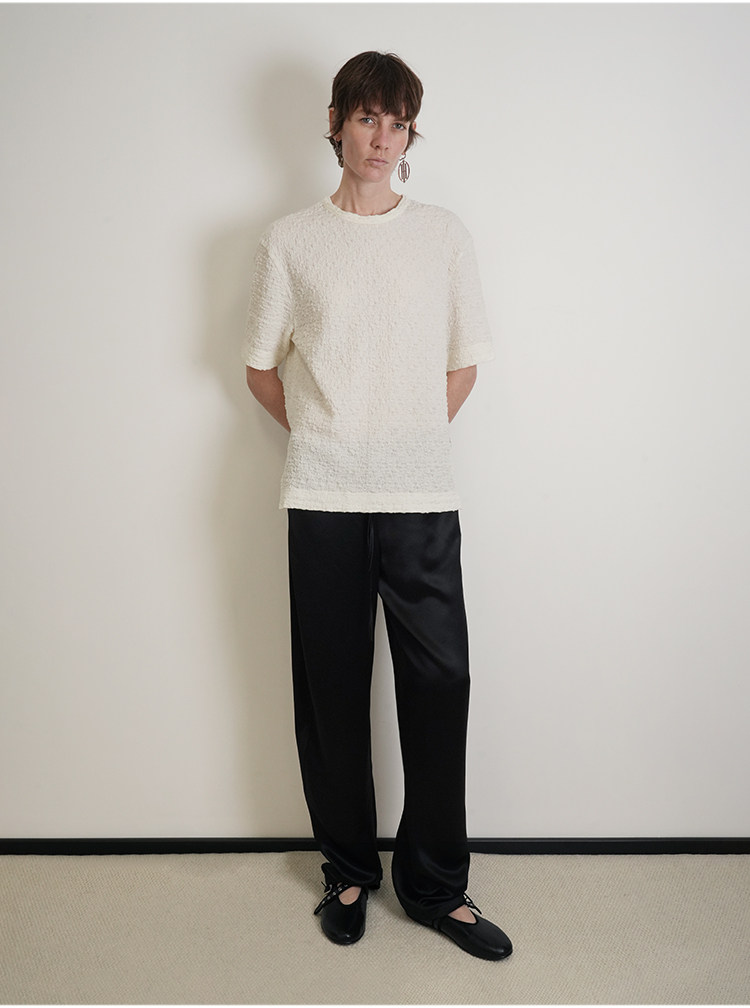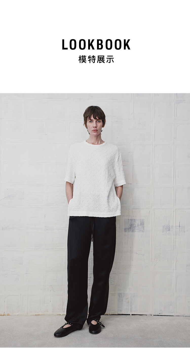 HIDEMI 缎面垂感宽松抽绳头直筒裤休闲裤长裤