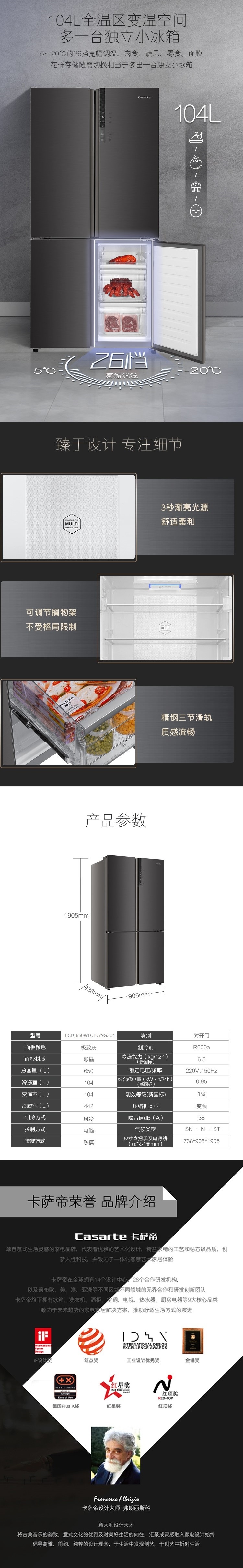 卡萨帝(Casarte)冰箱BCD-650WLCTD79G3U1