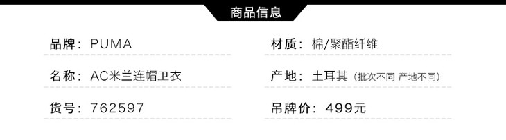 PUMA彪马AC米兰球迷标语运动卫衣连帽外套762597