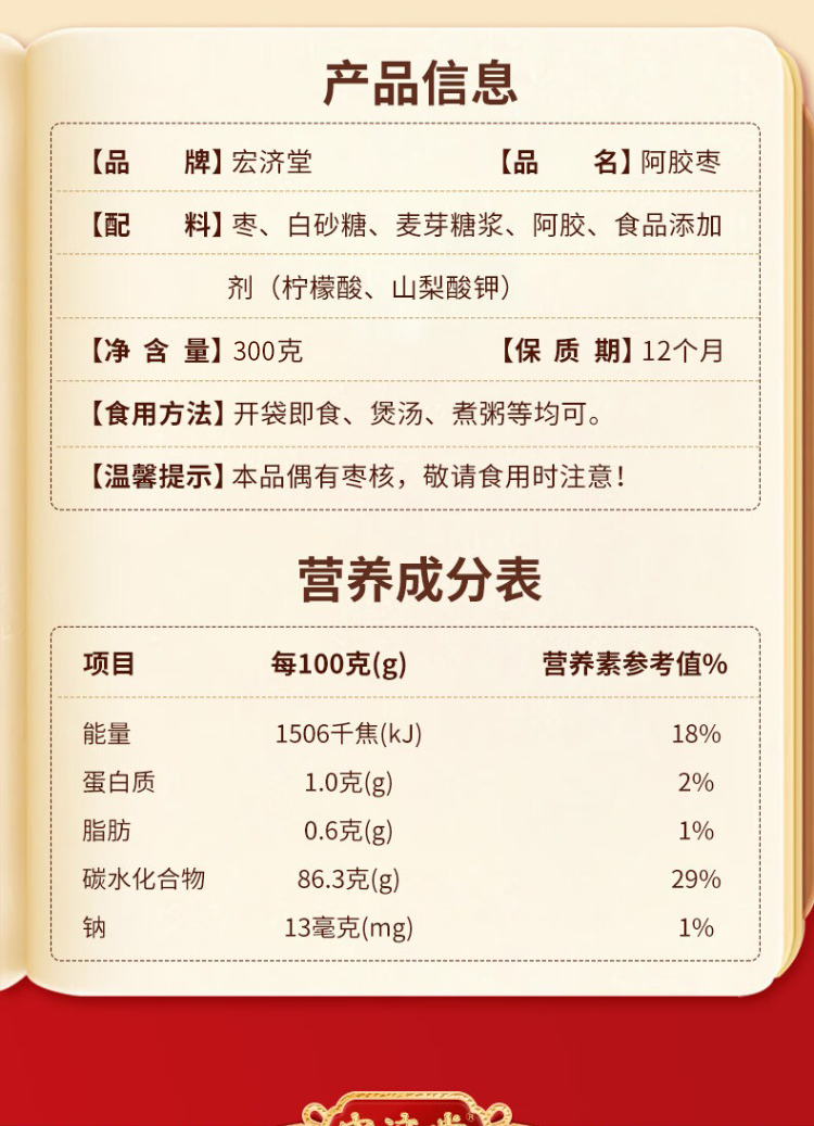 宏济堂 阿胶枣300g/袋
