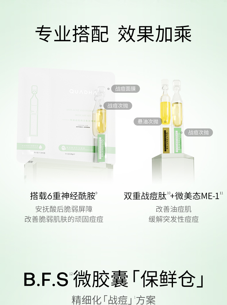 | 售后标准 | 售后期为收货7天内,未拆不影响二次销售可退,非质量问题客户自费寄回 夸迪控油战痘次抛、夸迪战痘焕活集润套组(1.5ml/支 28g/袋)日期效期到26年9-10月;保质期三年 |