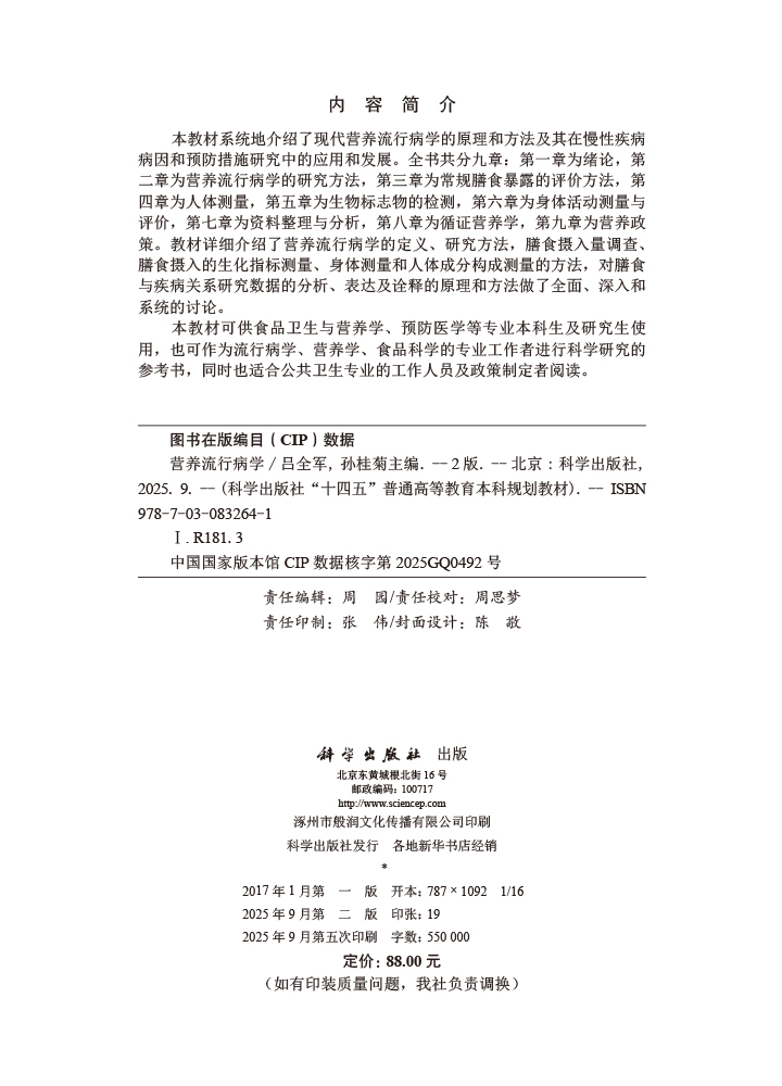 营养流行病学 第2二版 十四五普通高等教育本科规划教材 吕全军 孙桂菊 主编 供食品卫生与营养学 预防医学等专业使用 科学出版社