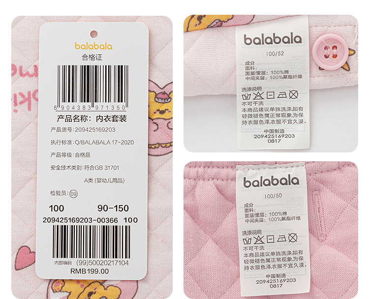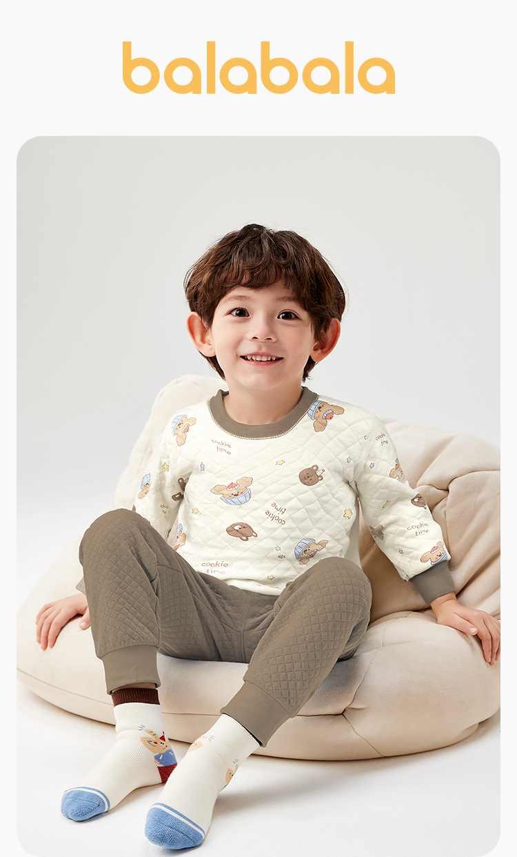 巴拉巴拉balaOne儿童内衣套装男童女童2件套新款童装2025秋冬夹棉