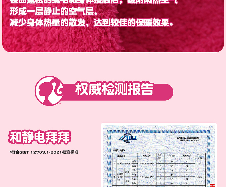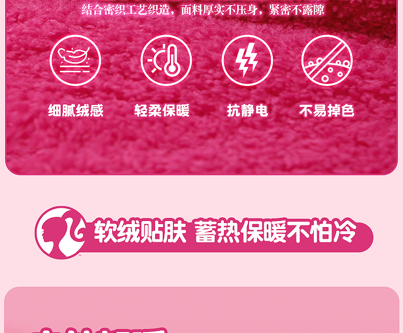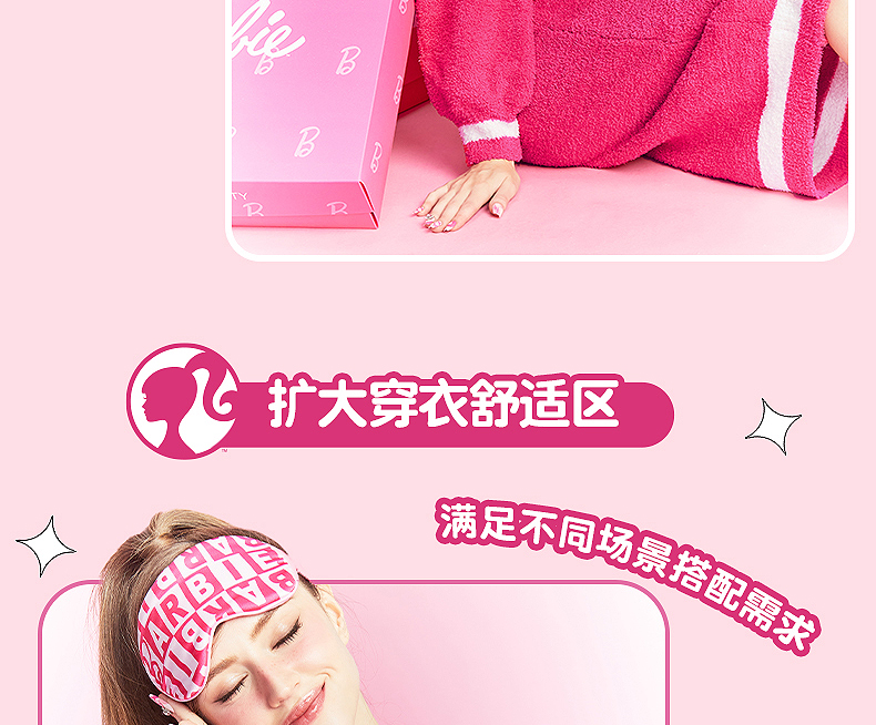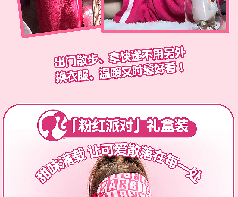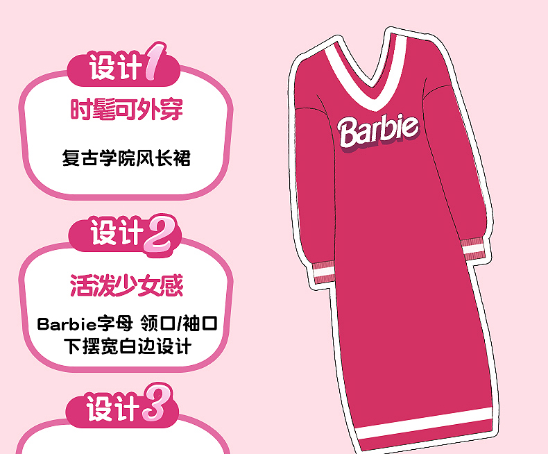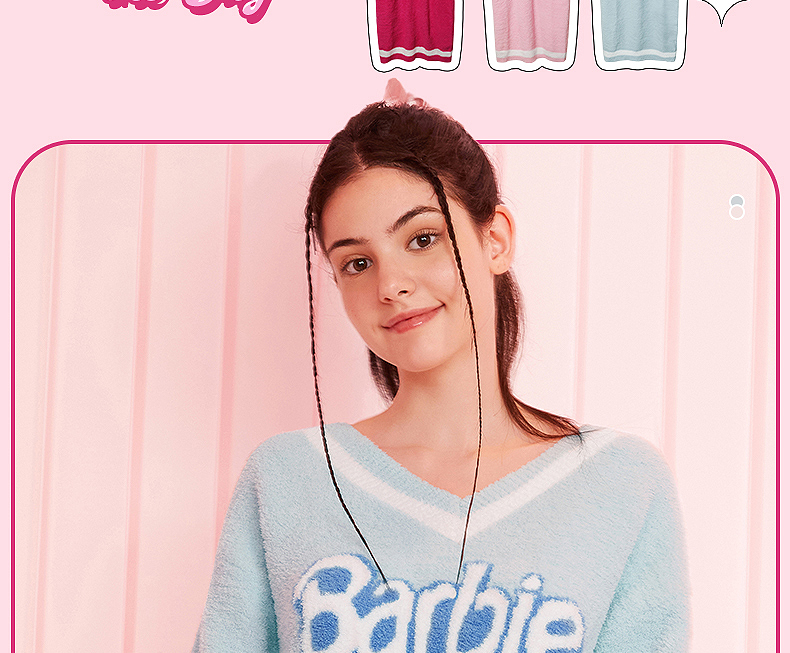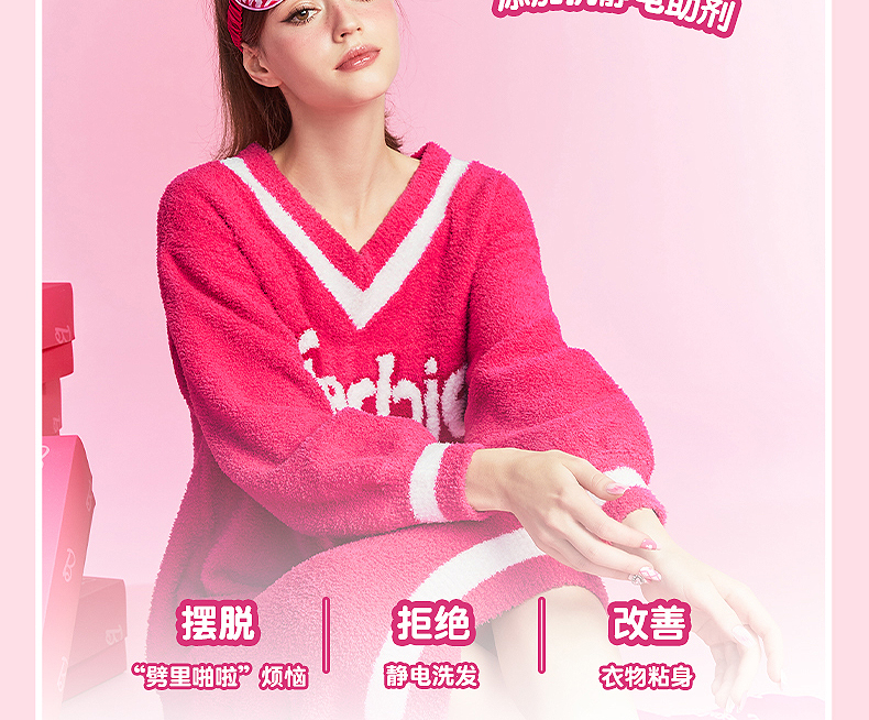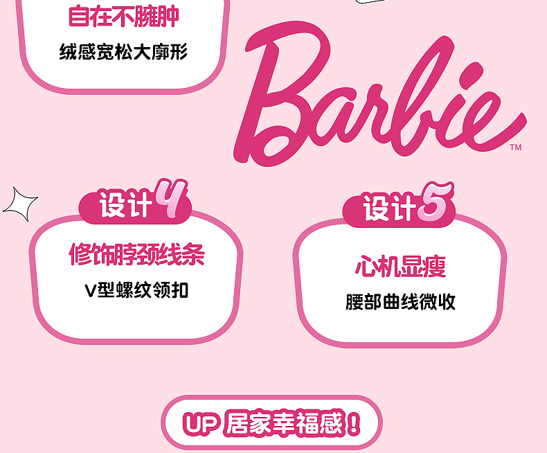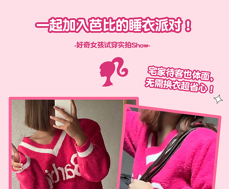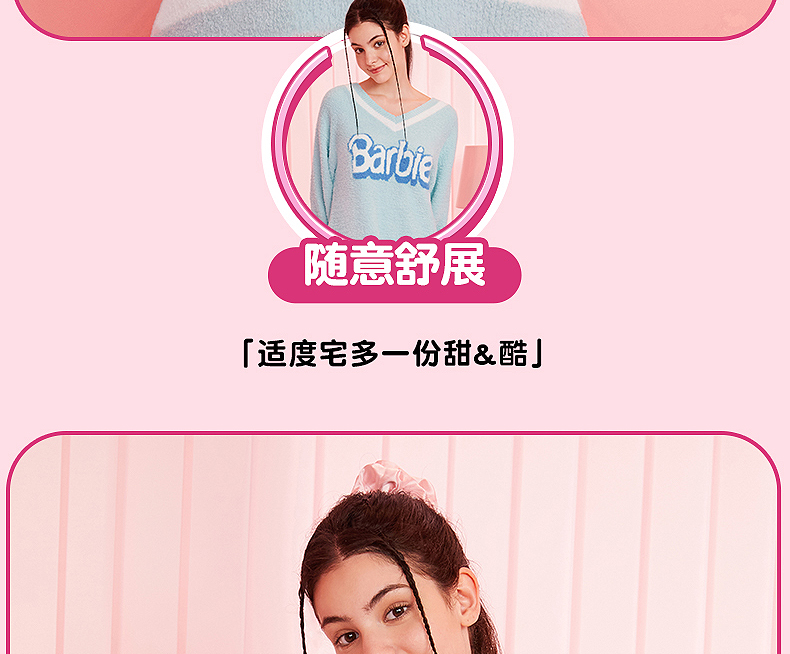 好奇蜜斯Barbie联名半边绒保暖女士家居服V领长袖简约睡裙秋冬款 Hazel 海泽儿