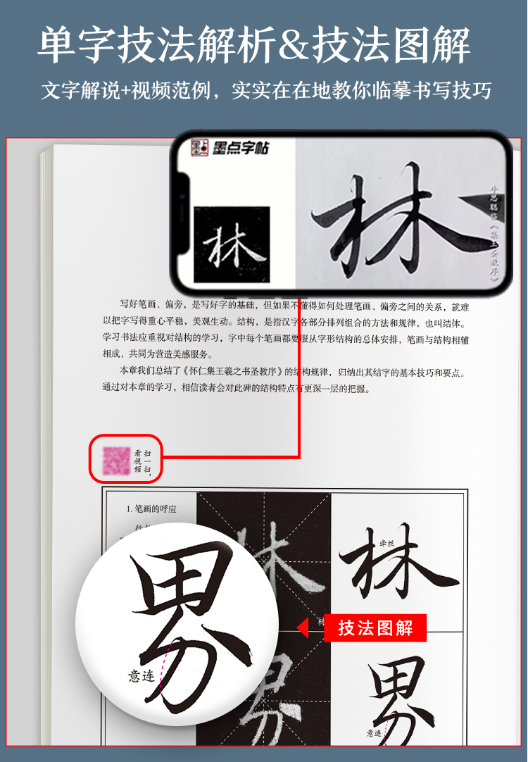 墨点字帖 毛笔入门视频教程 楷书行书隶书可选初学者毛笔书法字帖