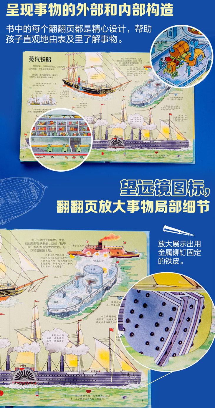 科学探索不止停留于表面,一张张翻页像一个个放大镜、望远镜,像一扇扇大门,让孩子穿越时空,揭开万物背后的“秘密”。