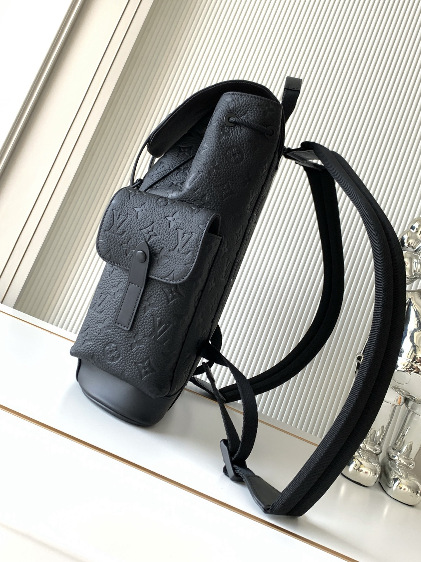 秋冬特惠💰1600 渠道级LV【全钢五金 MB163c01变码芯片】te级LV 全套包装 M20899黑色压花 本款Christopher双肩包浓缩经典设计尺寸,延续侧袋和按扣双肩带等标志性元素。素雅Taurillon 皮革压印传统Monogram 图案,设有平板电脑内袋,为携带日常所需提供摩登之法。