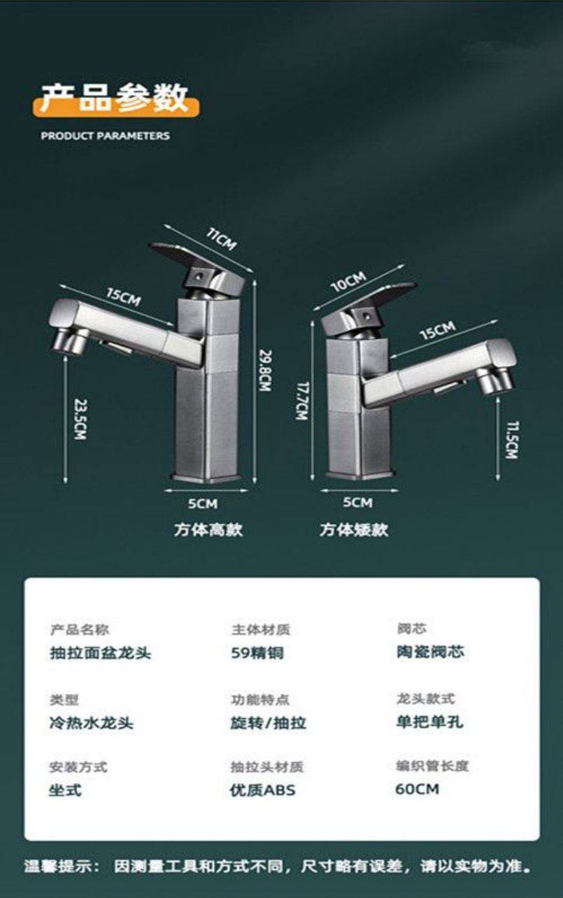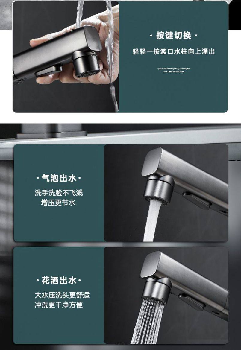 卫生间多功能水龙头面盆全铜水龙头冷热抽拉式浴室面盆抽拉