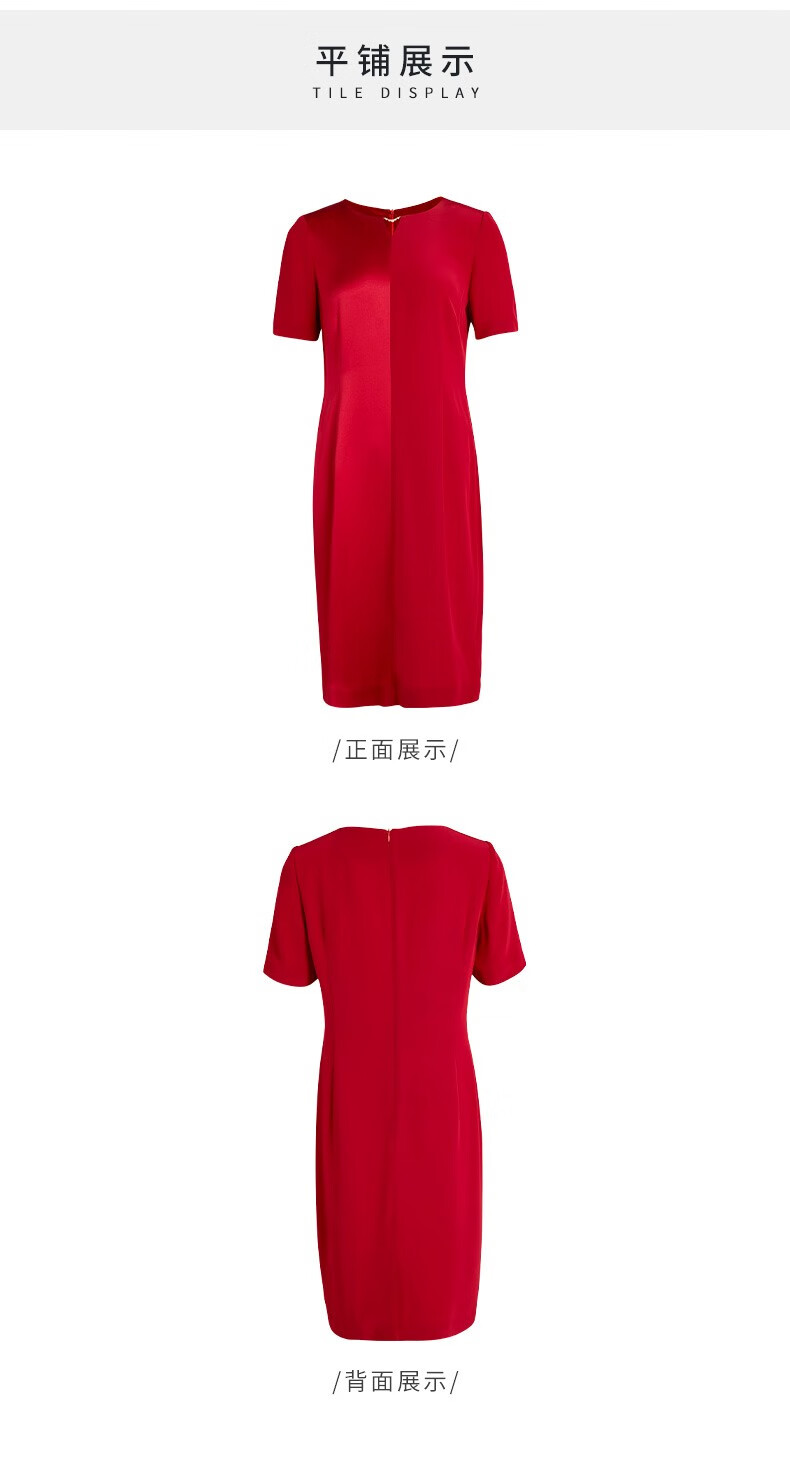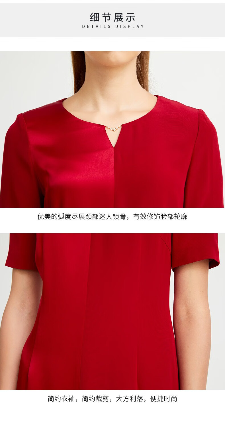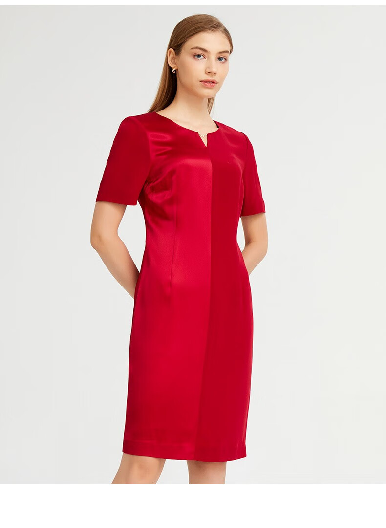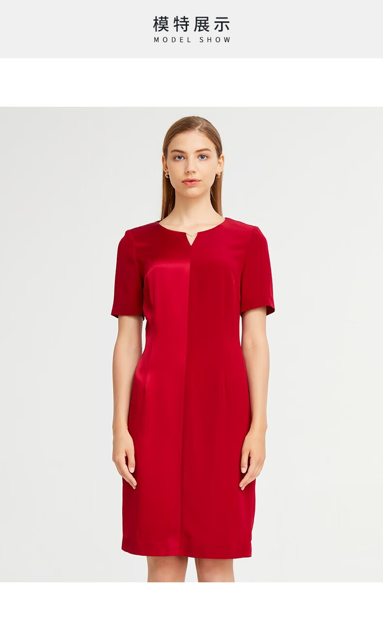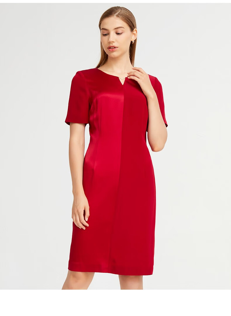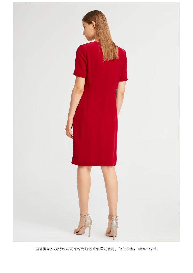 皮尔卡丹女装连衣裙简约时尚礼服小V领场合A字裙P1290D1122R0
