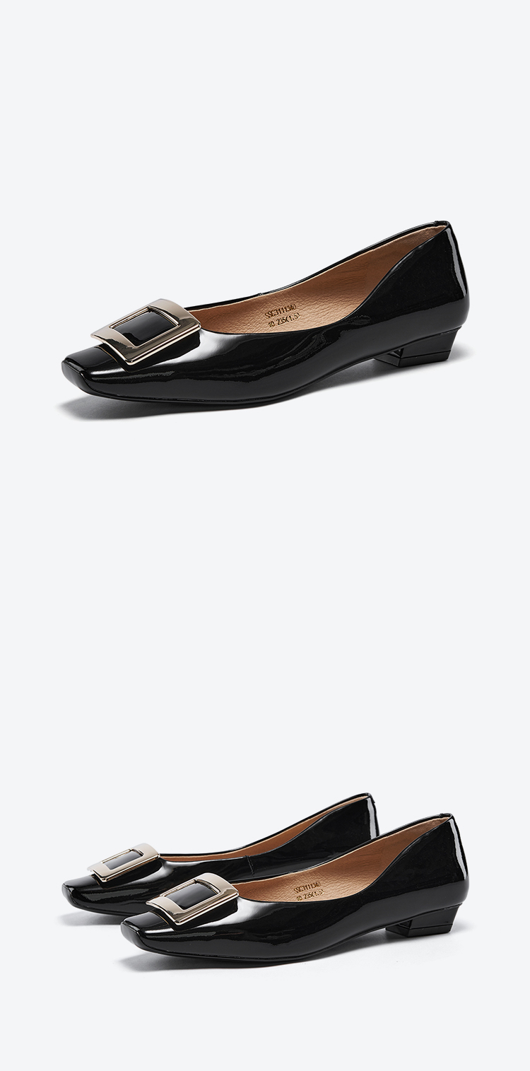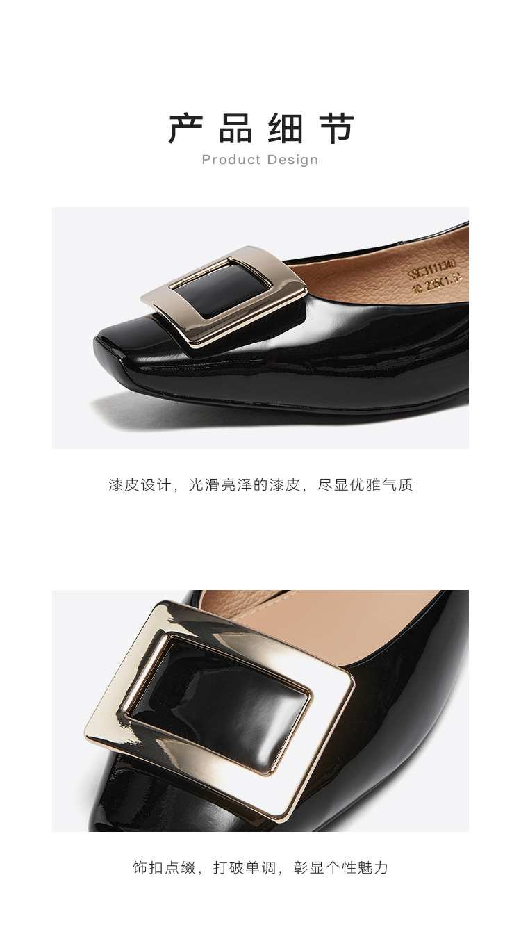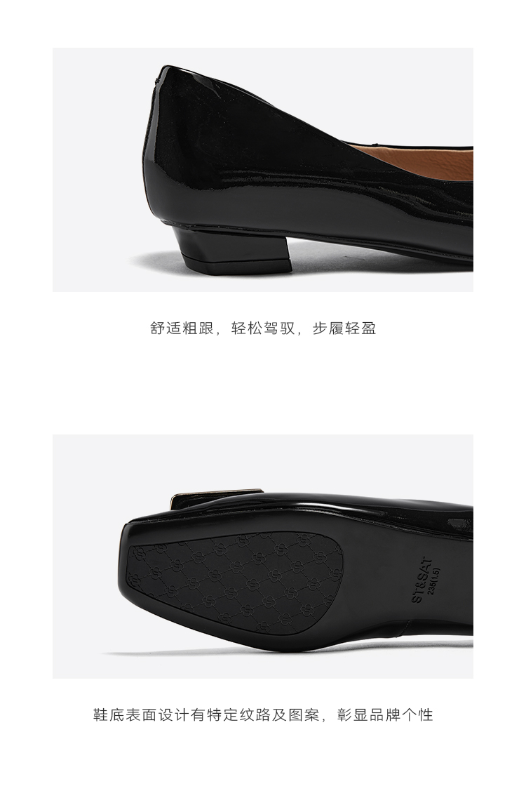 星期六通勤简约方头漆面低跟单鞋SSC3111340