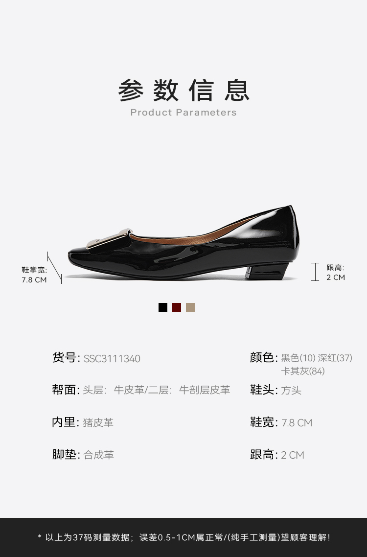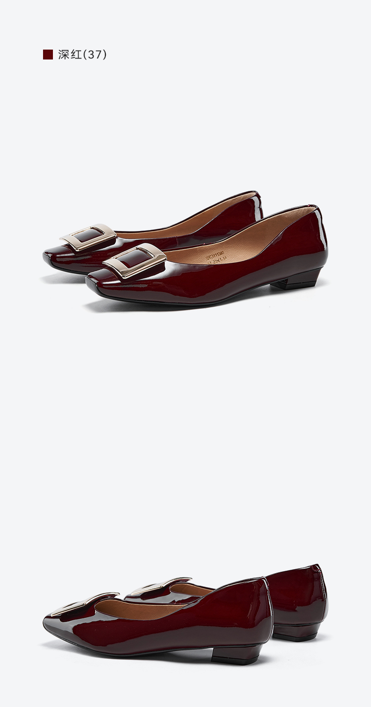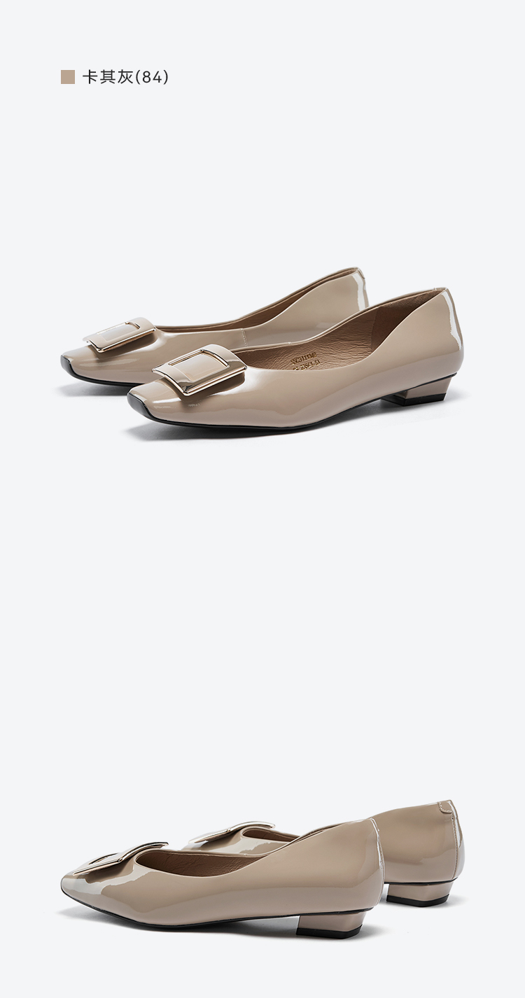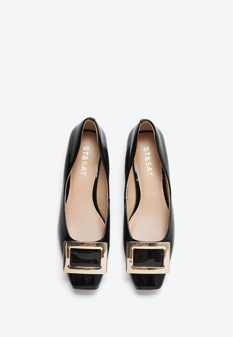 星期六通勤简约方头漆面低跟单鞋SSC3111340