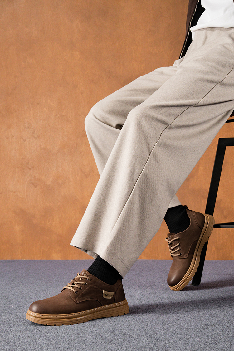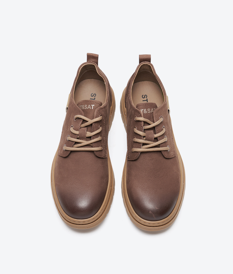 星期六男士都市轻闲褐色系带皮鞋SSD3122005