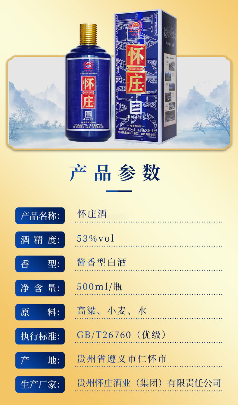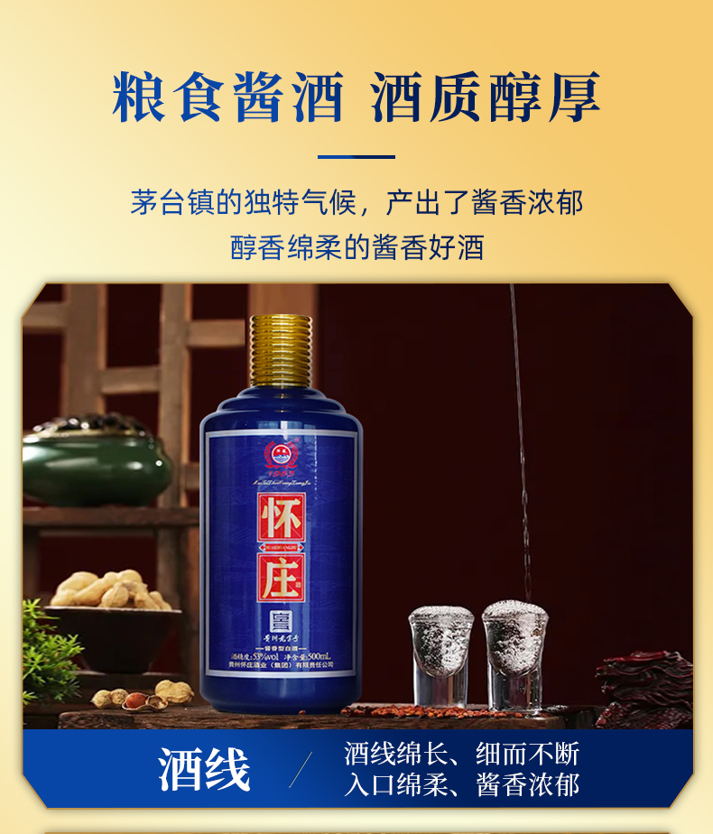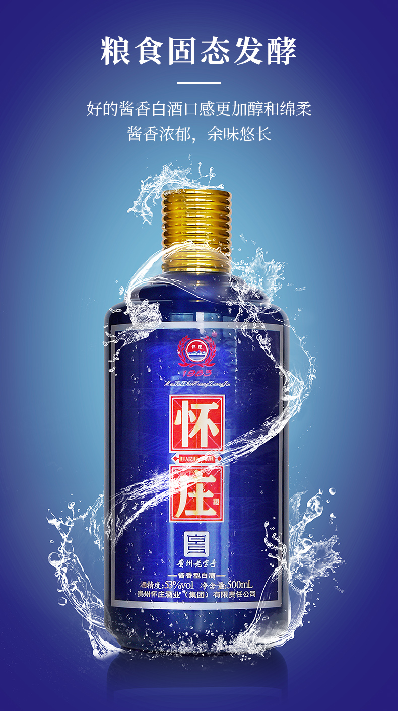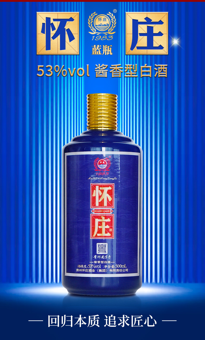 怀庄蓝瓶 53度酱香型白酒 500ml*6瓶/箱
