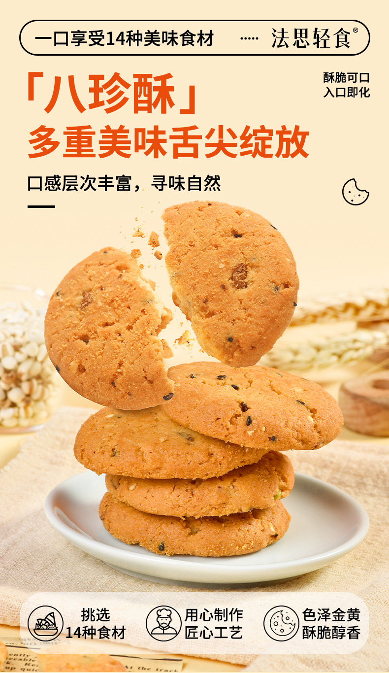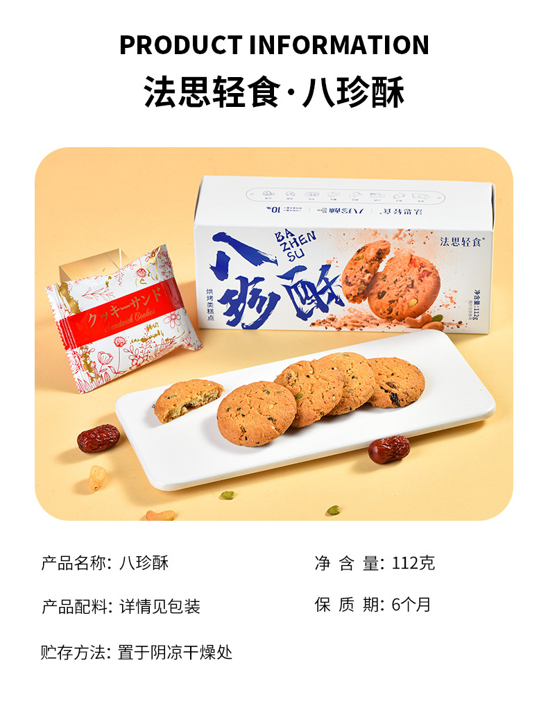 【多重美味舌尖绽放!八珍酥】 每一片都香酥诱人,酥松香浓 入口即化!酥脆满口香,口感香又醇!八珍糕山药坚果茯苓零食即食糕点饼干Y