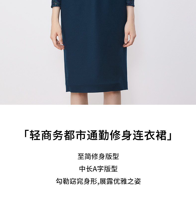皮尔卡丹女装连衣裙拼接淑女显瘦通勤假两件连衣裙P3318E3828G0
