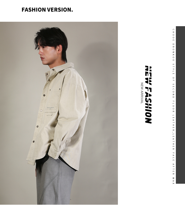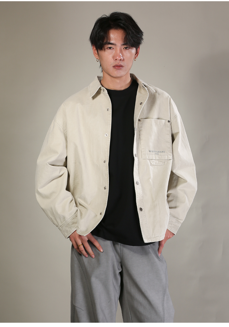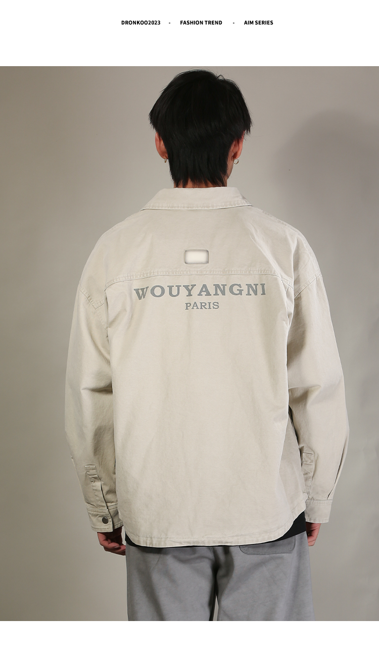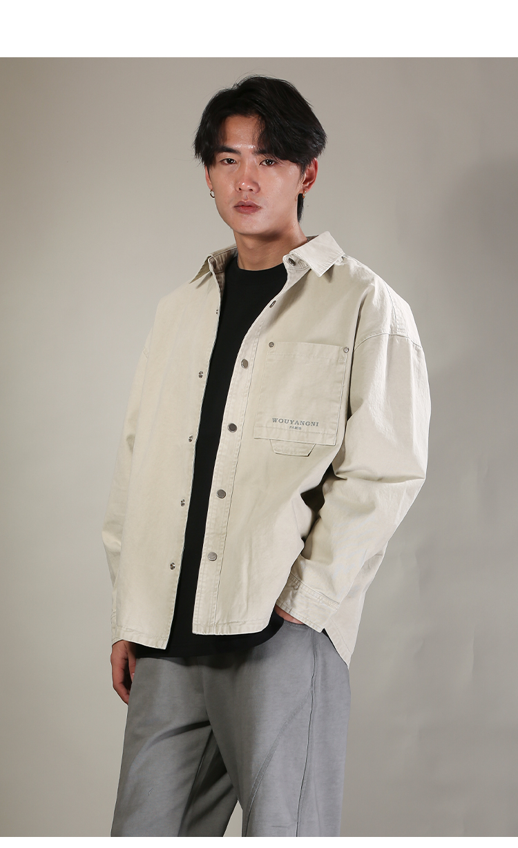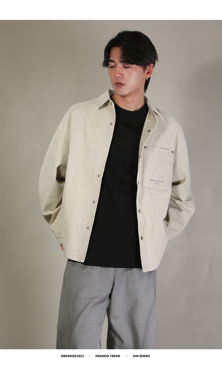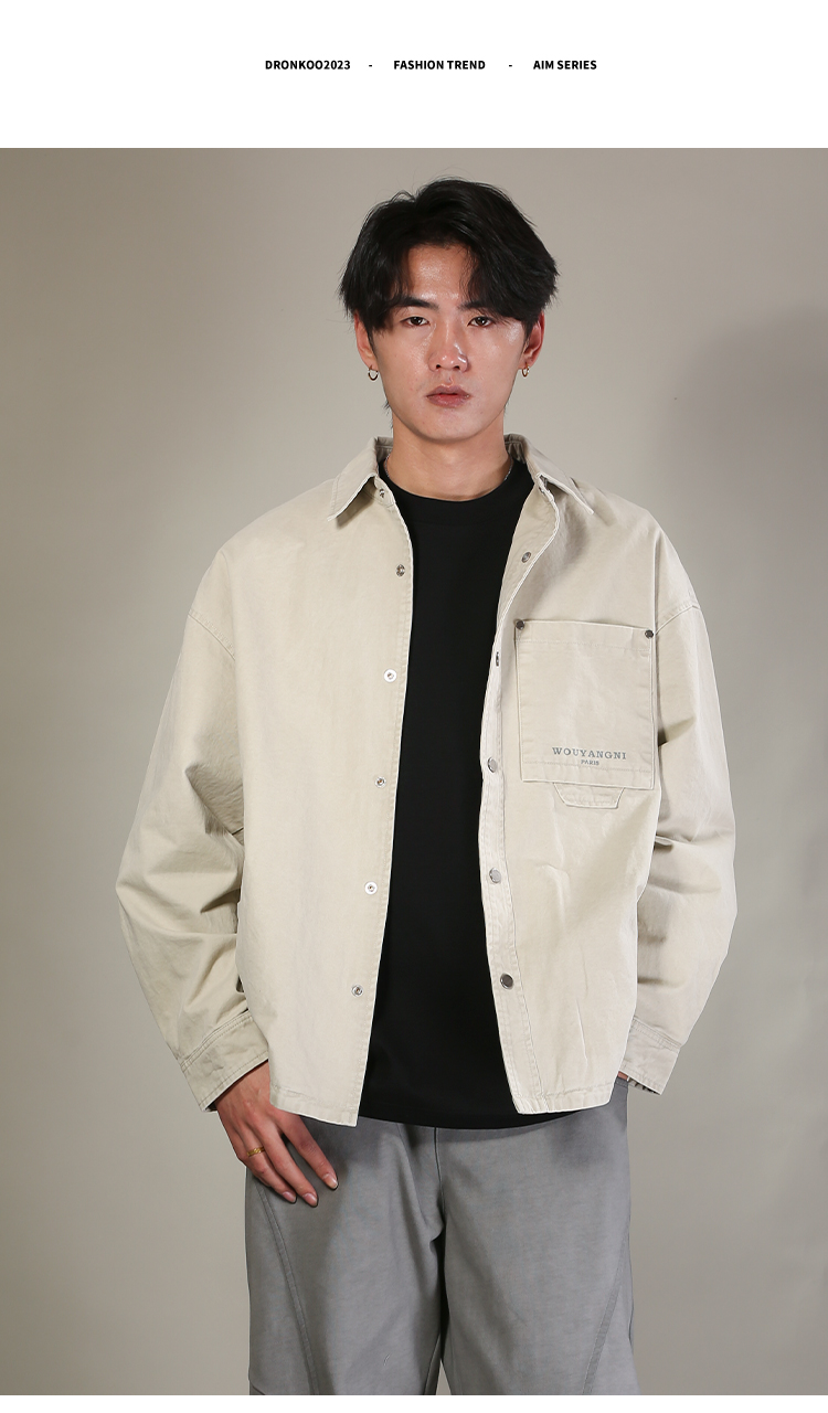 DRONKOO 2026 翻领左胸单贴袋字母印花中厚衬衣外套