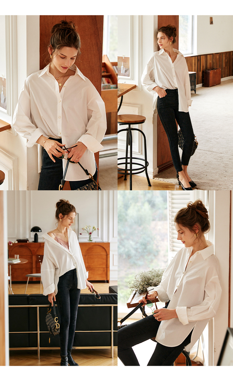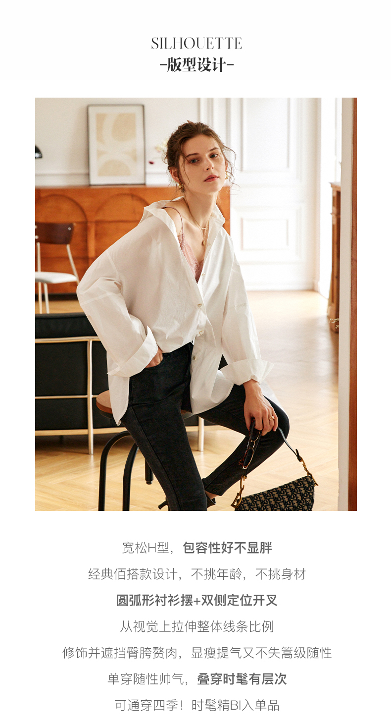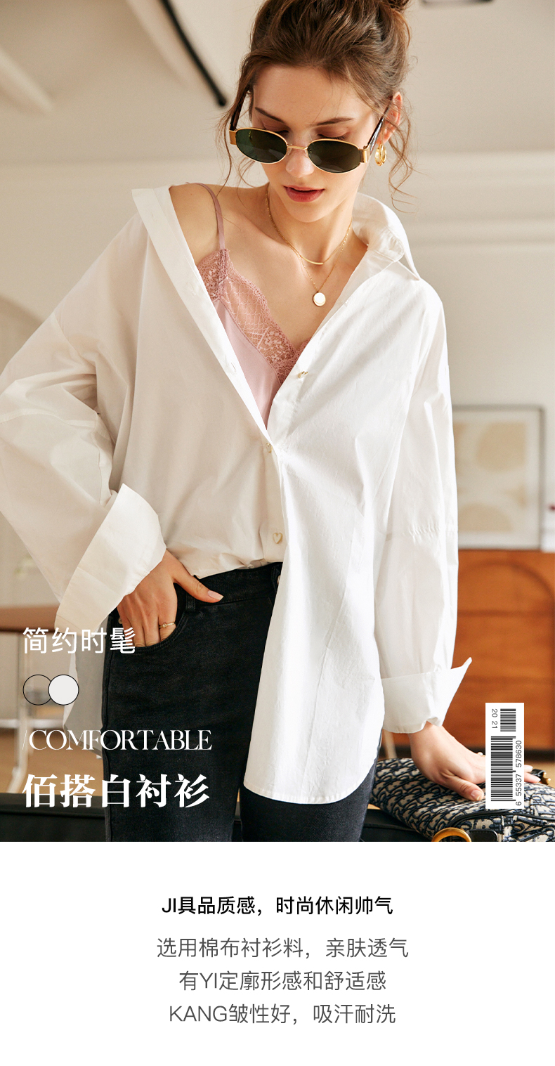 欧芮儿白色纯棉衬衫女夏季2022新款宽松显瘦时尚法式小众休闲衬衣