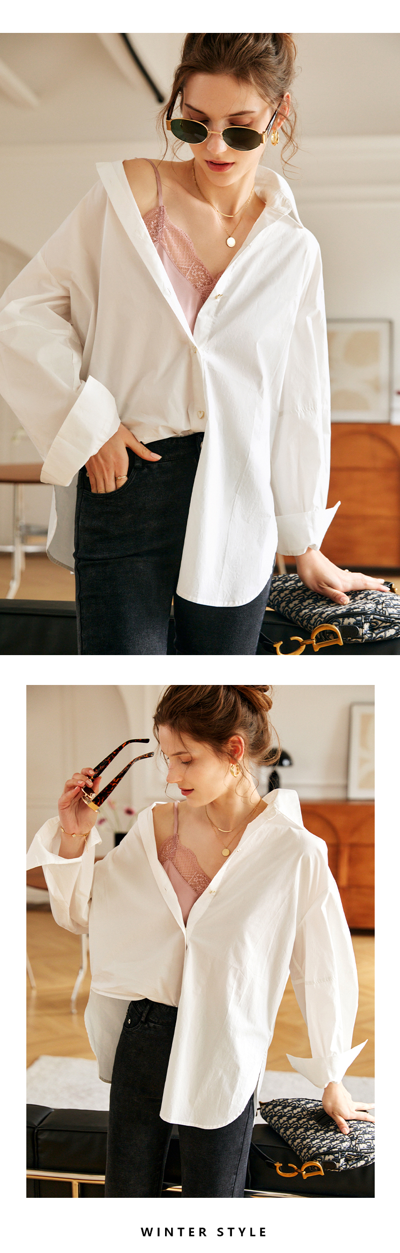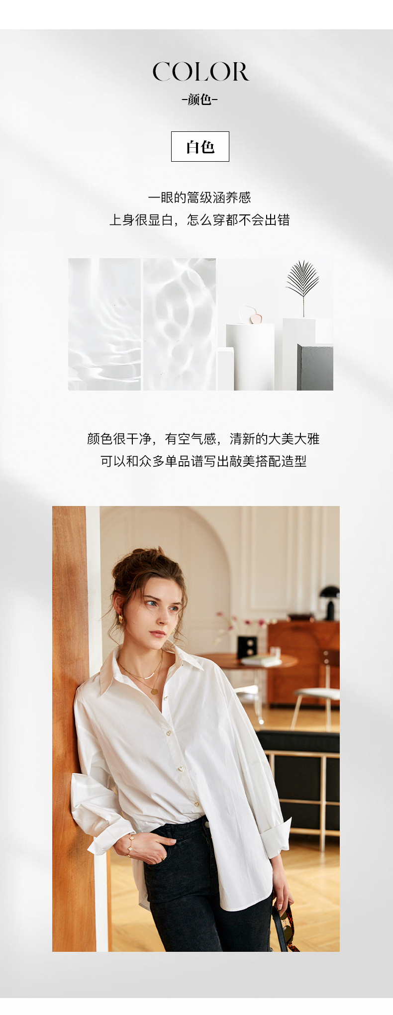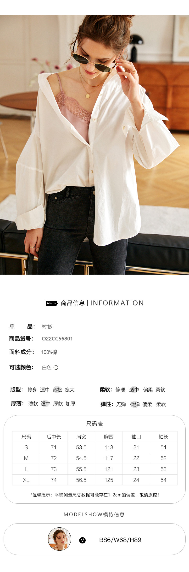 欧芮儿白色纯棉衬衫女夏季2022新款宽松显瘦时尚法式小众休闲衬衣