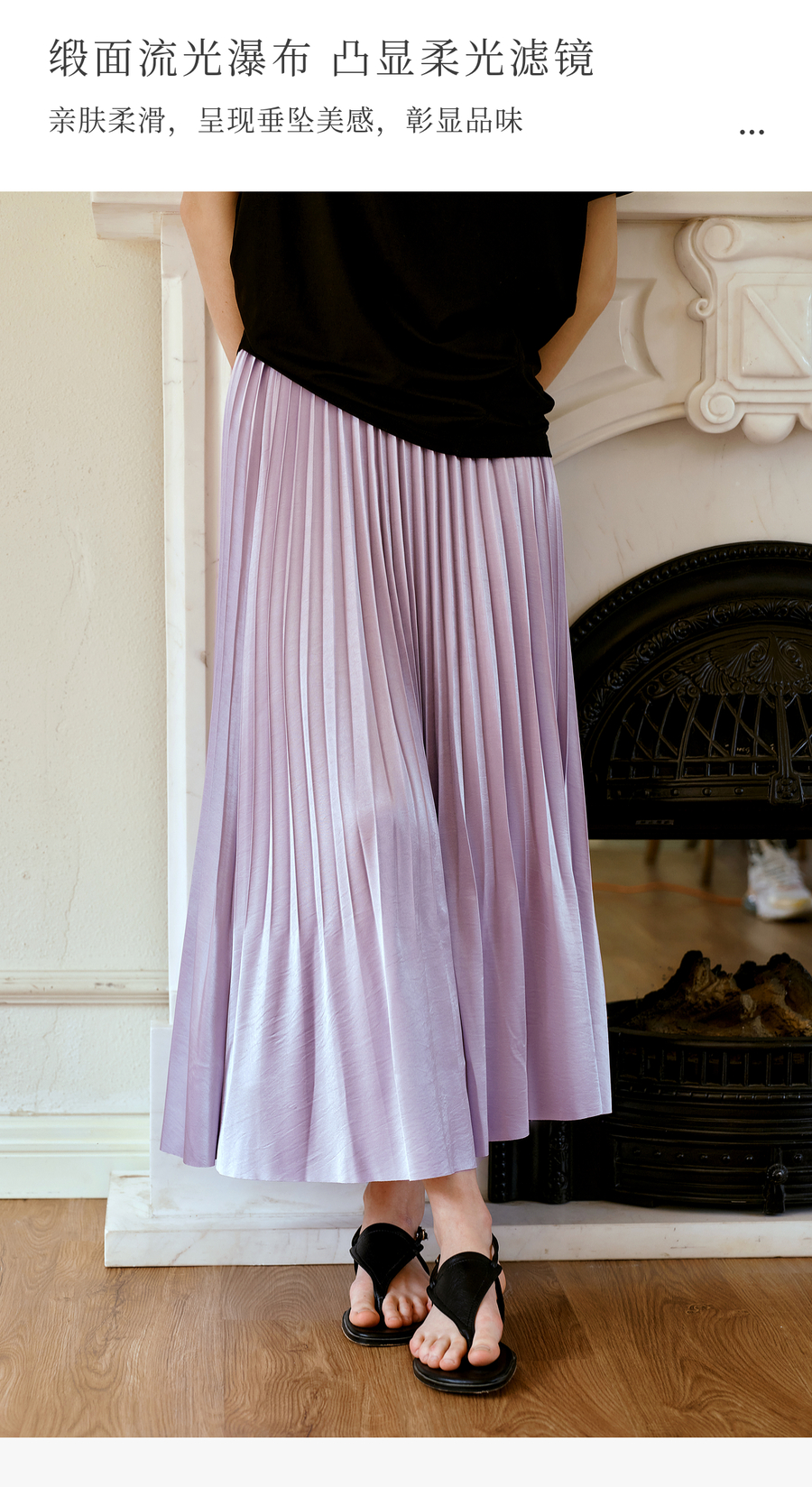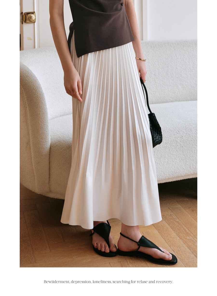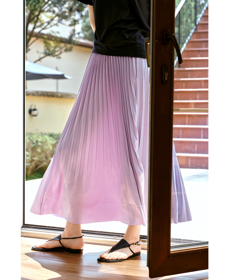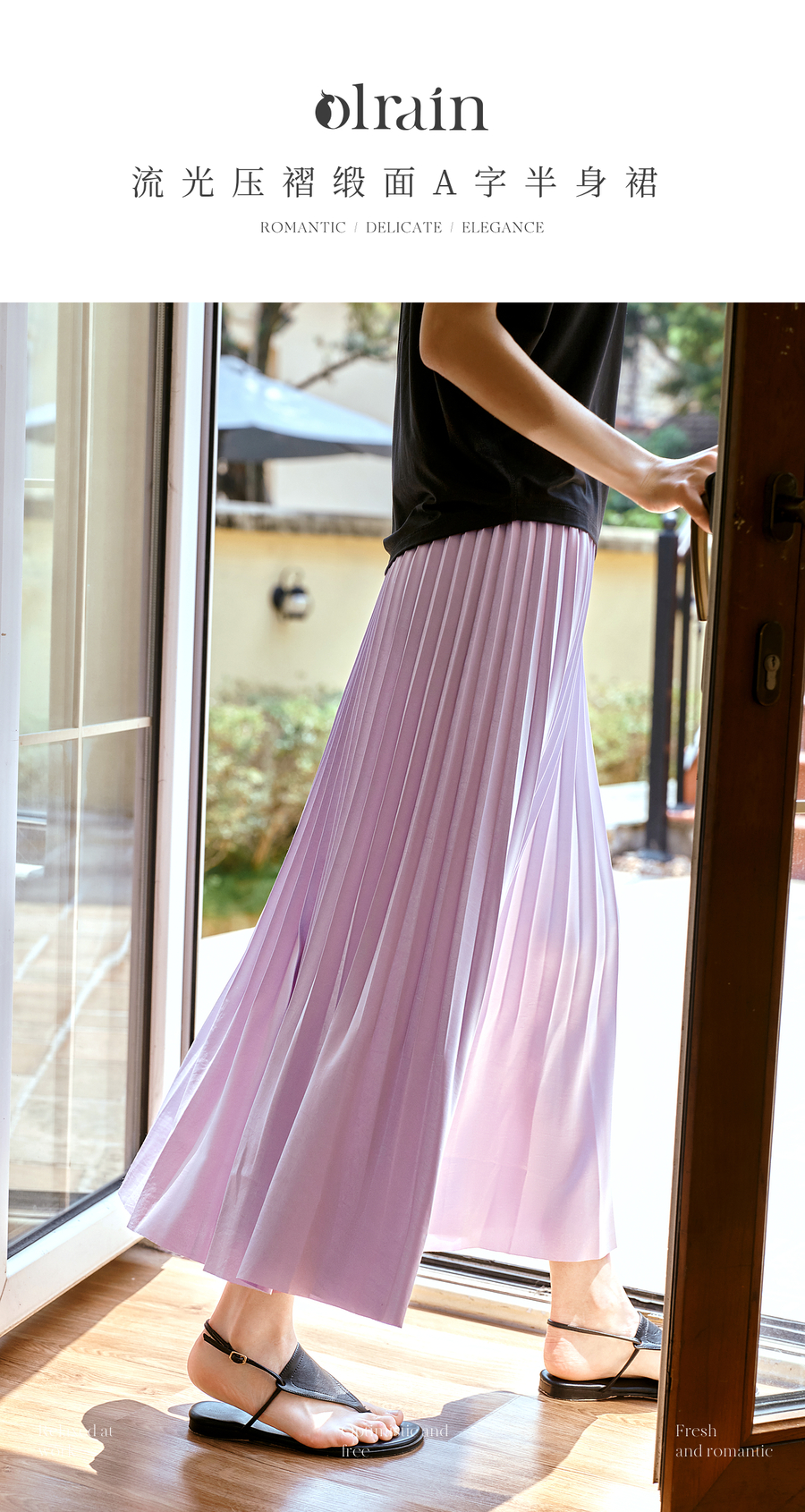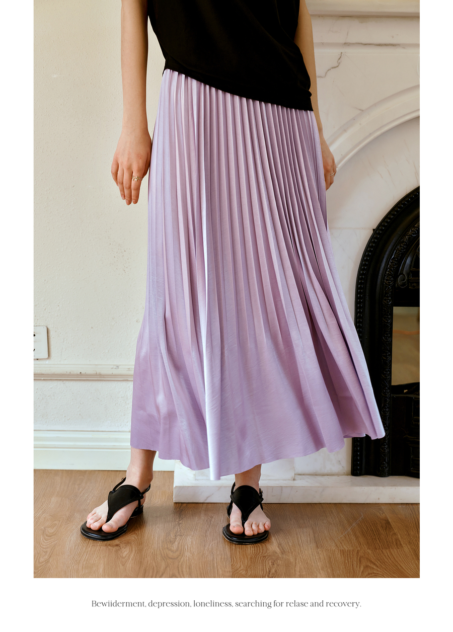 OLrain欧芮儿流光压褶缎面A字半身裙女夏季2025年新款高腰百褶裙