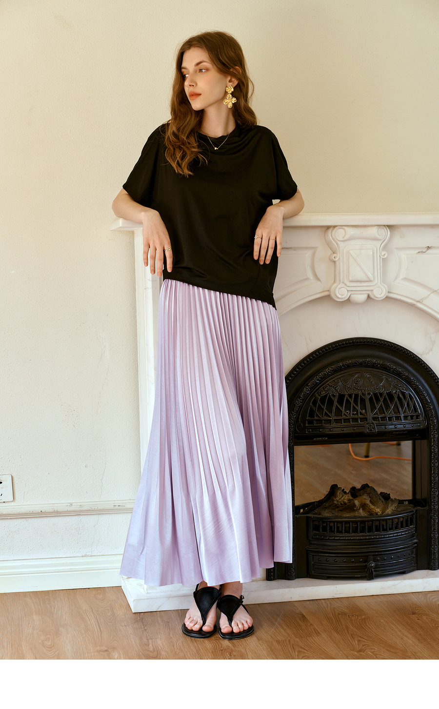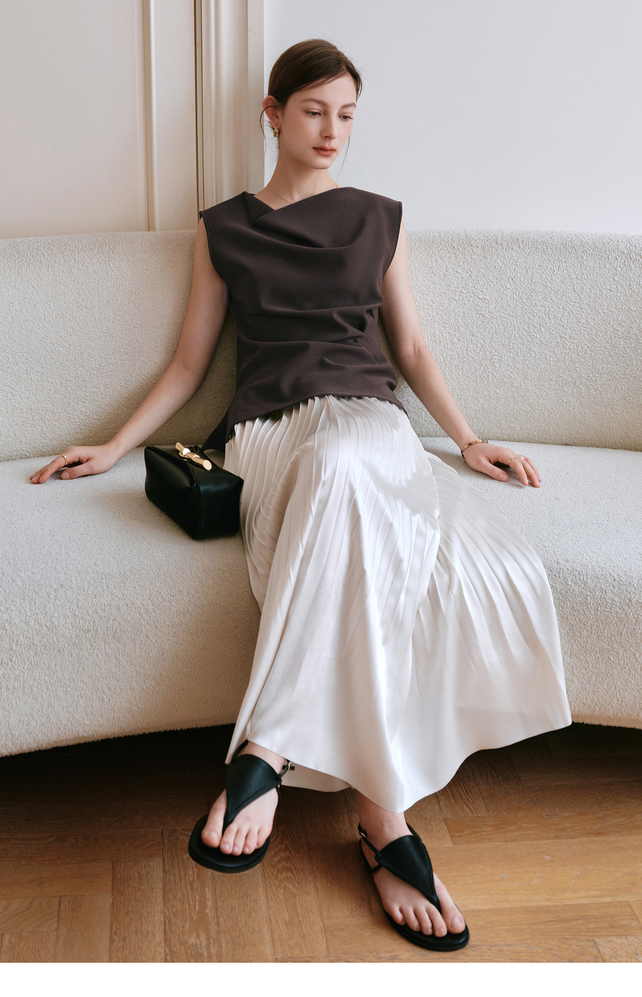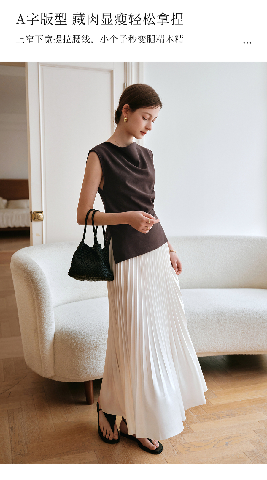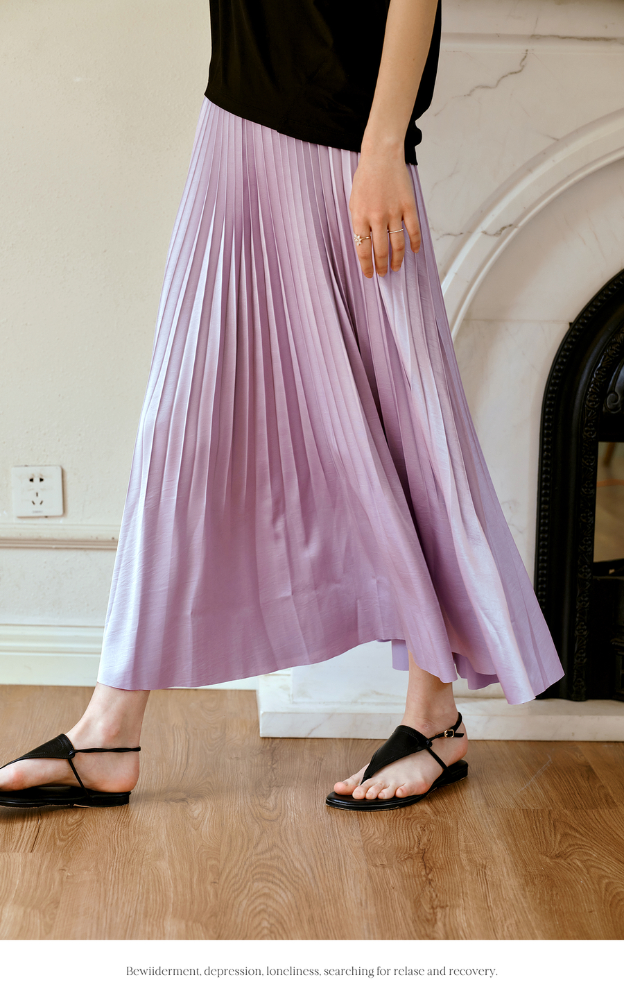OLrain欧芮儿流光压褶缎面A字半身裙女夏季2025年新款高腰百褶裙