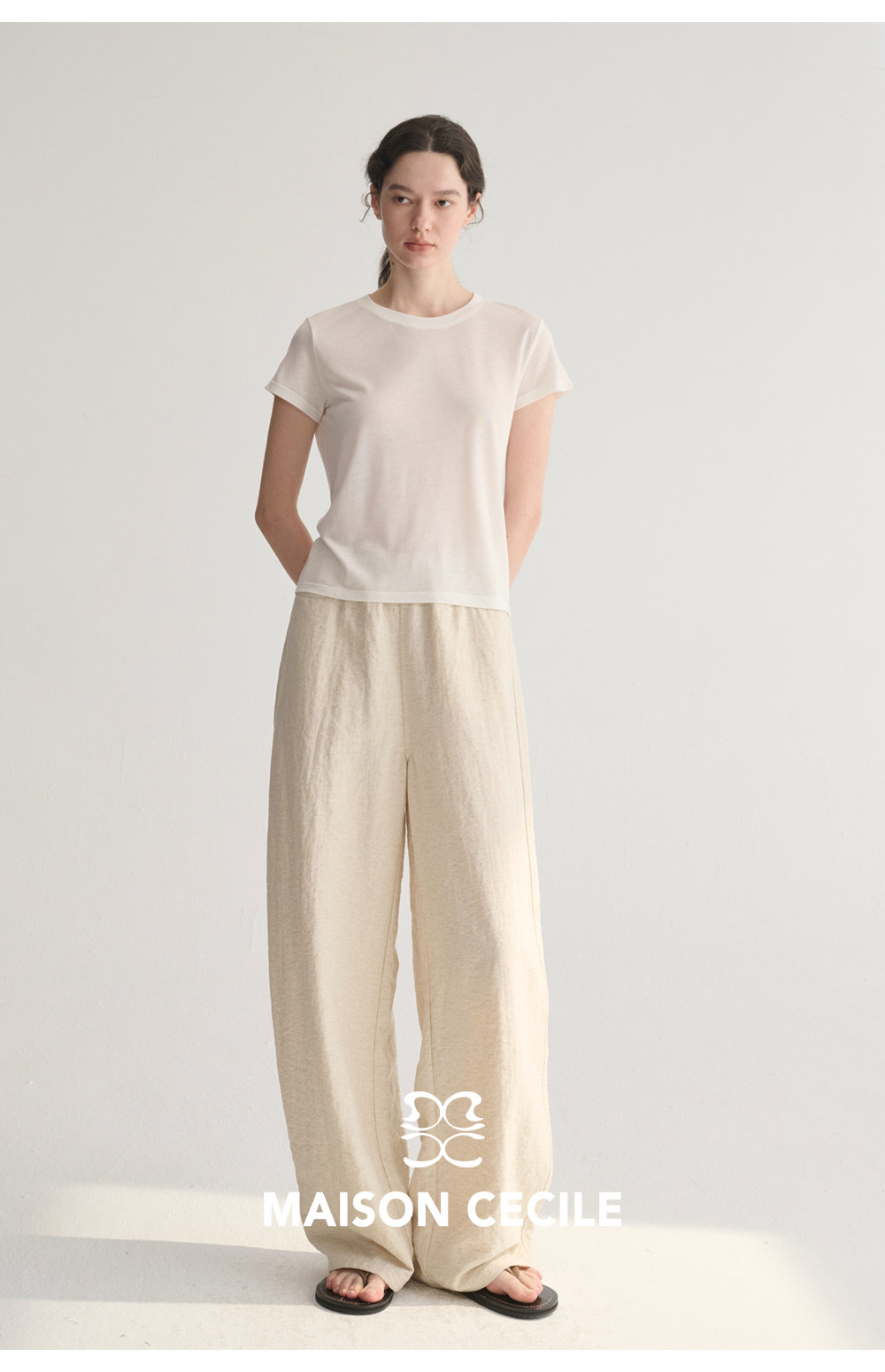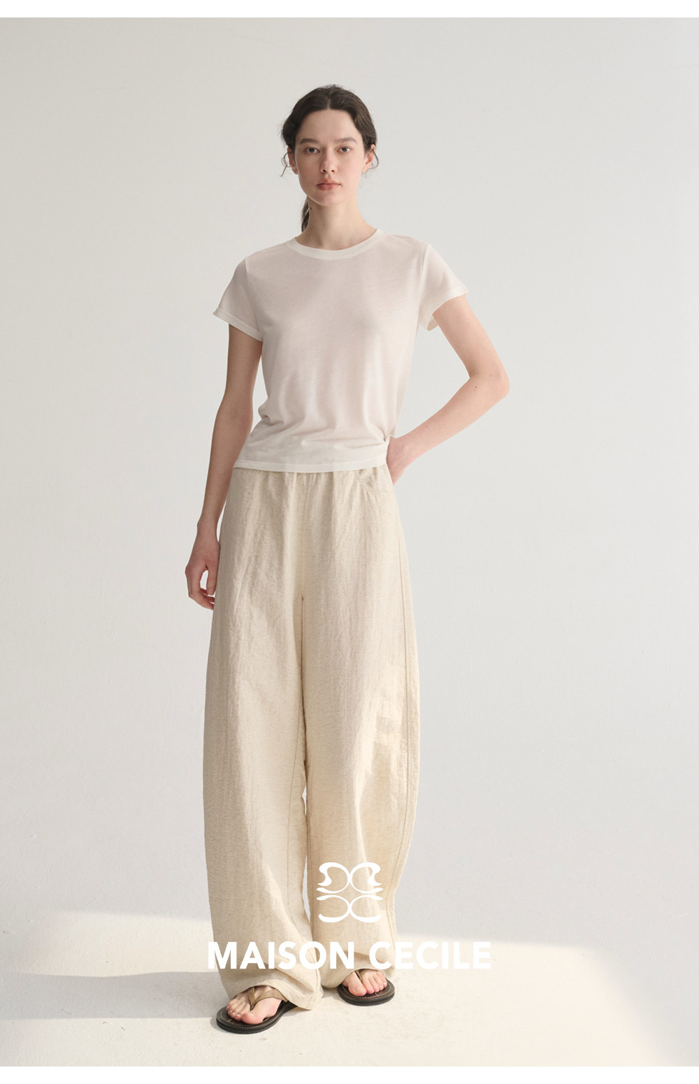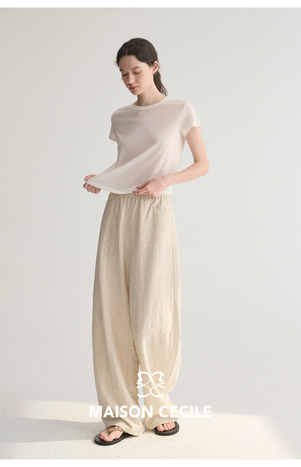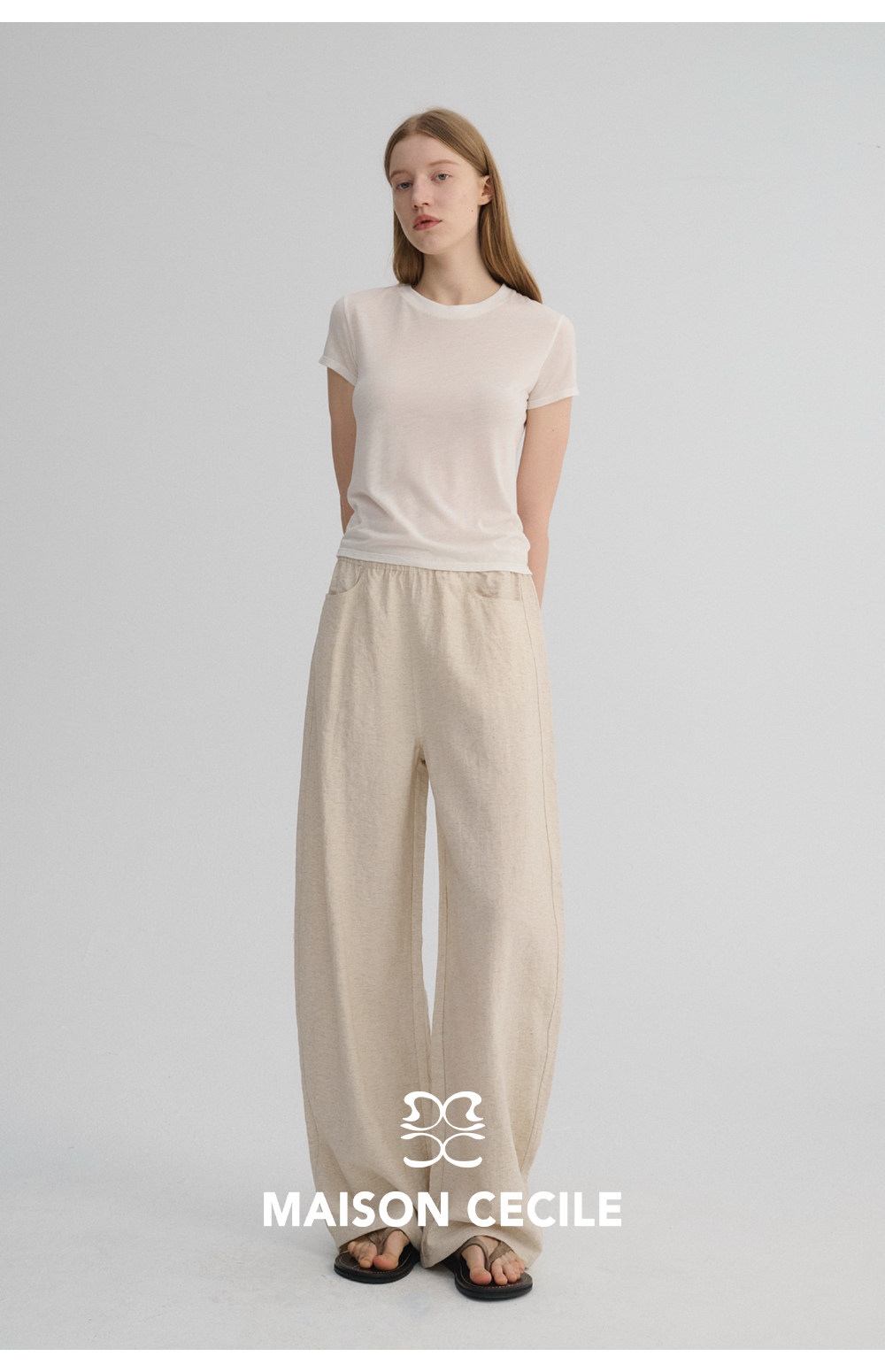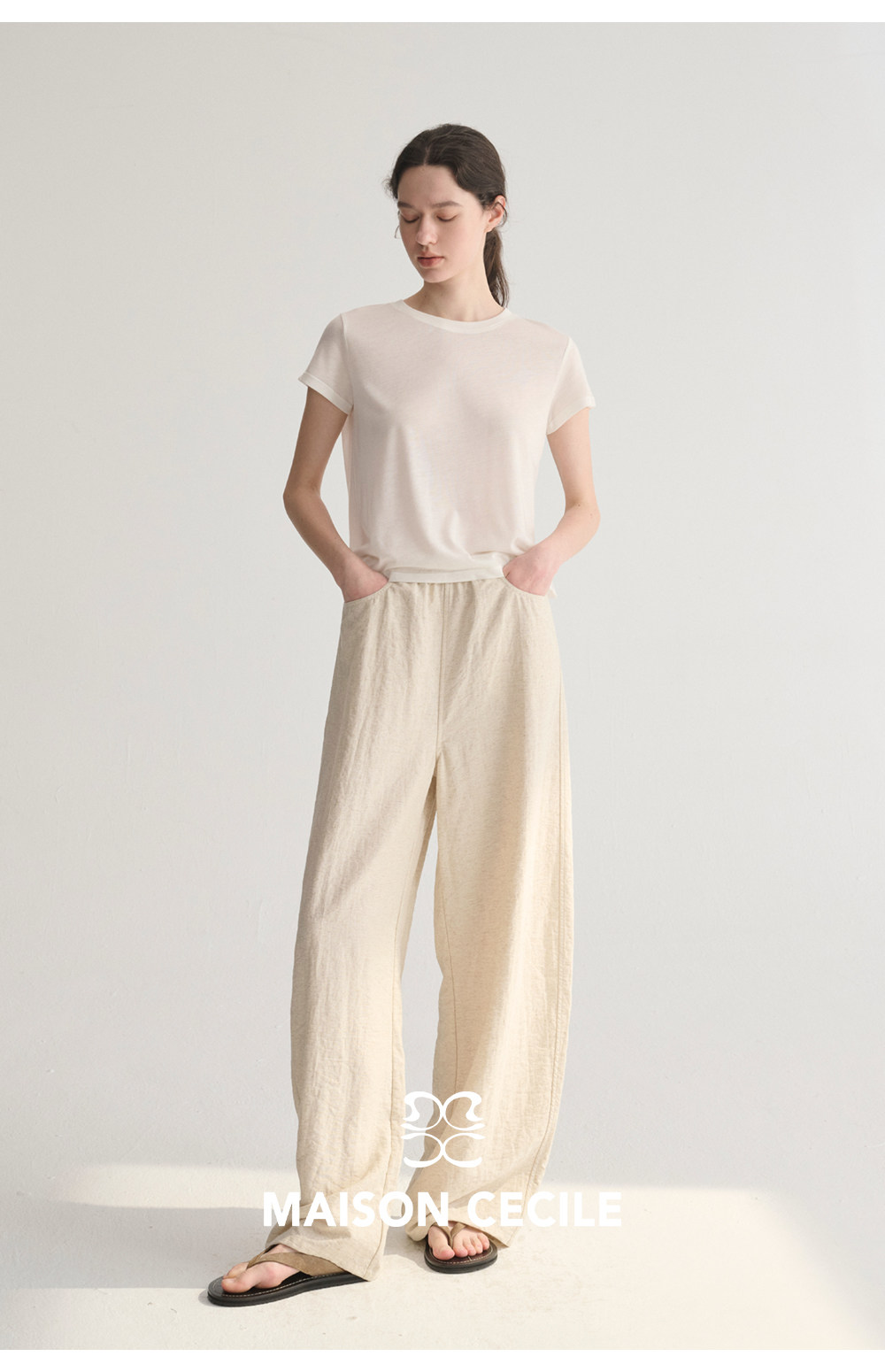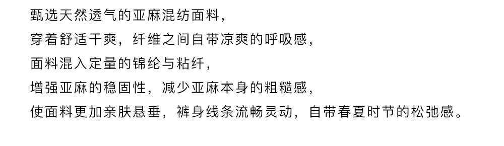 MC 五色亚麻透气肌理松弛百搭简约随性松紧腰弧形裤MAISON CECILE