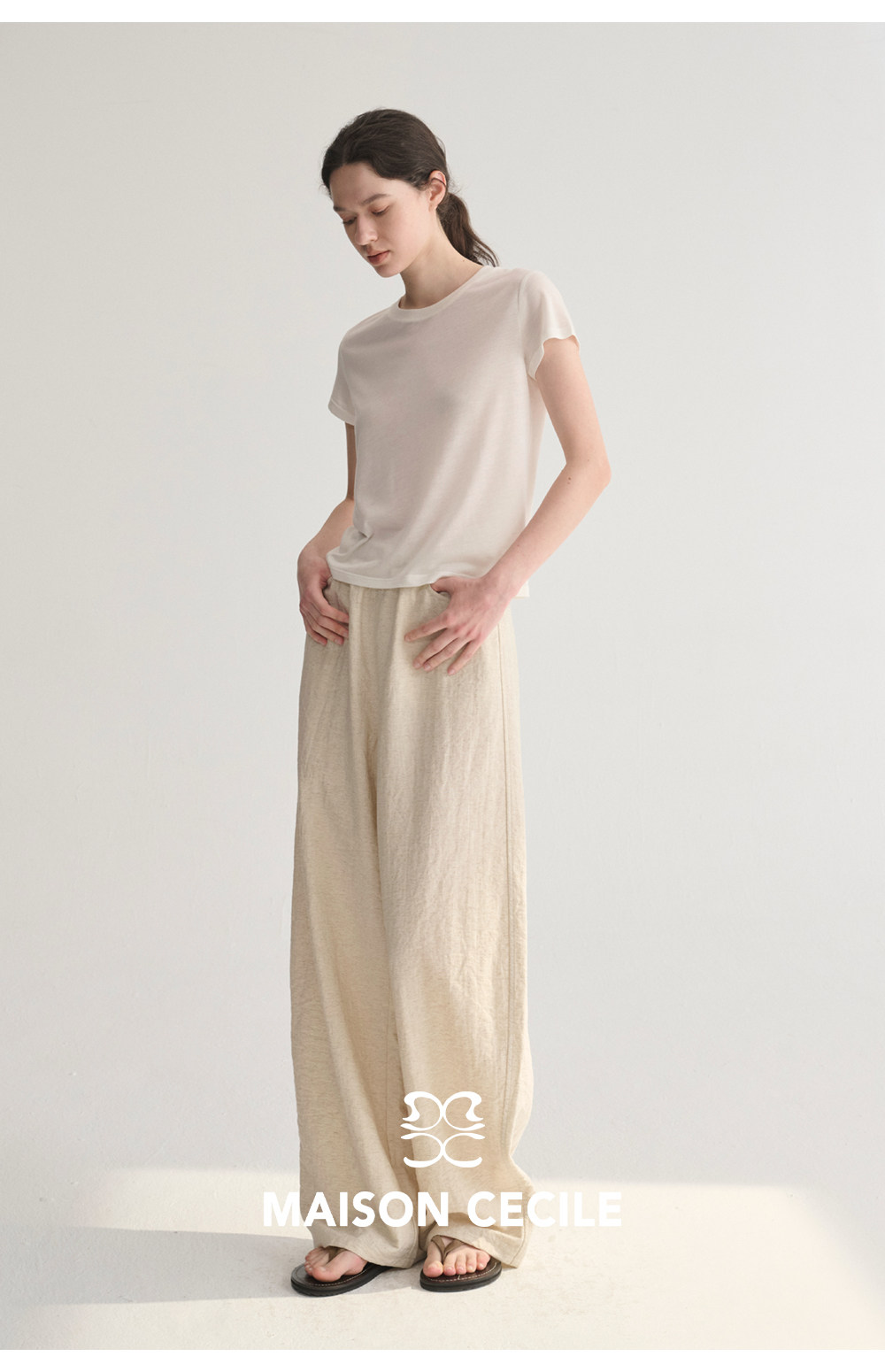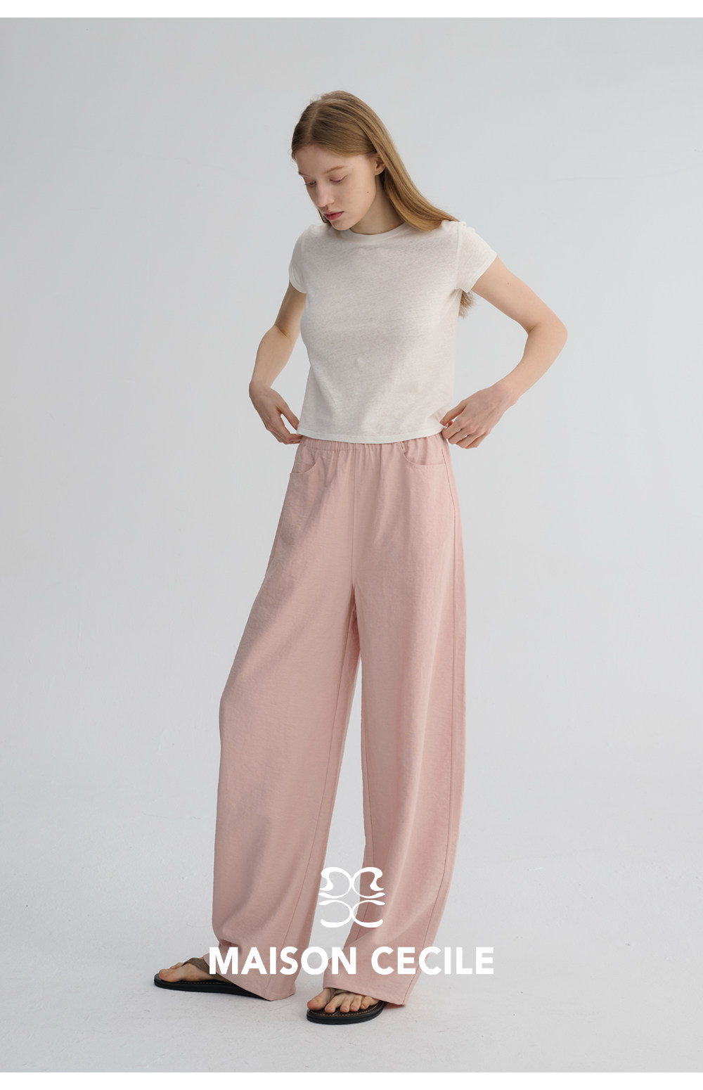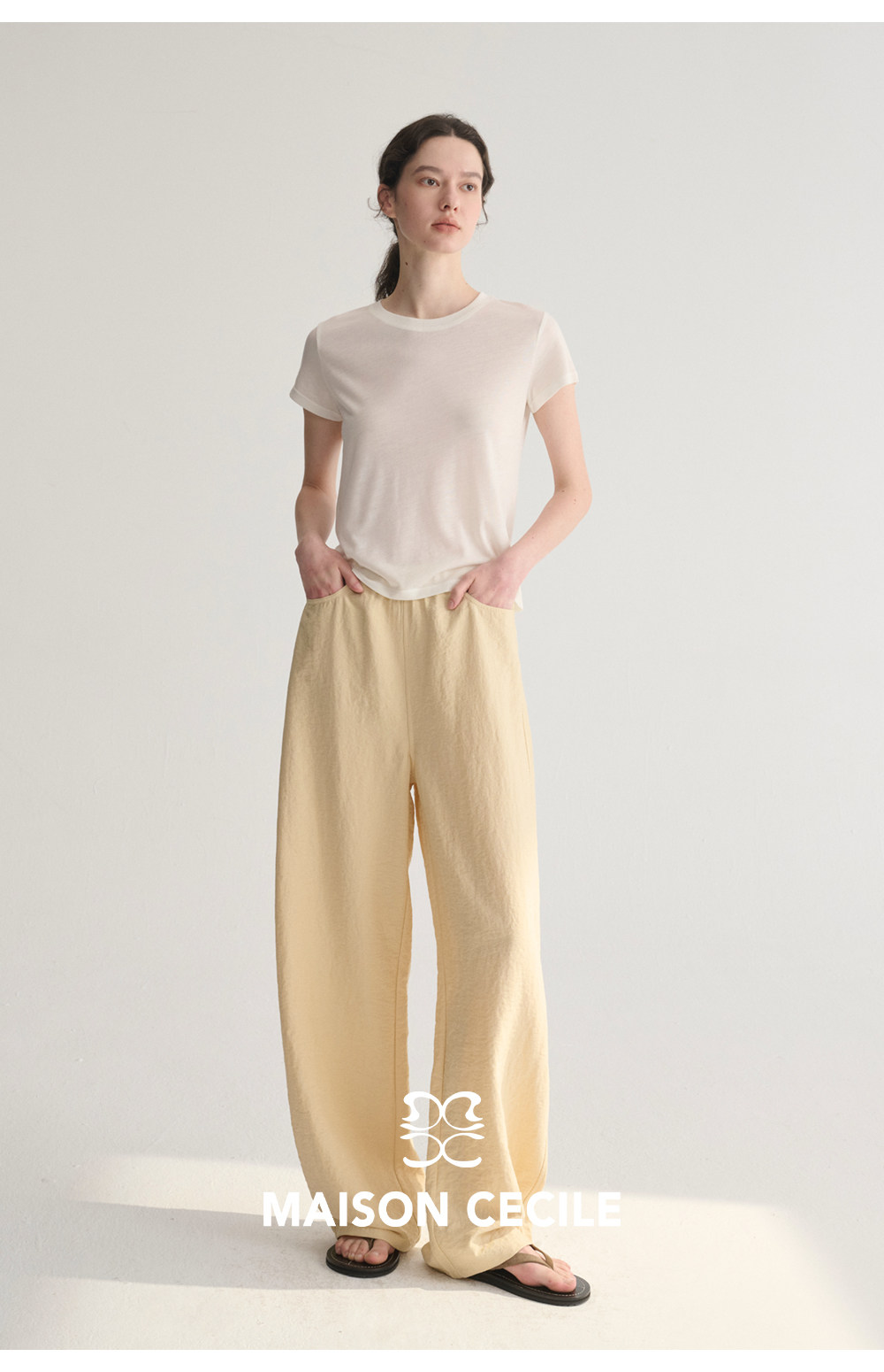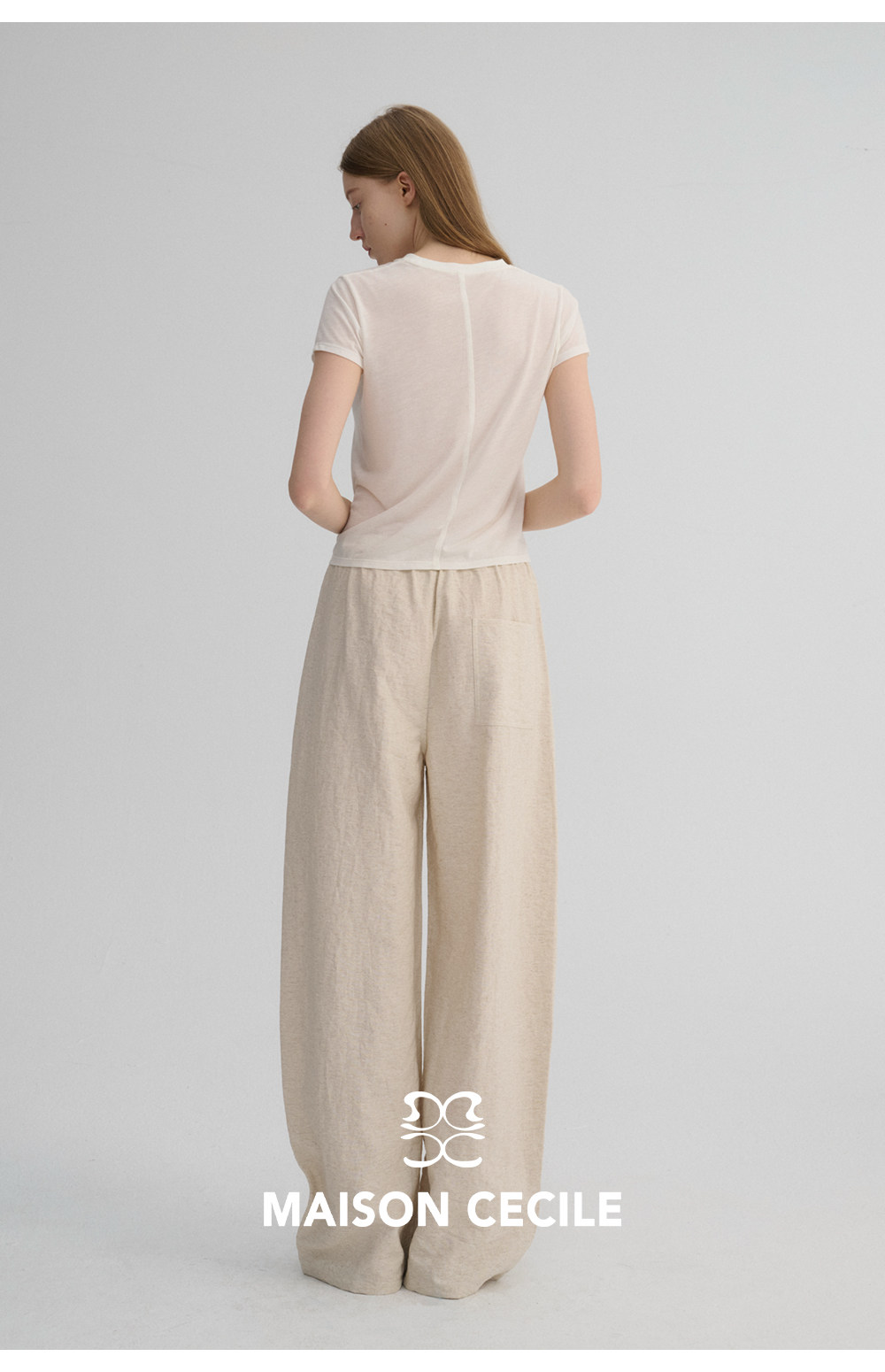 MC 五色亚麻透气肌理松弛百搭简约随性松紧腰弧形裤MAISON CECILE