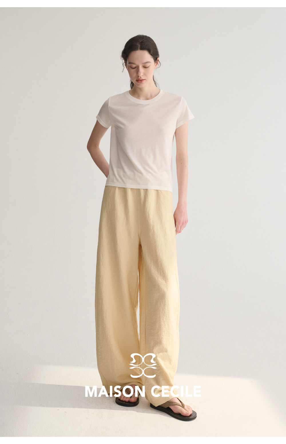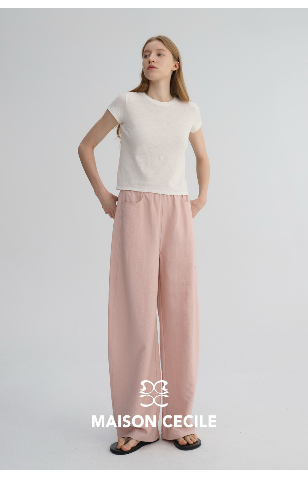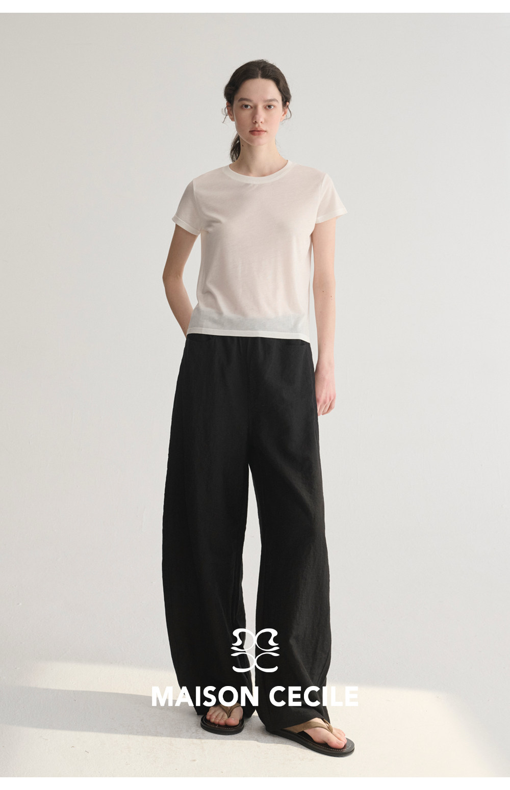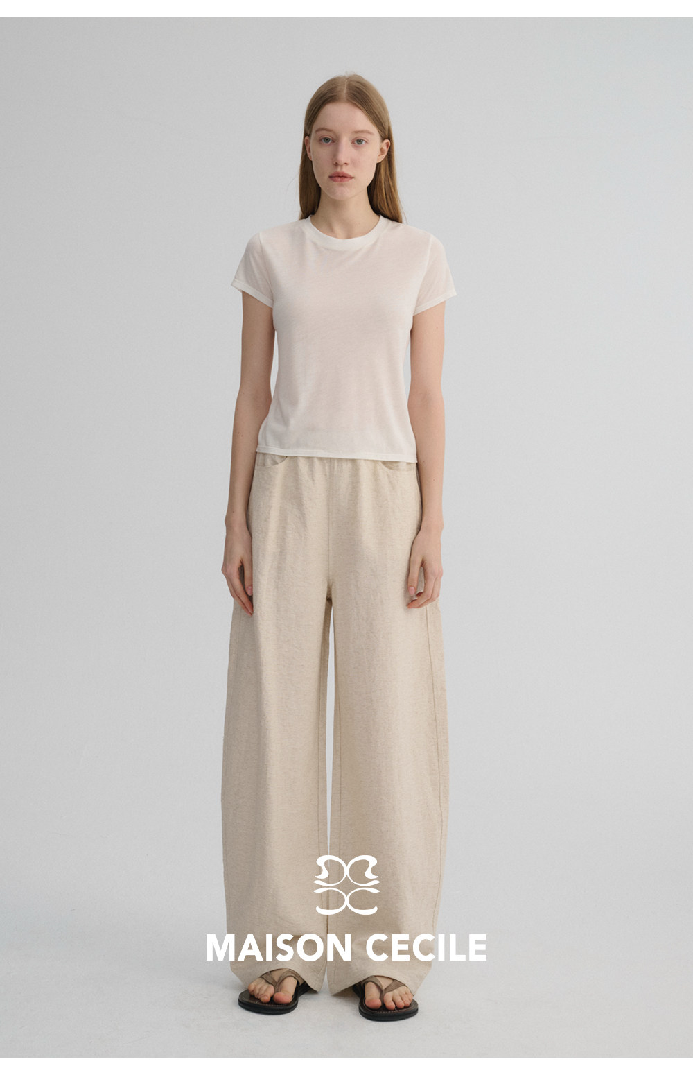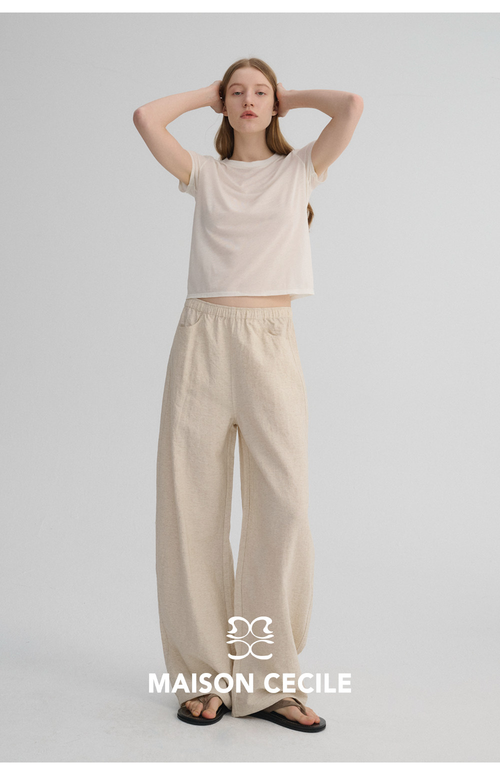 MC 五色亚麻透气肌理松弛百搭简约随性松紧腰弧形裤MAISON CECILE