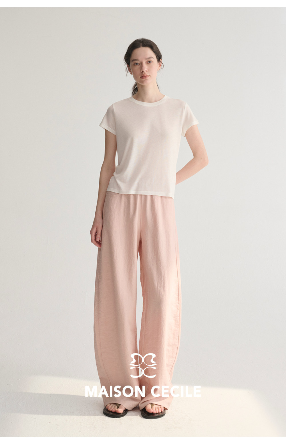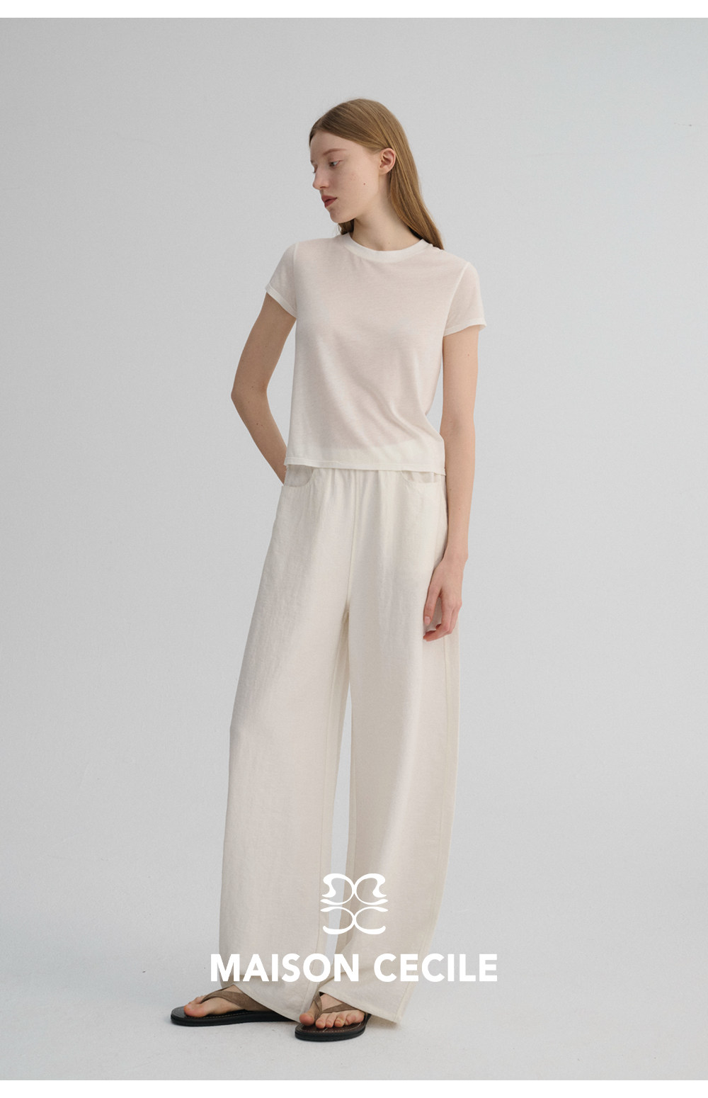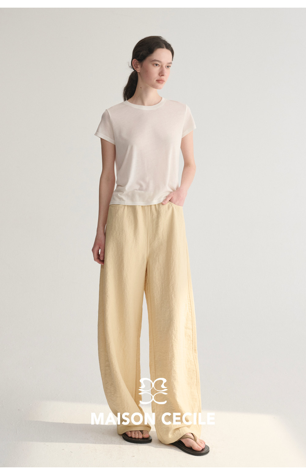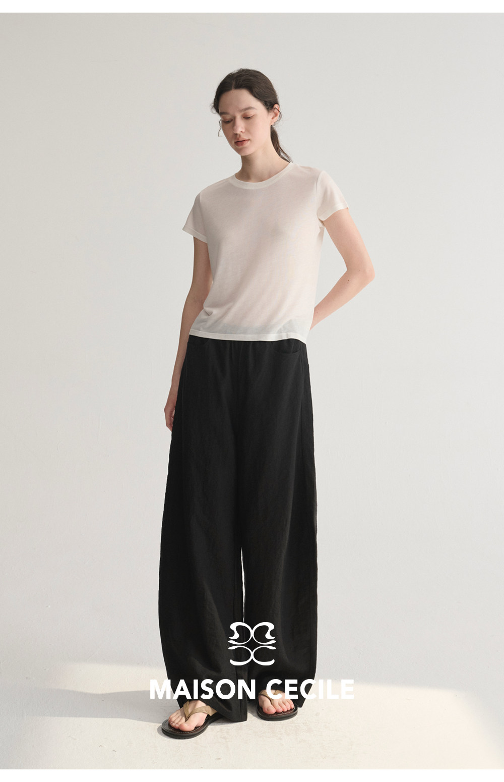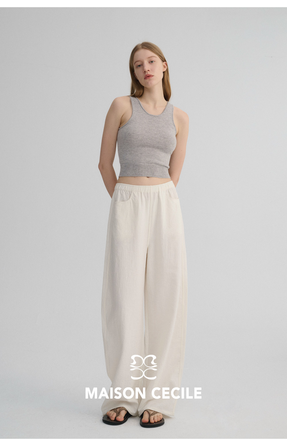 MC 五色亚麻透气肌理松弛百搭简约随性松紧腰弧形裤MAISON CECILE
