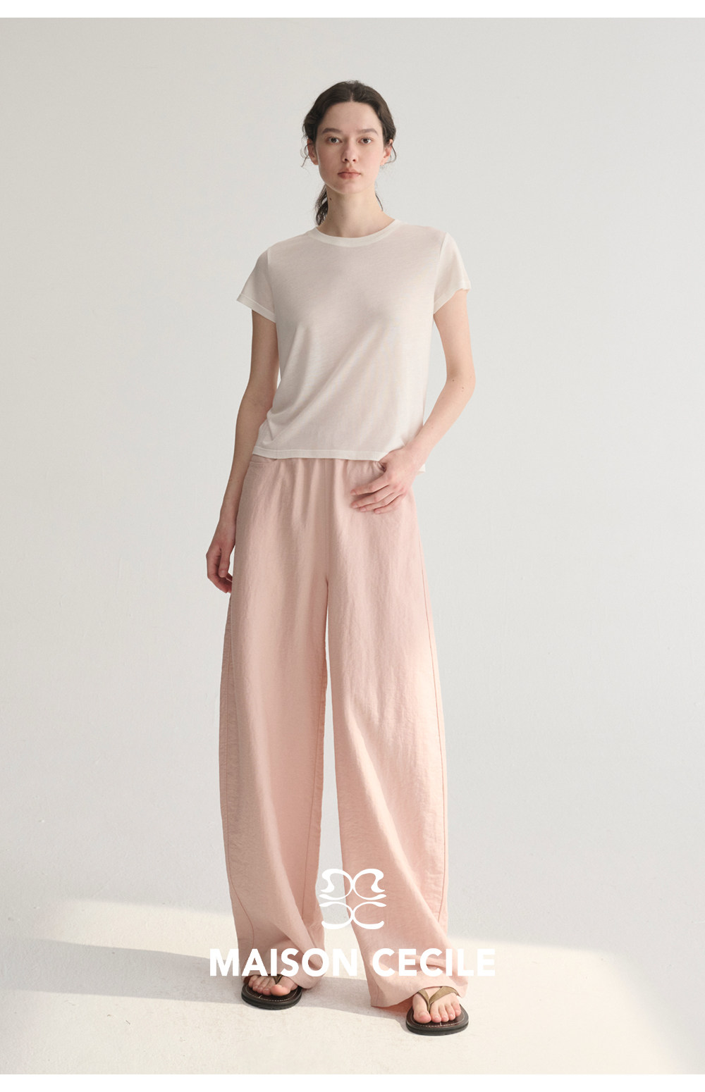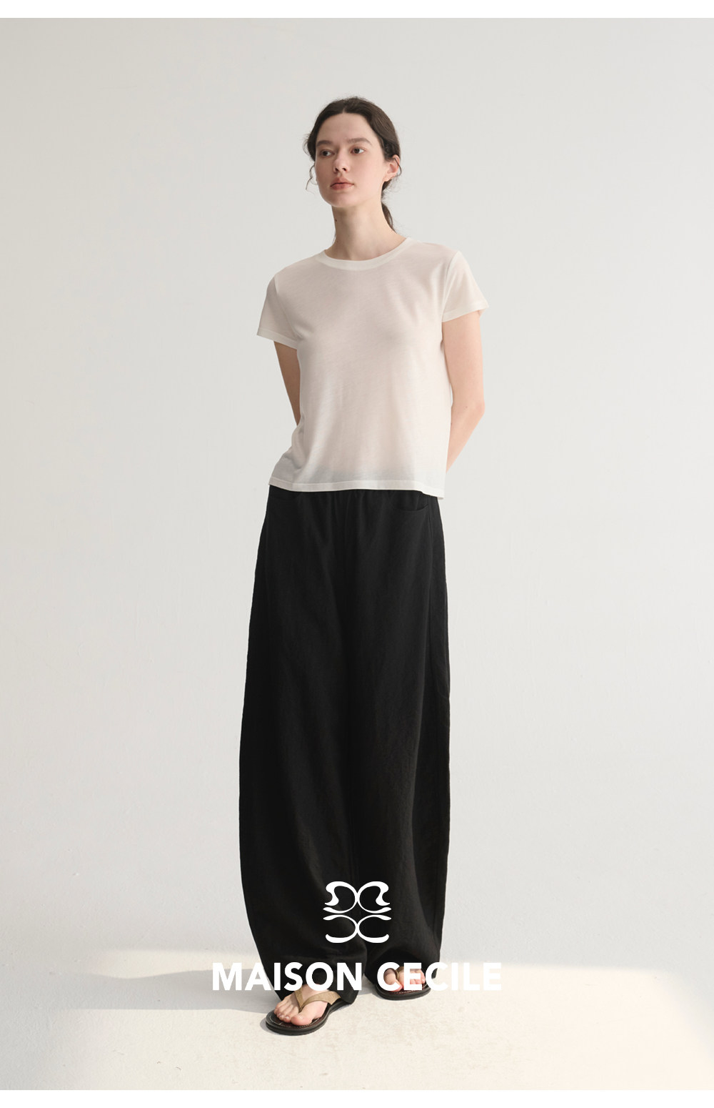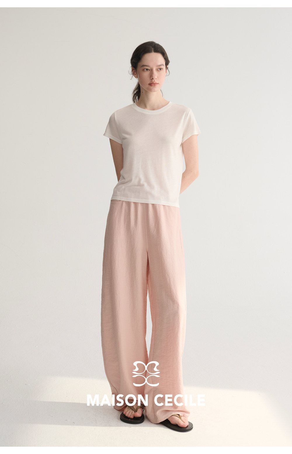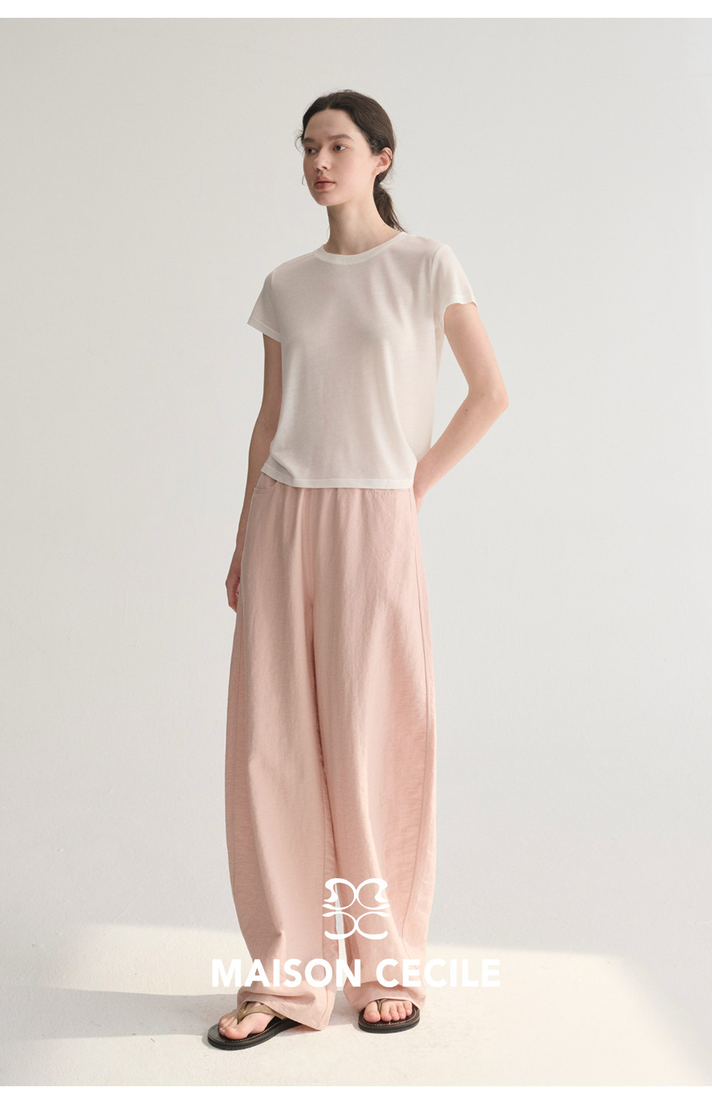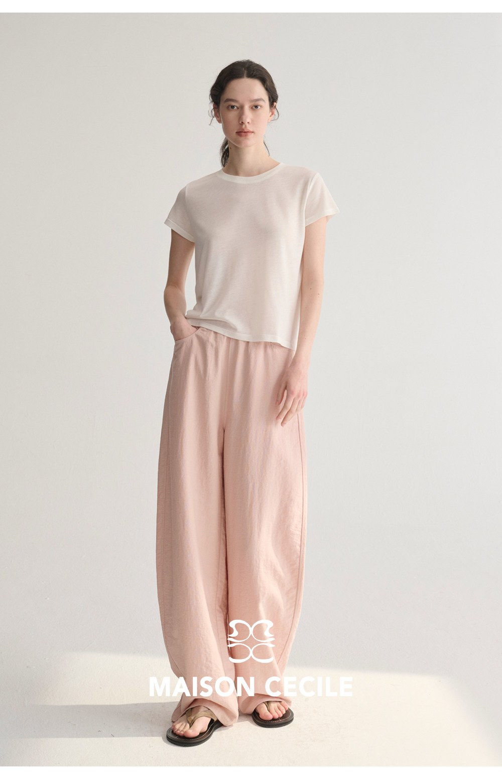 MC 五色亚麻透气肌理松弛百搭简约随性松紧腰弧形裤MAISON CECILE