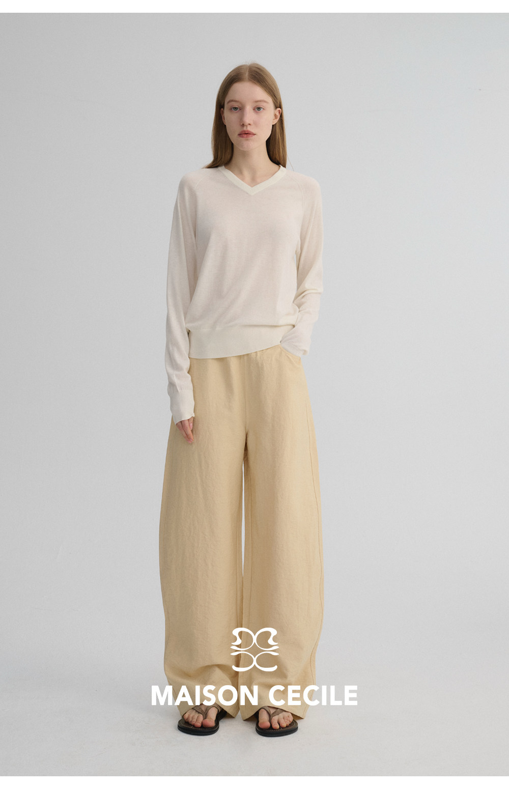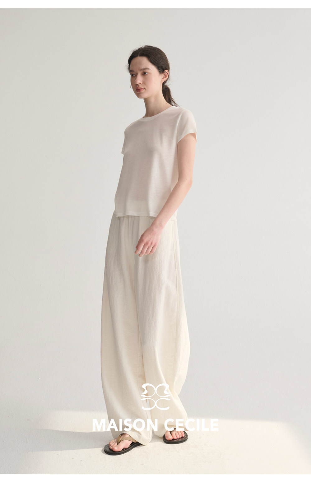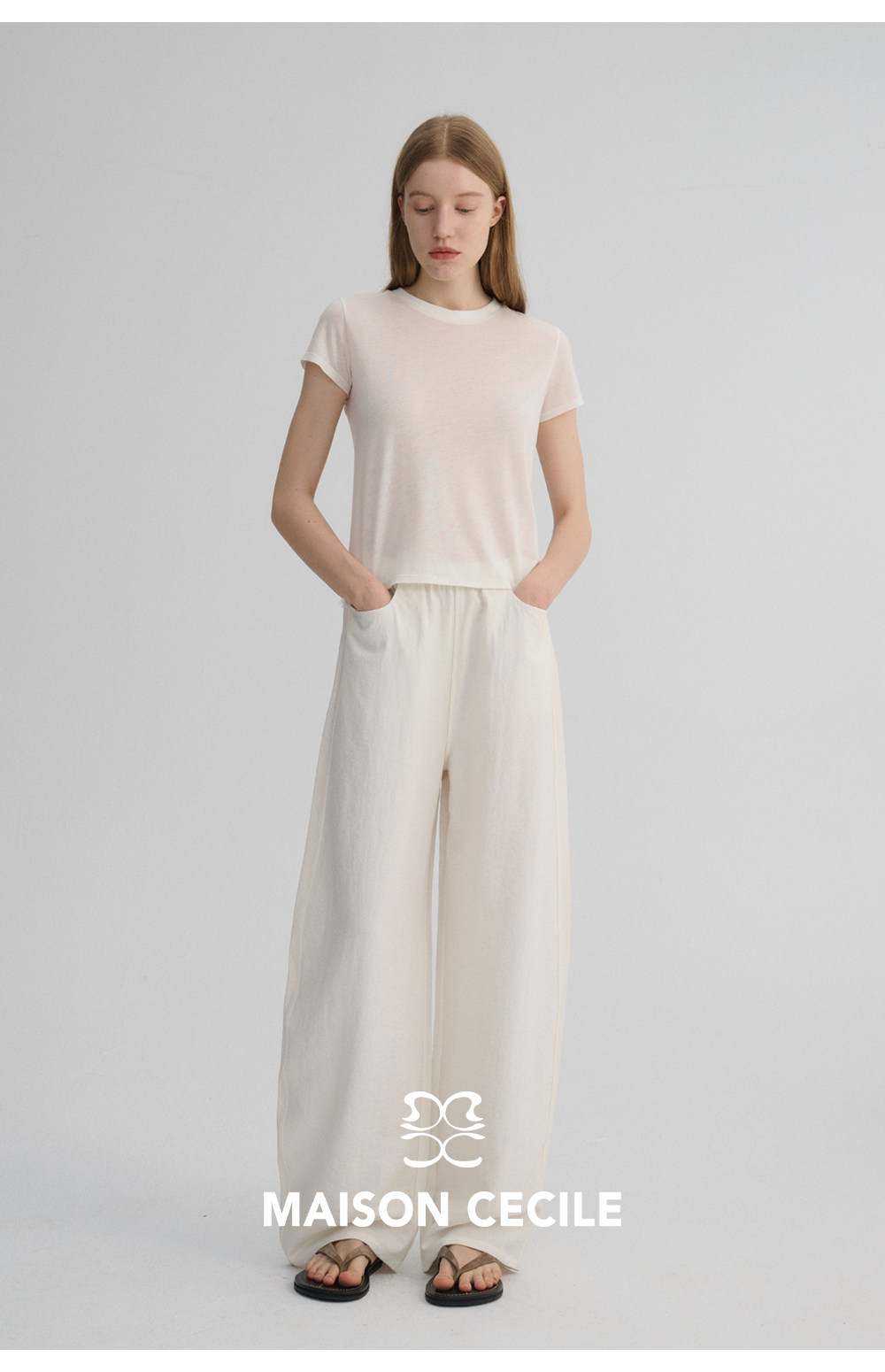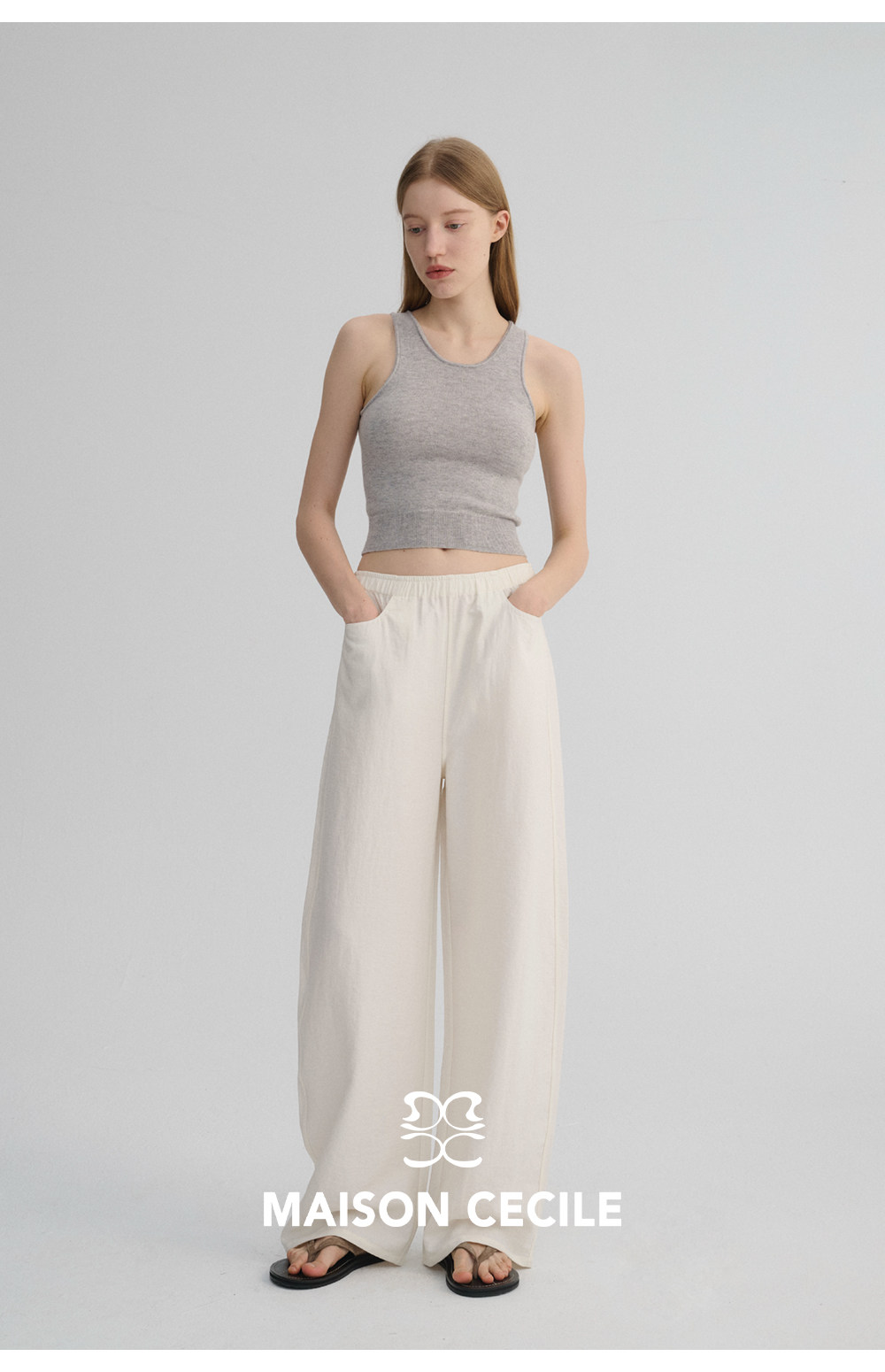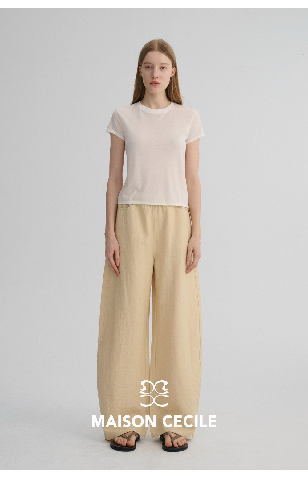 MC 五色亚麻透气肌理松弛百搭简约随性松紧腰弧形裤MAISON CECILE