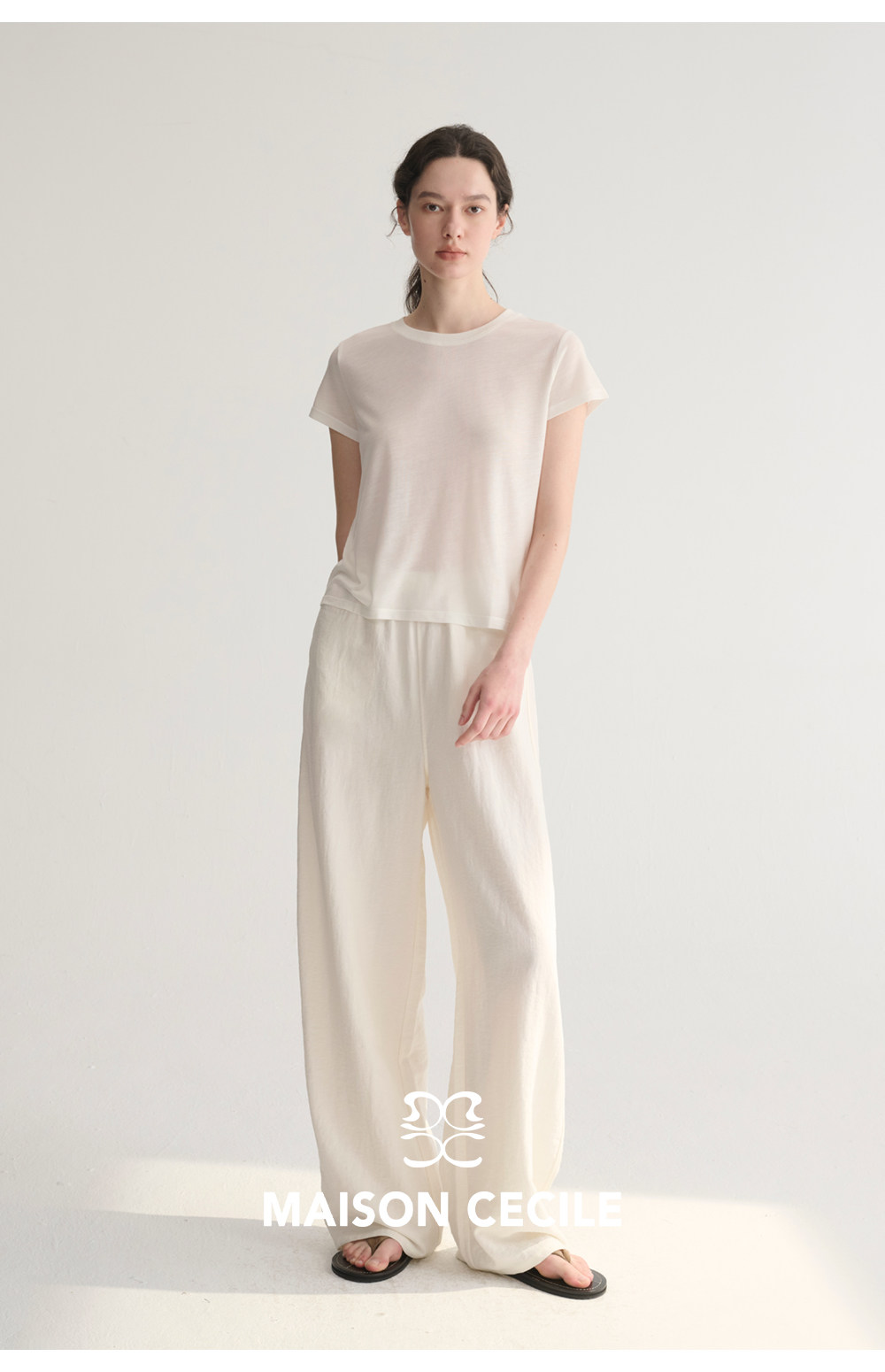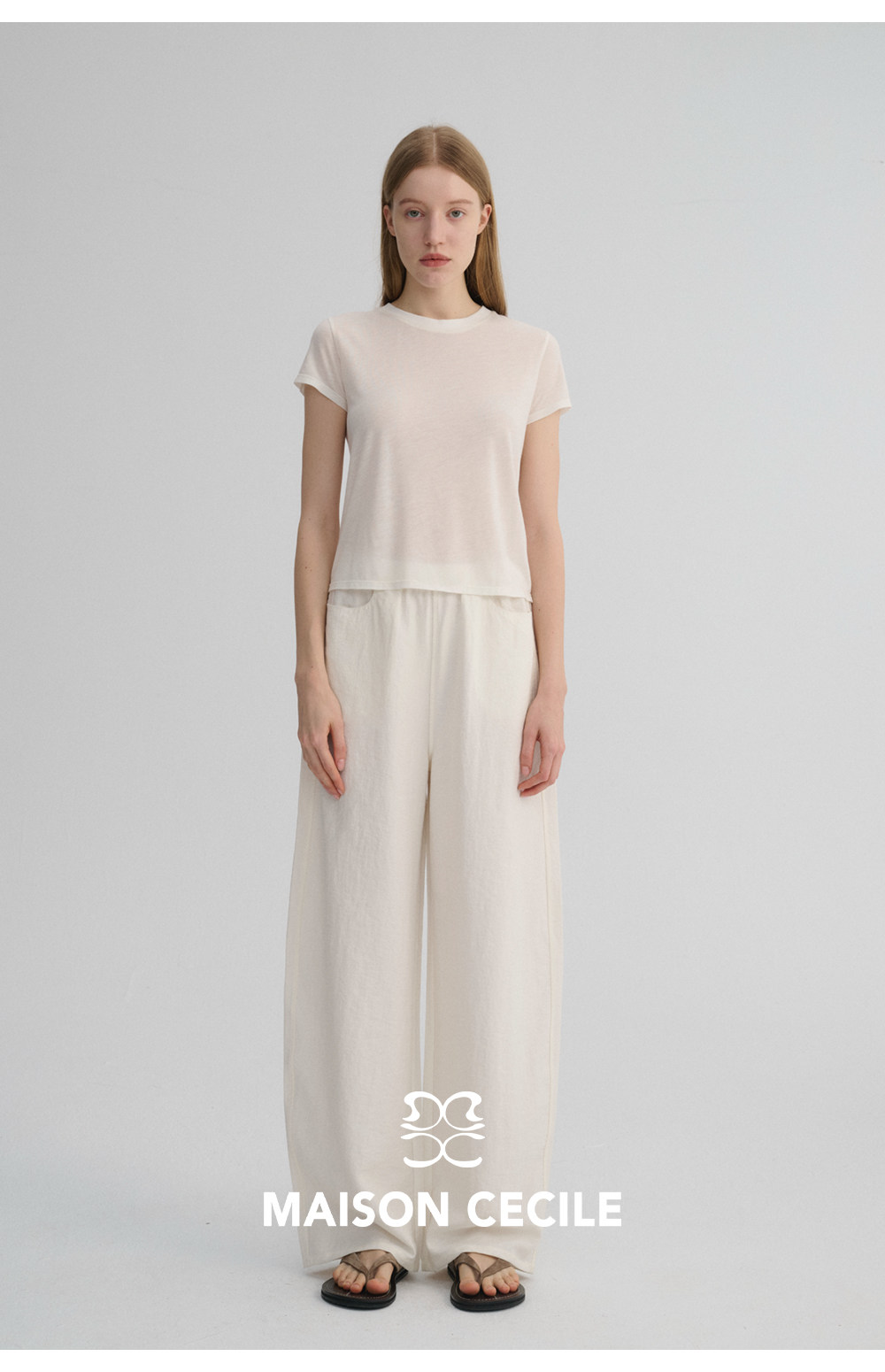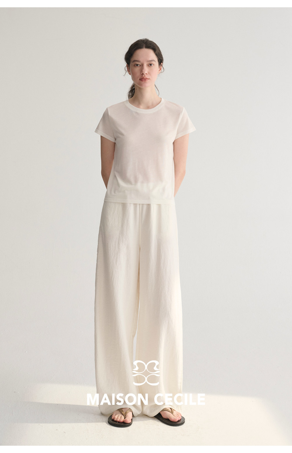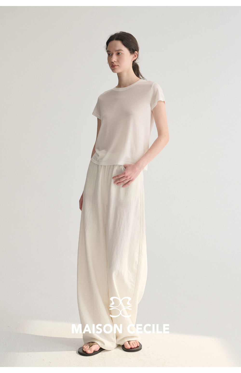 MC 五色亚麻透气肌理松弛百搭简约随性松紧腰弧形裤MAISON CECILE