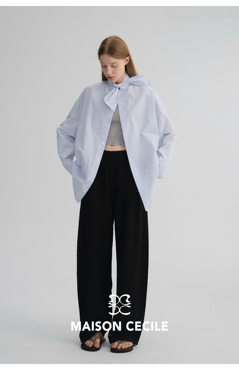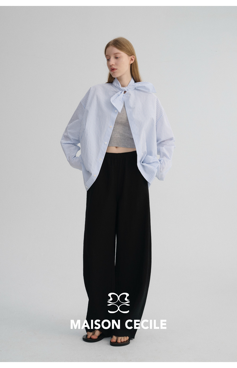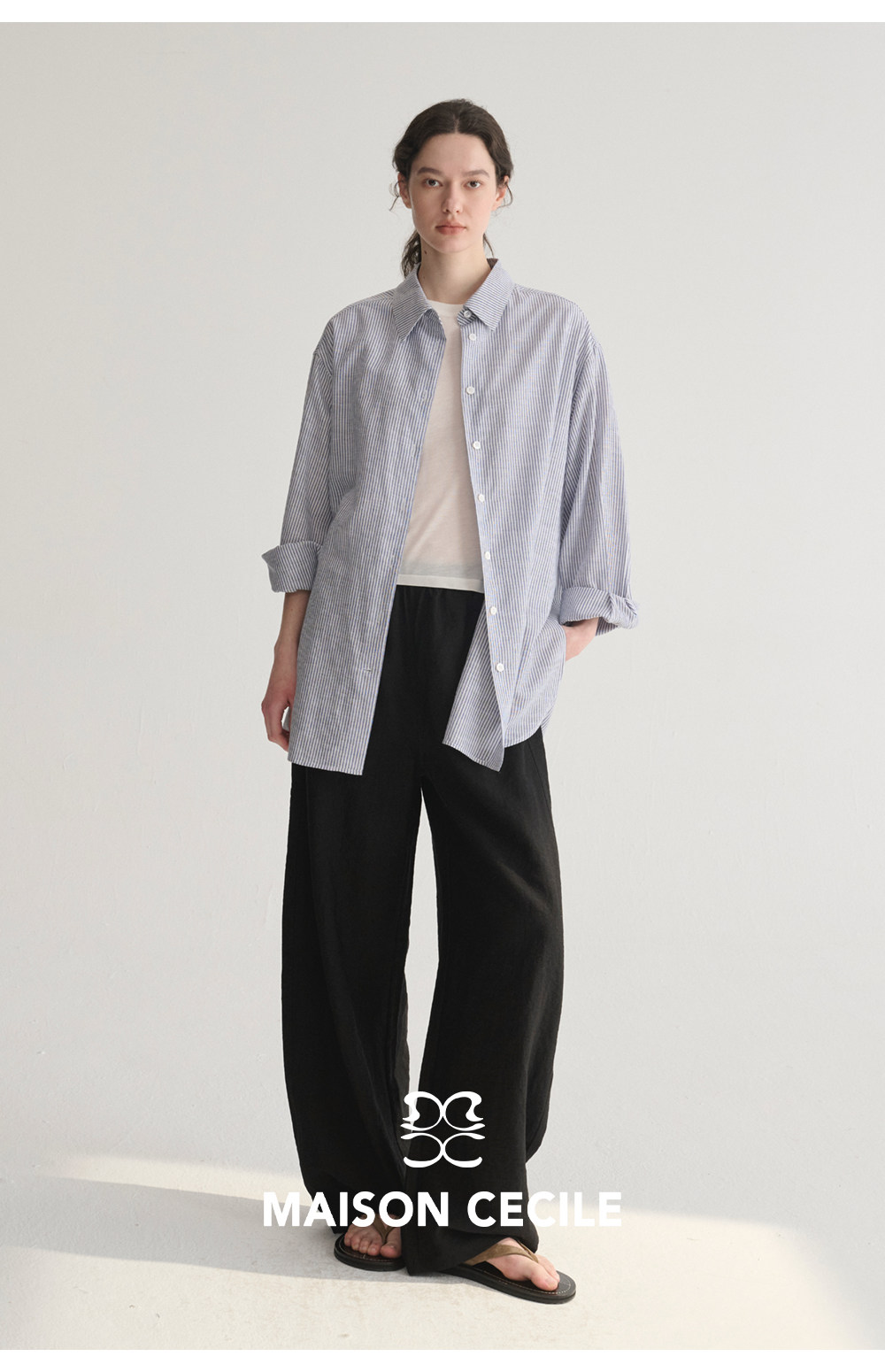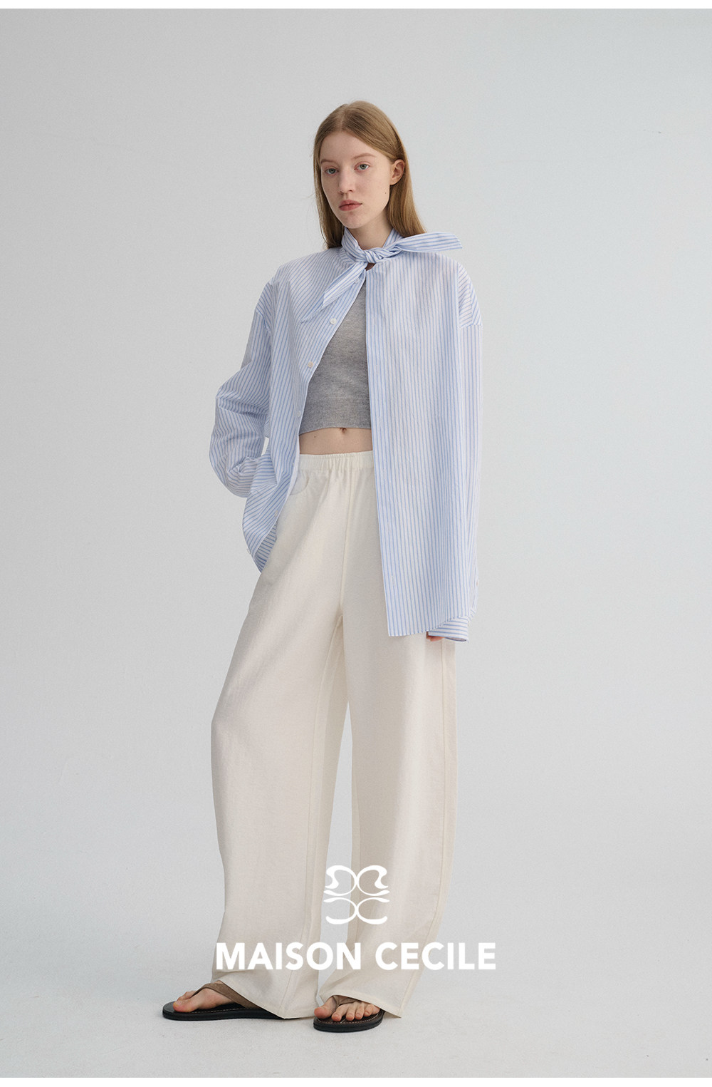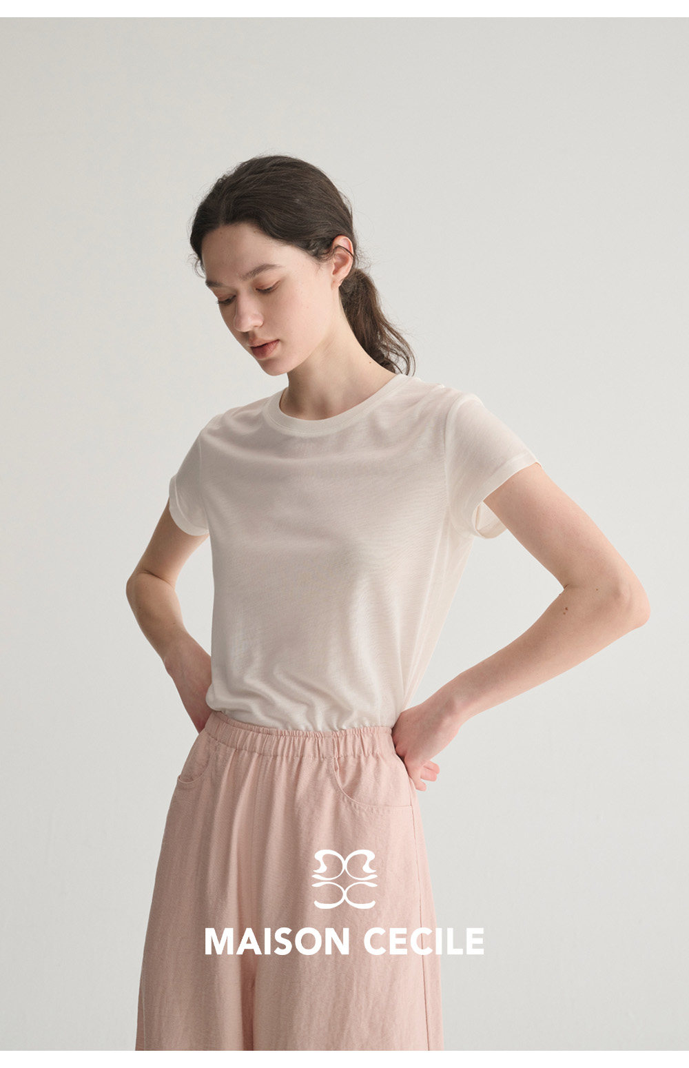 MC 五色亚麻透气肌理松弛百搭简约随性松紧腰弧形裤MAISON CECILE