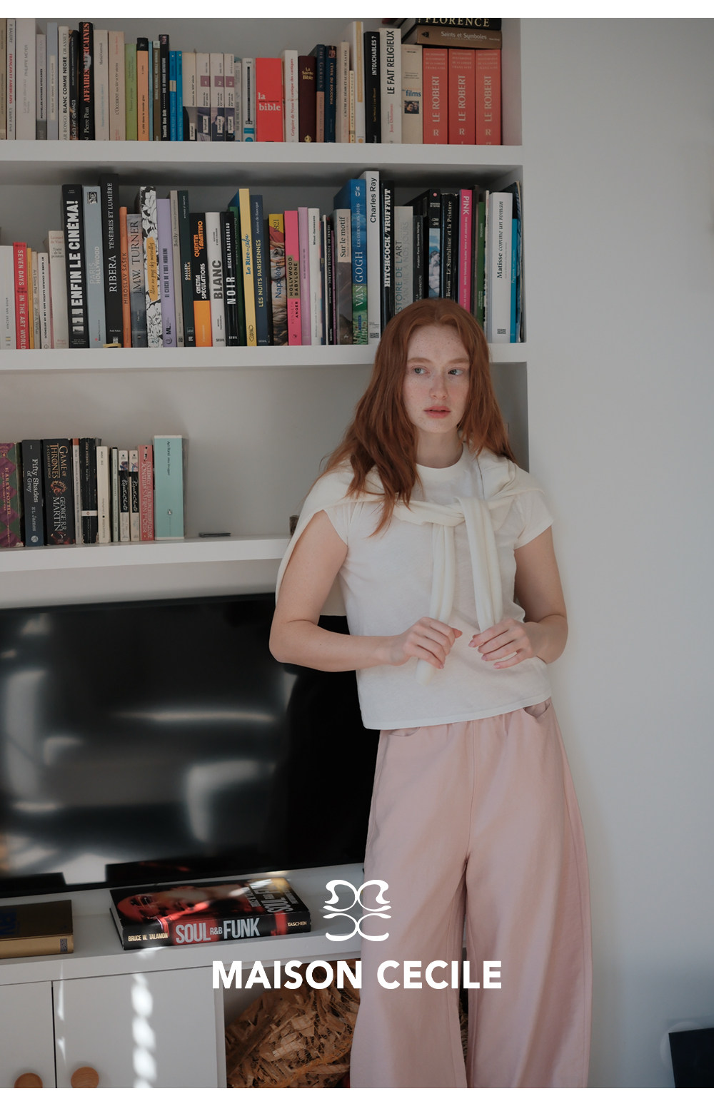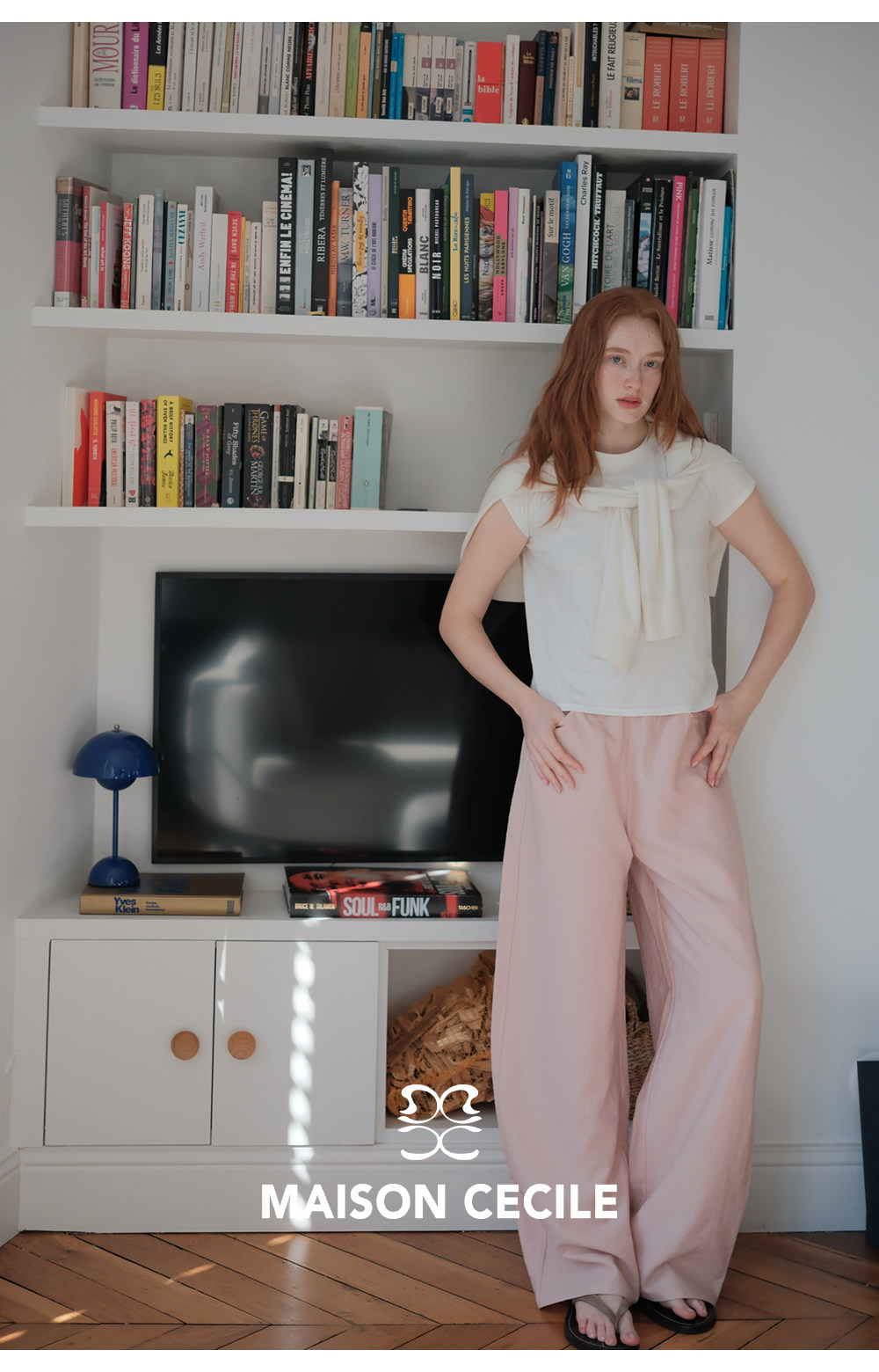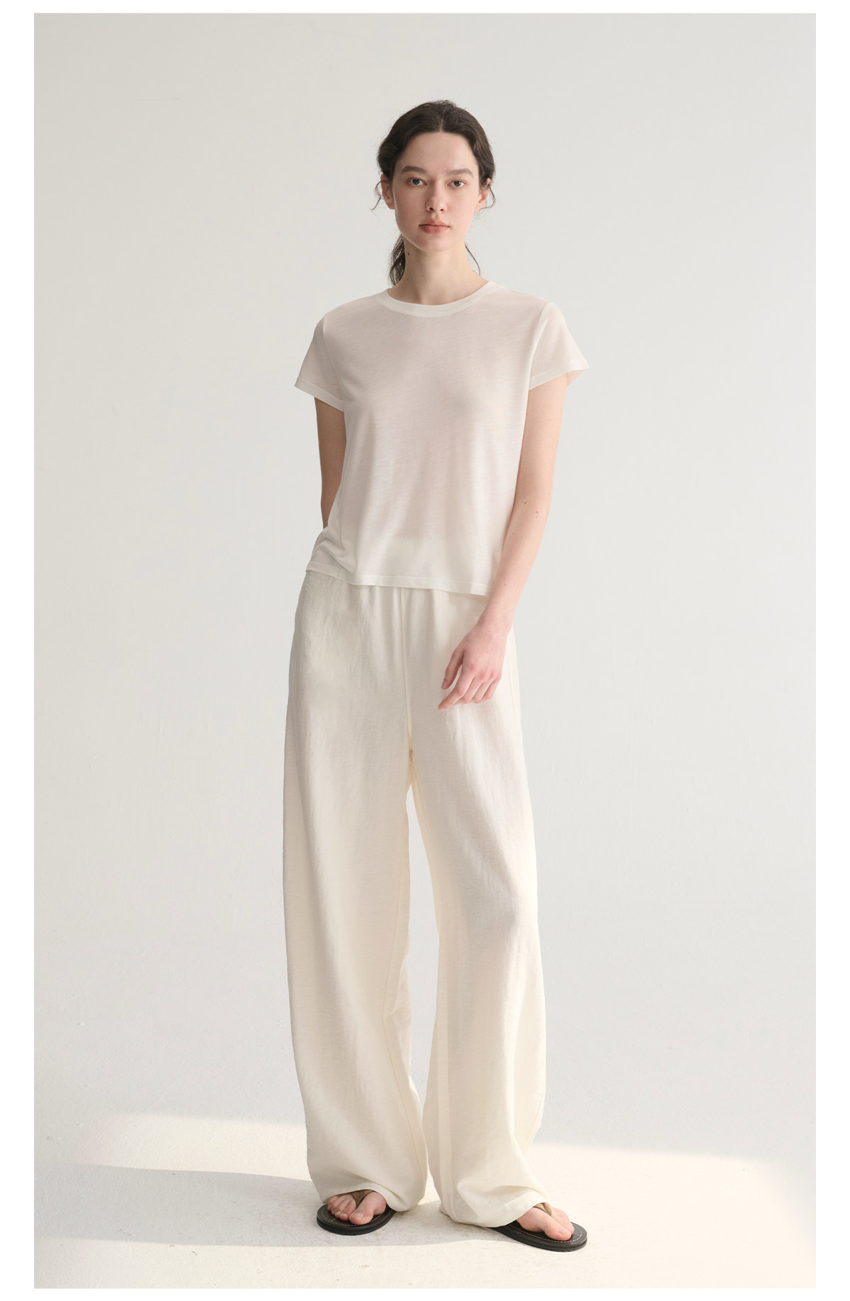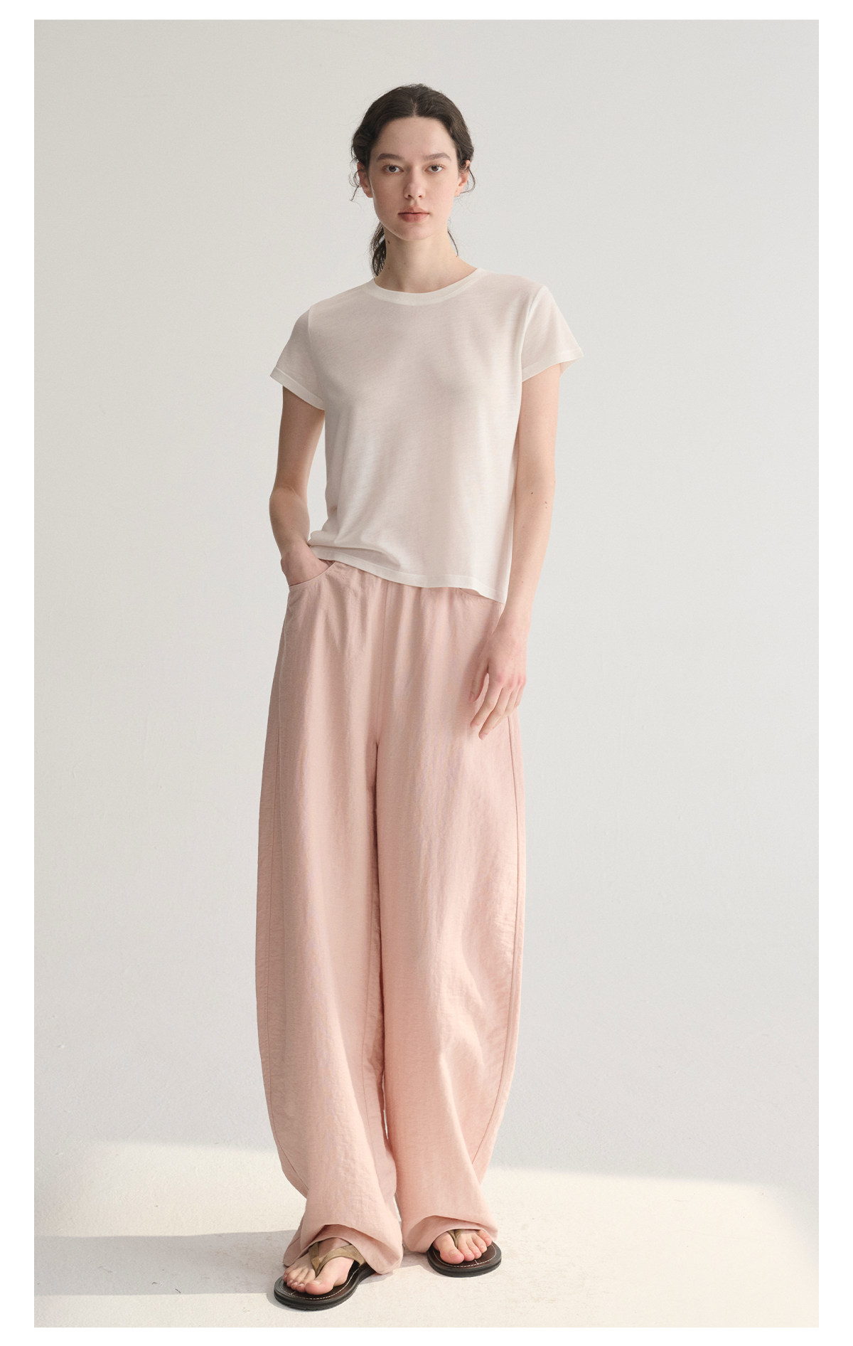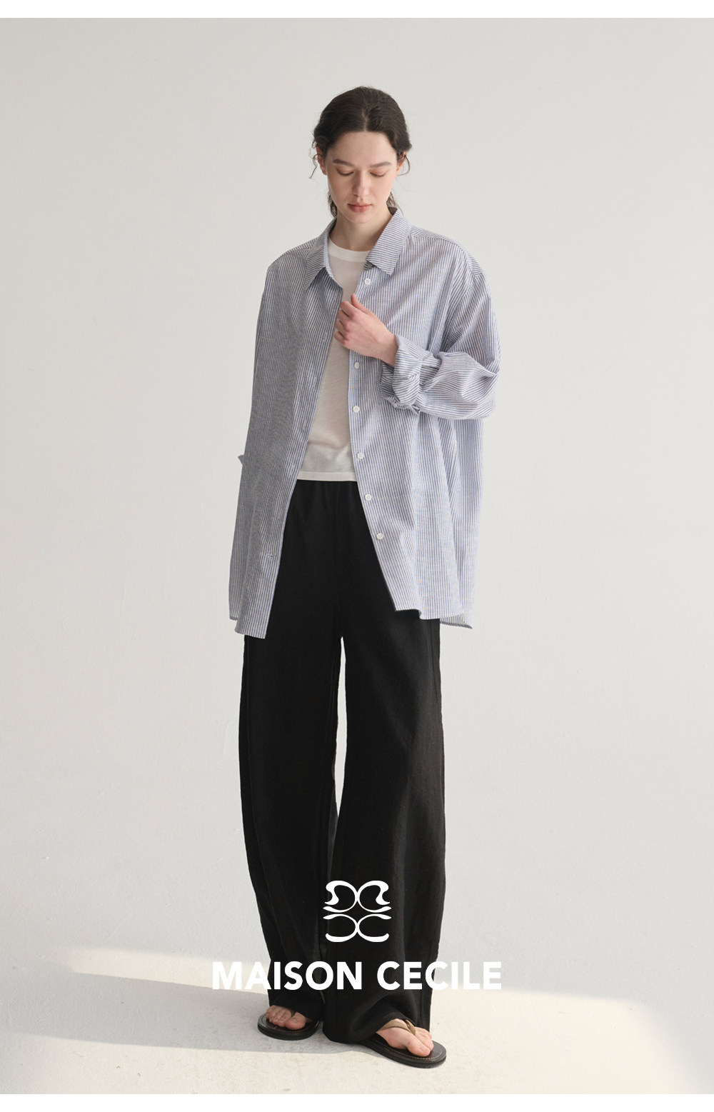 MC 五色亚麻透气肌理松弛百搭简约随性松紧腰弧形裤MAISON CECILE
