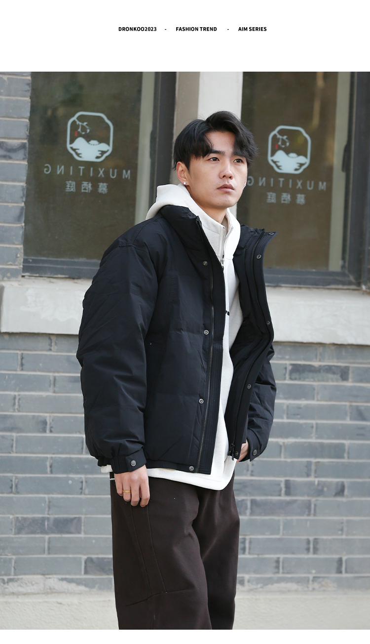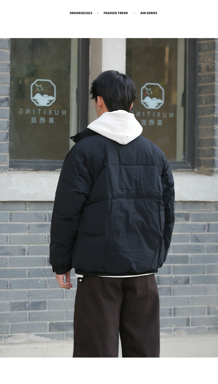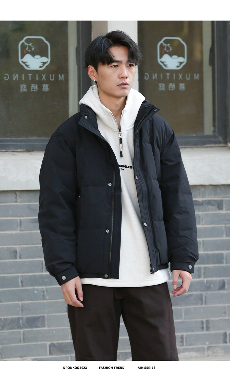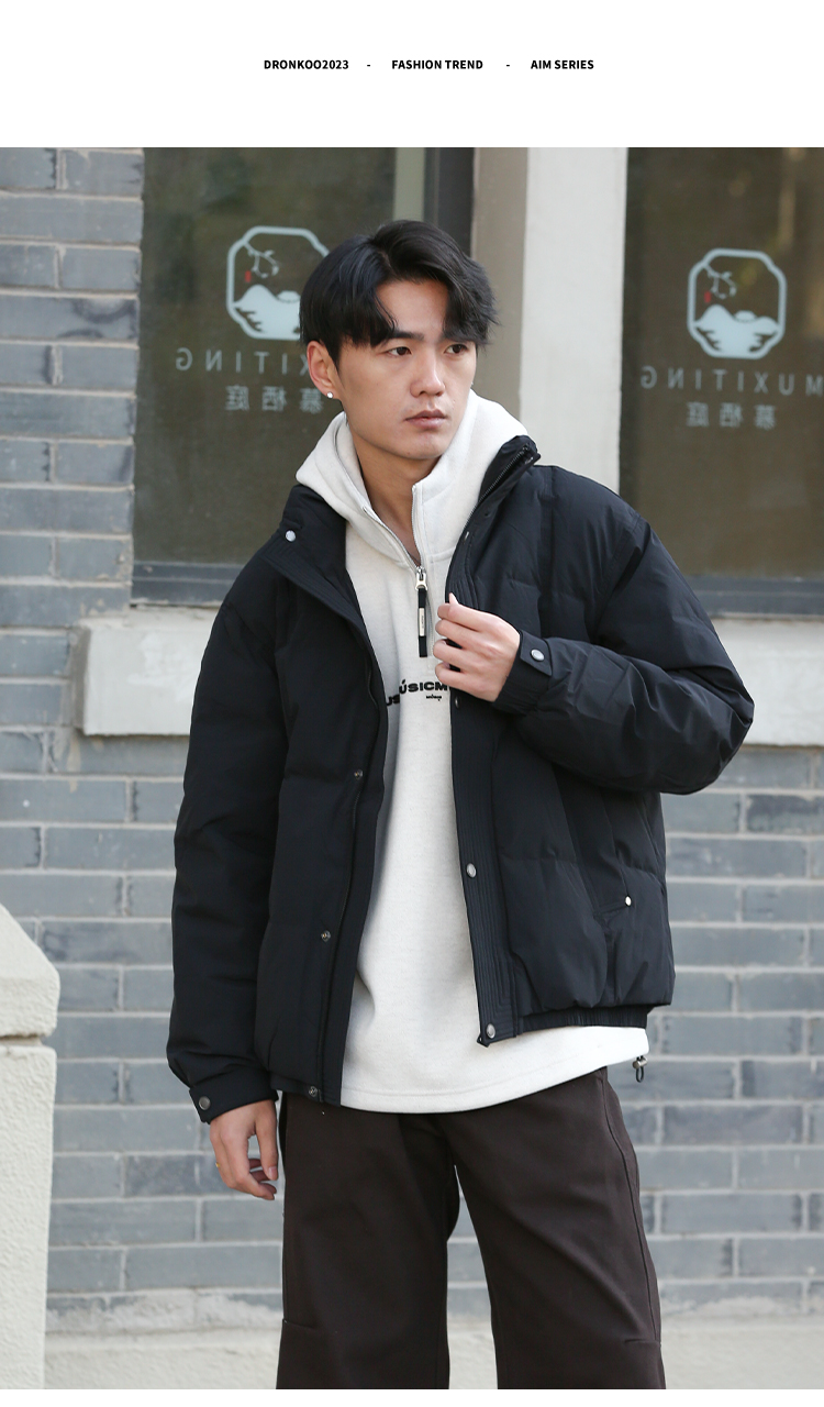 DRONKOO 2025 立领前襟绗线钉扣下摆双层基础短款中厚羽绒服