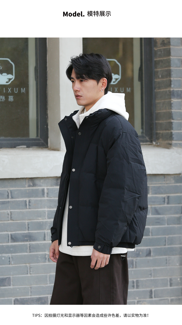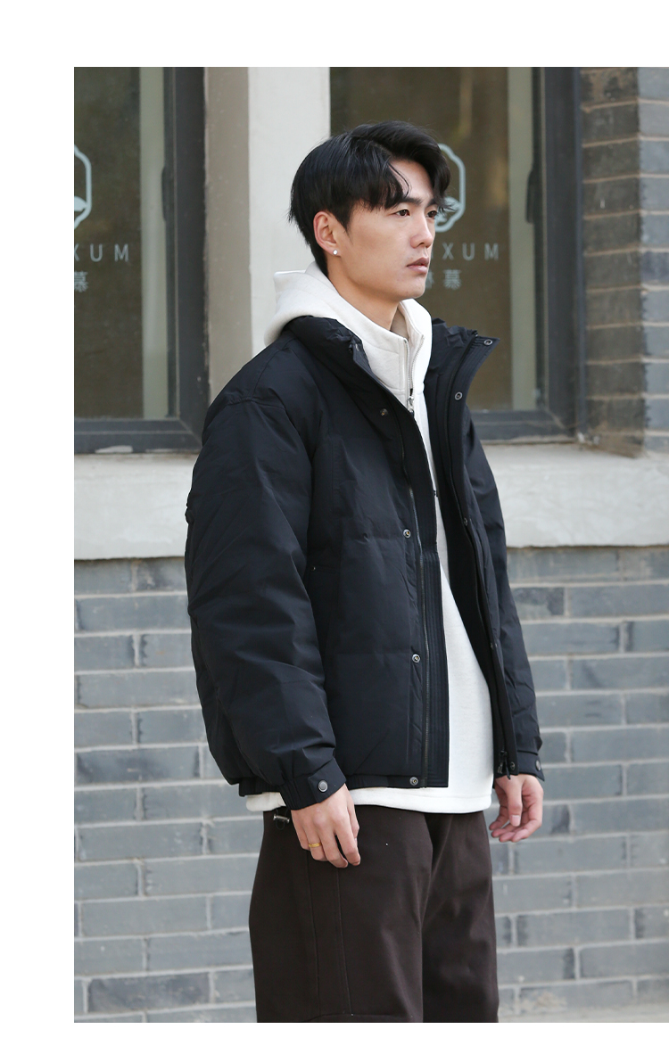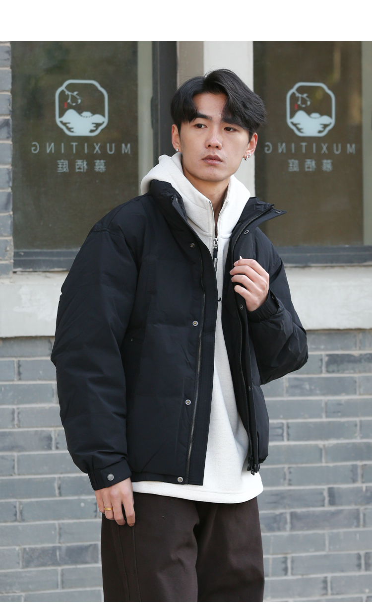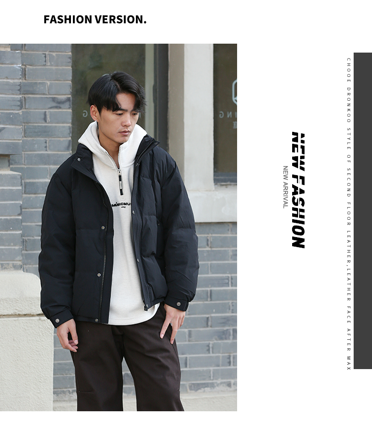 DRONKOO 2025 立领前襟绗线钉扣下摆双层基础短款中厚羽绒服